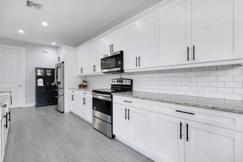 Perfectly placed on 2.5 UPLAND acres, this 4-bedroom, 3-bathroom custom-built residence offers the ultimate blend of privacy, modern luxury, and functionality. With 2,403 square feet of thoughtfully designed living space, this is far from your average builder-grade home - it's a true personal oasis. As you drive beneath the canopy of trees lining the extended driveway, the property unfolds like a scene from a storybook - peaceful, private, and perfectly positioned well off the road. Inside, you're welcomed by an open-concept floorplan with soaring ceilings, upgraded tile flooring, and abundant natural light pouring in through oversized sliders that frame the serene backyard views. The heart of the home features a chef-inspired kitchen with white shaker cabinetry, granite countertops, subway tile backsplash, stainless steel appliances, and an oversized island - ideal for hosting and everyday living. The spacious great room offers ample space for gatherings, while the split-bedroom layout ensures privacy for all. The owner's suite is a luxurious retreat with tray ceilings, walk-in closet, and a spa-inspired ensuite complete with a freestanding soaking tub, glass-enclosed dual-entry shower, and elegant finishes throughout. Step outside to your screened-in lanai and take in the peaceful wooded views. With ample room to build your dream pool, this home is absolutely pool-ready and designed for the Florida lifestyle. Additional highlights include: 3 full bathrooms, including a cabana bath with exterior access-ready for a future pool, Dedicated laundry room with custom wood shelving and storage, Oversized 2-car garage, Extended driveway with additional parking pad. No HOA, so bring your toys, boats, or build a workshop! Located in the heart of Golden Gate Estates, just minutes to the brand-new Randall at Orangetree Plaza featuring ALDI, Ace Hardware, Chase Bank, AutoZone, and more - plus top-rated schools just a short drive away! This home checks every box and then some - upgraded, move-in ready, and nestled in one of Naples' most sought-after non-HOA neighborhoods. Your perfect escape is waiting.