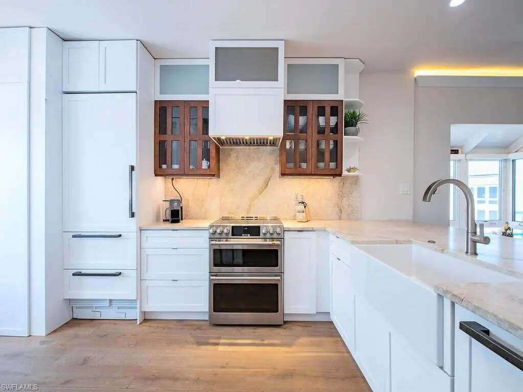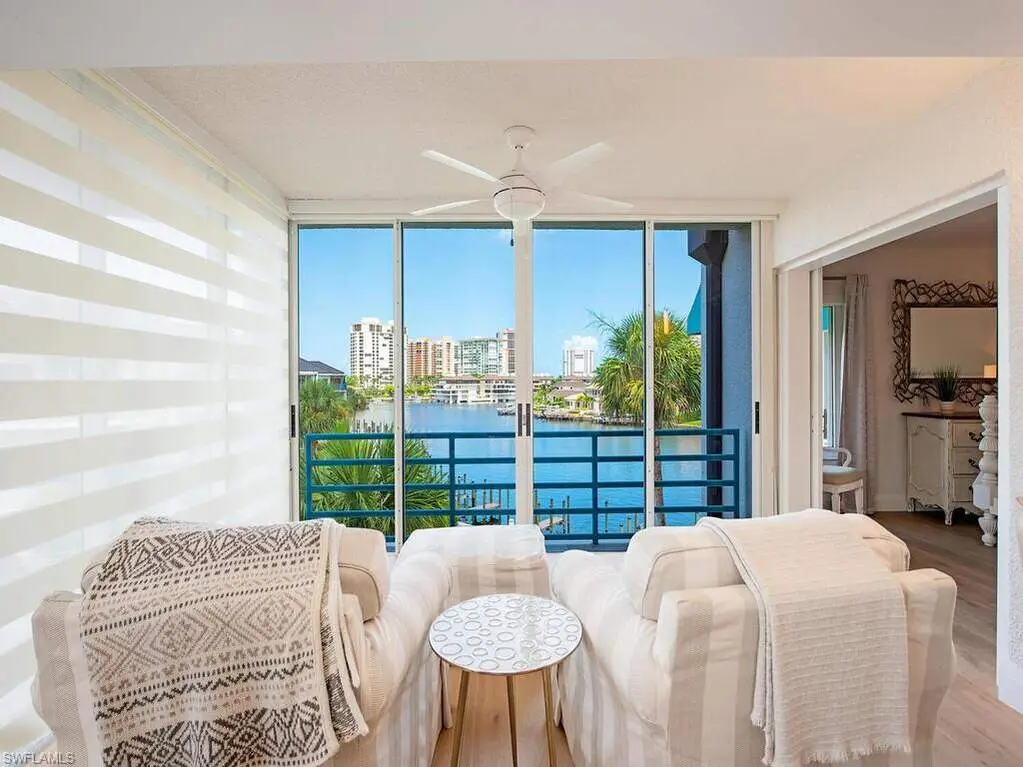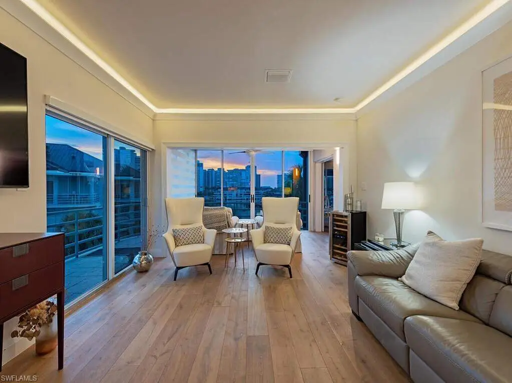 Park Shore Landings is one of the most sought-after low-density bay-front communities in Naples, ideally positioned along the serene waters of Venetian Bay and just a short stroll to the shops and dining found at Venetian Village. Known for its intimate setting, manicured grounds, and private beach access, the community offers a relaxed yet upscale coastal lifestyle in the heart of Park Shore. The unit offered is a rarely available top-floor, end-unit showcasing unobstructed western views across the bay, where evening skies and water reflections create a quiet, dramatic backdrop. The open-concept floor plan connects the kitchen, dining, office nook, and living areas, with natural light pouring in from multiple exposures, while the two bedrooms and two bathrooms are quietly secluded. Additional notable enchancements include rich wood floors throughout, a modernized kitchen with stainless steel appliances and precoius-stone countertops, as well as custom lighting-offering both style and comfort in every detail. Park Shore Landings features a bay-front pool and spa, private guest suite, grilling areas, available boat docks, and a resident clubhouse. Owners also enjoy private beach access through the Park Shore Association. This is a prime opportunity to own in one of Park Shore's most desirable bay-front enclaves, just minutes from Gulf beaches, Waterside Shops, the upcoming Four Seasons Naples Beach Club, and downtown Naples.
