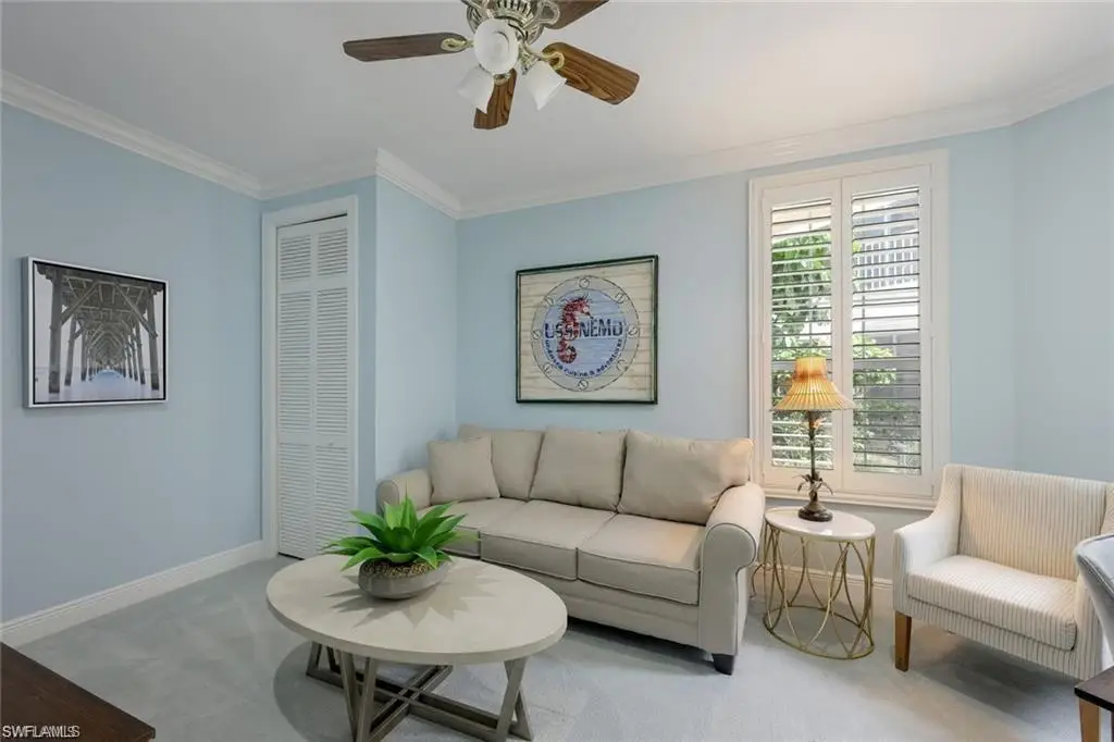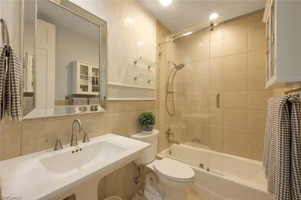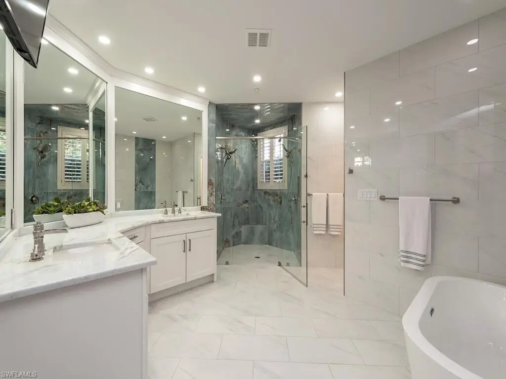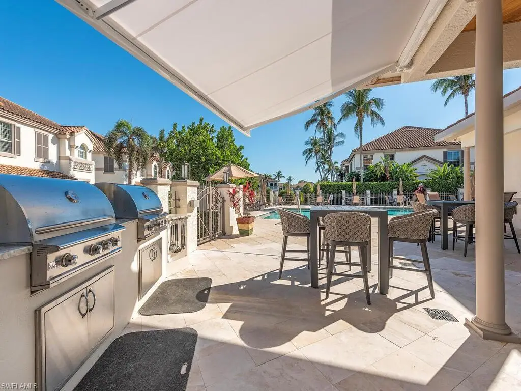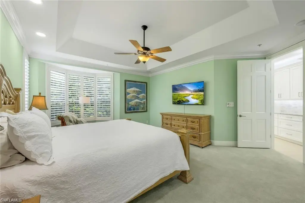 RARE TWO_CAR GARAGE, FIRST FLOOR RESIDENCE LOCATED IN THE COLONADE WITH THE MOST DESIRABLE LOCATION DIRECTLY ACROSS FROM THE FABULOUS NEWLY RENOVATED CLUBHOUSE, FITNESS, CENTER AND BBQ AREA. This stunning end unit underwent a 2023 remodel, featuring modern amenities and finishes. With an open, spacious floor plan, this unit is perfect for entertaining family and friends. The primary suite features an impressive recent, June 2024, full renovation of the en suite bathroom. Additional features include two guest bedrooms, additional full bath, laundry room, new AC and water heater. This popular Barcelona floor plan is perfectly situated right across from the newly renovated clubhouse, and in the front of the community, offering quick access to the Park Shore Private residents beach, and Venetian Village. You will LOVE the few short steps to the resort style community pool, hot tub, incredible new clubhouse with private kitchen, new BBQ area, and new state of the art fitness center plus Park Shore residents are also eligible to purchase or lease boat slips in the Venetian Bay Yacht Club. Your dream vacation home awaits.