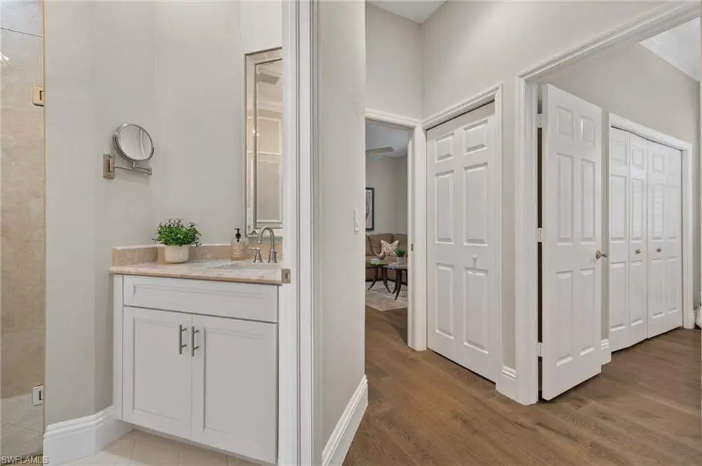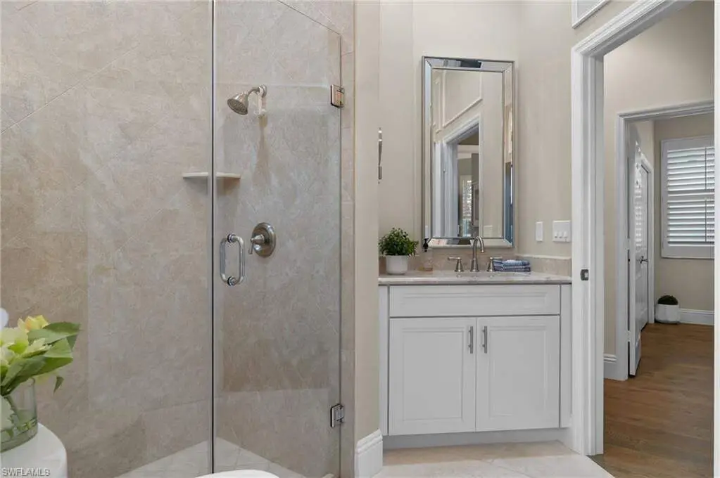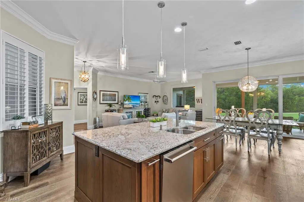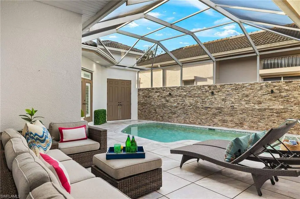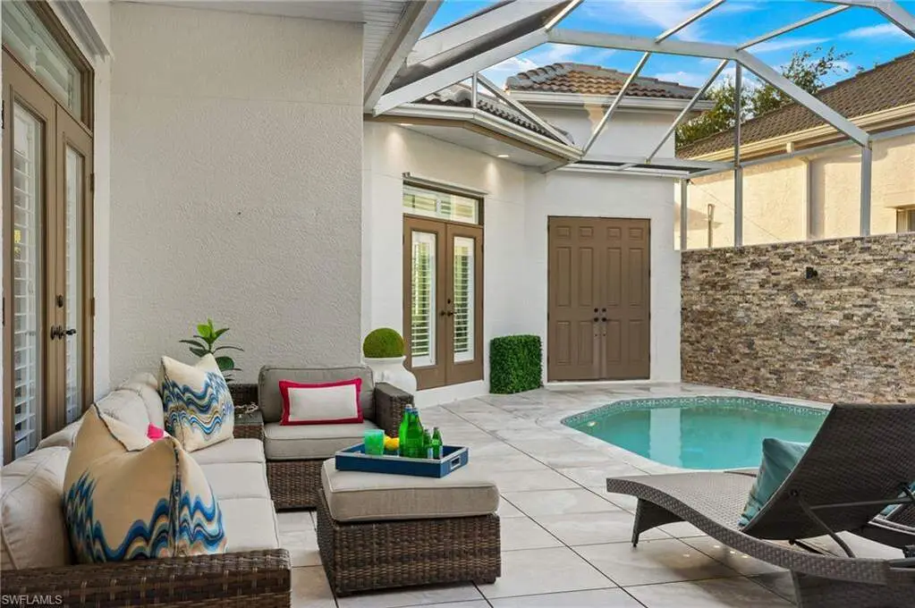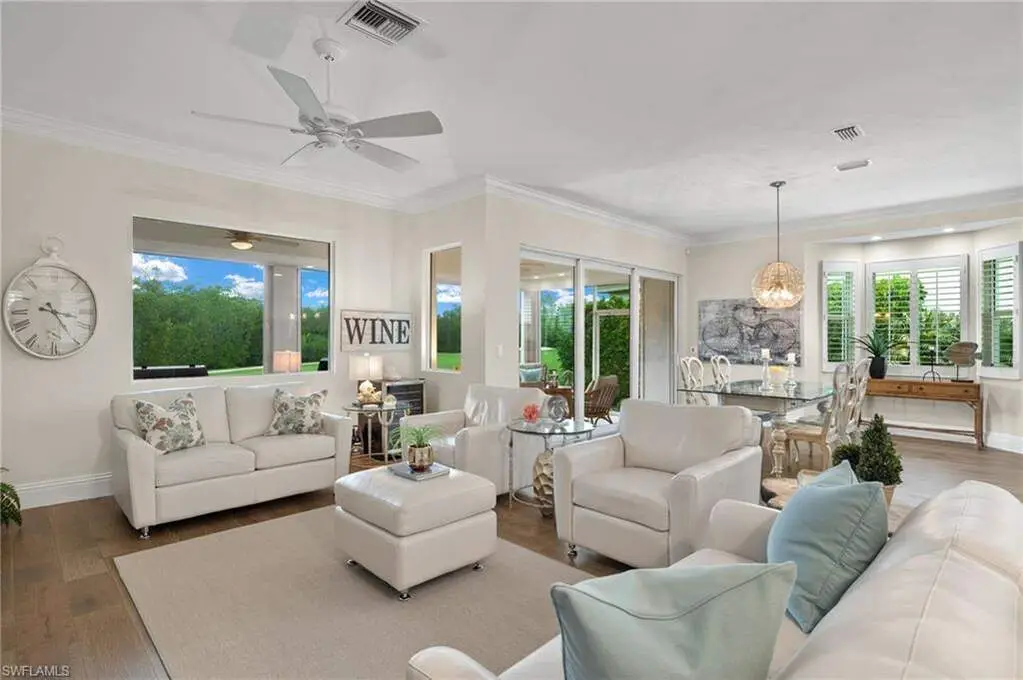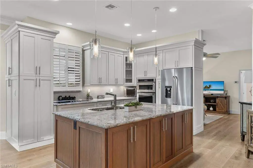 Welcome to 1737 York Island Drive, a rare opportunity on a quiet cul-de-sac in the desirable Ketch Cay community of Windstar on Naples Bay. This 3 Bedroom+Den/2 Full Bath stunning home boasts 2400 square feet and has been remastered and renovated inside and out. The living space was redesigned to create an open-concept floor plan including a spacious living room, dining area and kitchen seamlessly blending the indoor/outdoor Naples lifestyle. A true chef's kitchen replete with custom cabinetry and island, KitchenAid stainless steel appliances and granite countertops is ideal for entertaining. Living and dining areas open out to your screened in lanai with serene western views over the 6th hole and mangroves to truly enjoy the sunsets and breezes off Naples Bay just beyond the mangroves. A side patio is ideal for outdoor grilling. Enter your Master Suite oasis through double doors to a spacious bedroom with green views and lanai access. 3 closets including a walk-in featuring custom Californian Closets built-ins. Spa-like Master Bath features European-style walk-in shower, elegant freestanding soaking tub, double vanity and separate water closet. Split floor plan offers 2 guest bedrooms plus a shared full bath and a spacious den ideal for media room, home office or additional guest quarters. Three separate outdoor living spaces to truly enjoy the best of sunrise to sunset from the pool to the lanai to the patio. Windstar on Naples Bay is the only gated golf community with Tom Fazio designed 18-hole golf course that offers direct bay access, a private beach plus dock on Keewaydin Island with boat shuttle plus a full service 73-slip deep water marina. Newly renovated club house (separate membership) with multiple dining areas with stunning views of Naples Bay and Port Royal, billiards room, 6 Har-Tru tennis courts, bocce courts and a state of the art fitness center slated for mid-2026 completion. Preferred location just a short drive via car, bike or golf cart to downtown's 5th Avenue known worldwide for its fine dining, shopping and beaches. Situated in the vibrant Bayshore Arts District, Windstar is walkable to Naples Botanical Garden and Naples Pickleball Center home of the pickleball US Open. Easy access to I-75, Naples and Fort Myers airports. This truly exceptional home boasts modern features and amenities including hardwood floors, hurricane windows and doors, updated systems, plumbing and electrical. If you are looking to buy the quintessential, resort style home look no futher. This home is eligible for transferable social membership to Windstar Club.
