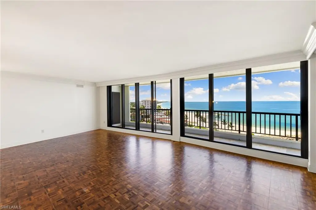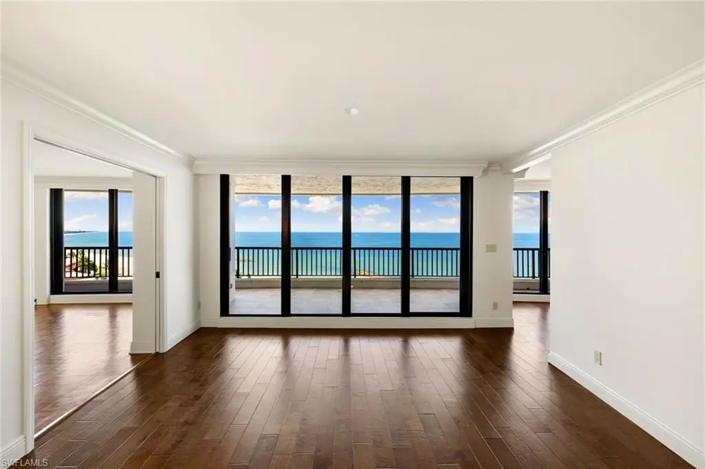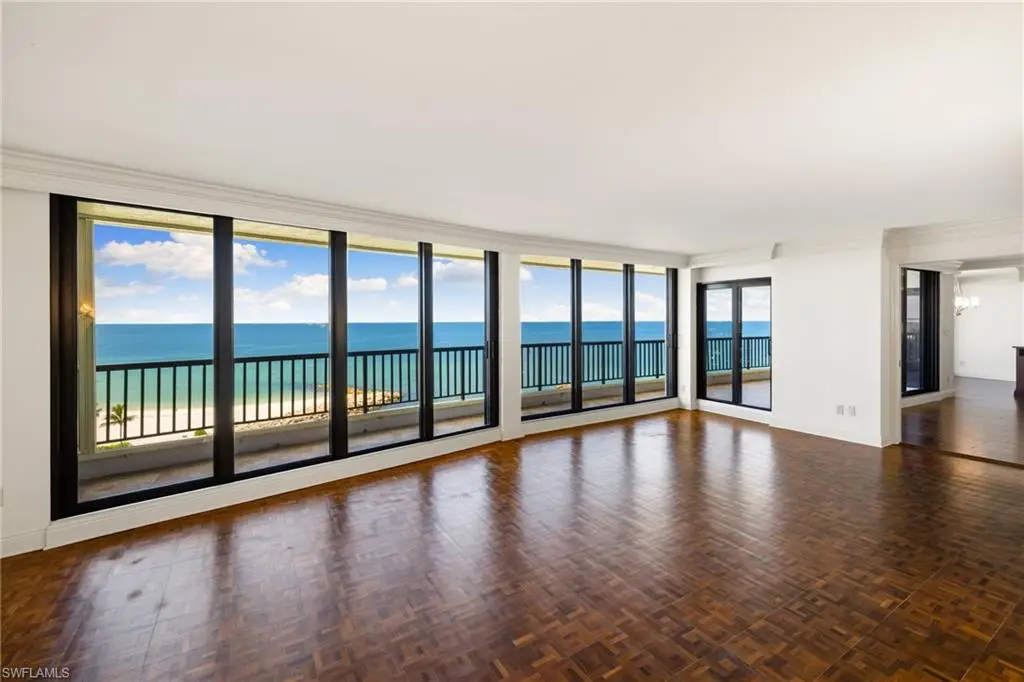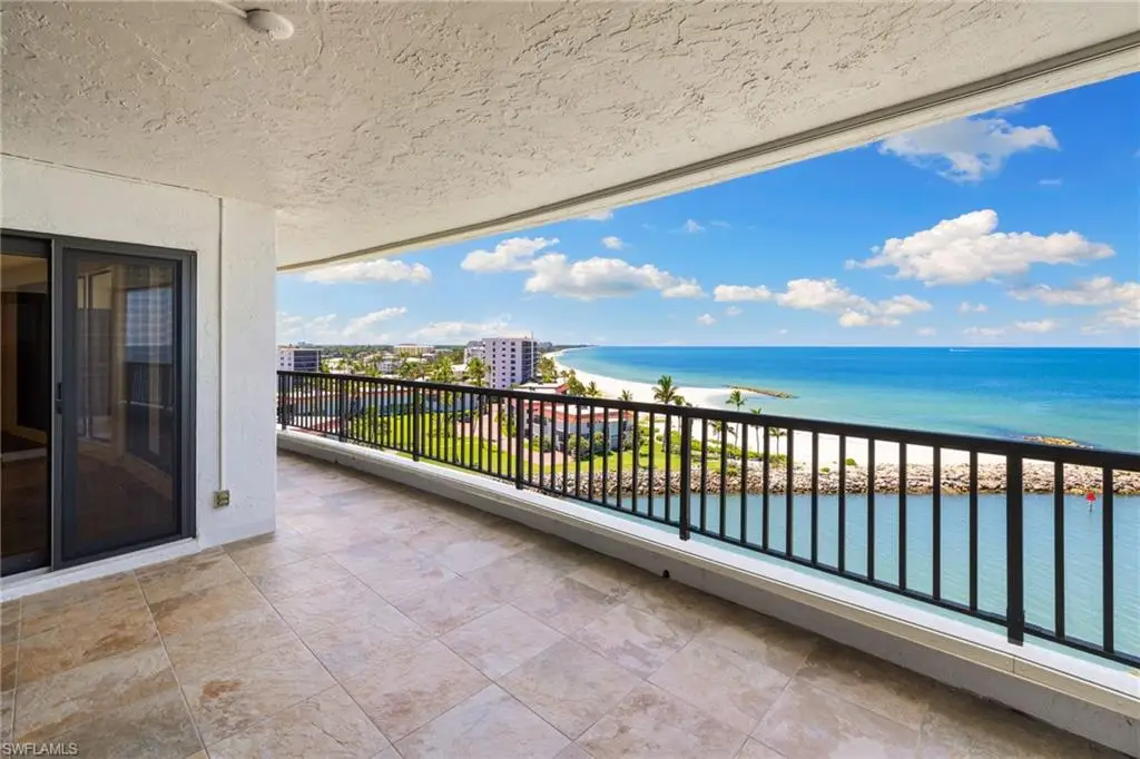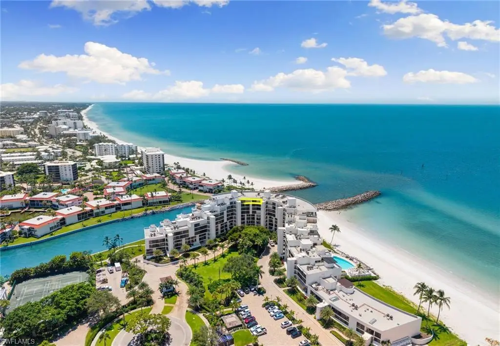 How's that lead off picture for a spot to have your morning coffee or tea to start your day?! VIEWS! Rare, sweeping, direct and full southern coastline views from all living areas and master suite, massive direct unobstructed Gulf views, long City views up Gulfshore Boulevard, direct views of Doctor’s Pass plus views to Moorings Bay from guest bedrooms and den. This residence is a beach-to-bay design, so you have southern, western, eastern and northern views and exposures. SIZE! Nearly 3,000 square feet of air-conditioned living space (was originally a four bedroom and can very easily be that again). LOCATION! At the end of the cul-de-sac with gated entry situated on nearly 10 acres of lushly manicured grounds with two pools, one renovated clubhouse area, and in recent years newly constructed grand clubhouse with fantastic workout facilities, boat docks and kayak storage / launch (subject to availability) - magnificent. Impact glass throughout for all windows and sliders plus extra storm protection from shutters on lanai and balcony areas. This type of residence is for all these reasons and more, authentically so very special, cannot be reproduced along Gulf Shore Boulevard, and offers tremendous value especially compared to the new construction residence costs along Gulf Shore Boulevard. Gorgeous beachfront. So close to any and all the every day-to-day conveniences and amenities you may need or want. This type of incredible setting is simply stunning particularly in a building that is so architecturally distinct in all the best ways. Come take a look and have a visit (it’s even better in person) - you may find your Naples beachfront residence awaits!