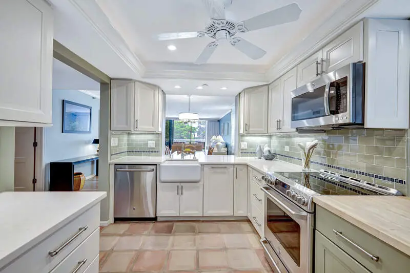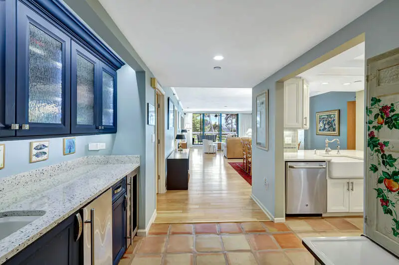 Step into coastal elegance with this recently remodeled condo in the beautiful Lucerne building in the Moorings. Designed with comfort and style in mind, this spacious two-bedroom, two-bath residence offers a harmonious blend of modern amenities, timeless charm and amazing outdoor space. The kitchen is a chef's dream-featuring custom cabinetry, stainless steel appliances, quartz and butcherblock countertops, recessed lighting, and stunning Saltillo tile flooring. An adjoining breakfast area opens to a private terrace-perfect for dining alfresco, enjoying the refreshing Gulf breeze, or planting your very own herb garden. Entertain with ease from the custom wet bar, complete with a separate ice maker and wine fridge. The expansive living and dining area with custom crown molding and hurricane-impact sliders opens seamlessly to the large screened lanai-ideal for relaxing or hosting guests. Retreat to the peaceful master suite with its private terrace, oversized custom walk-in closet, and spa-inspired bath featuring a generous walk-in shower and soaking Jacuzzi tub. Lucerne is a low-density building that offers an ideal deeded beach access, a bayside pool, community room, poolside BBQ area, under-building parking, ample guest spaces, and more. Boat docks are also available for lease. Come enjoy this amazing Naples' lifestyle!