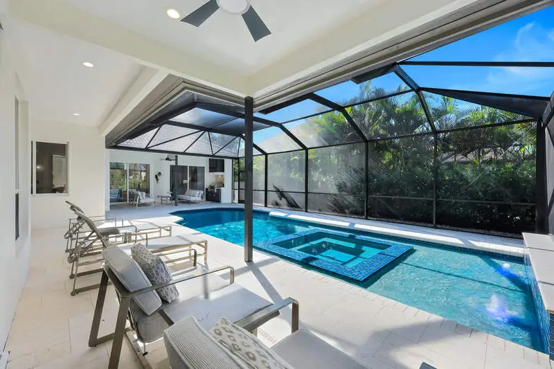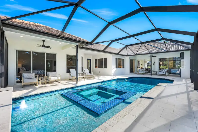 Experience a truly modern lifestyle in this recently remodeled four-bedroom, four-bath home, offering a modern aesthetic filled with natural light. Open concept living with 7" oak floors throughout, tiled accent wall in family room with Modern Flames fireplace and designer lighting throughout. Kitchen features new custom cabinetry, new Thermador appliances, tiled backsplash and Pompeii Quartz countertop. Custom glass enclosed wine storage in Dining Room. Spacious Master Suite allows access to Lanai. The ensuite bathroom offers a custom dual vanity & mirror with designer wall mount pendant lighting, a frameless walk-in shower, as well as a free-standing soaking tub for ultimate relaxation. A Spacious Guest Cabana with sliders to the pool and views of the beautiful back yard, offers your Guests their own space including a large, walk in shower, double sink vanity, walk in closet and Kitchenette. Step outside to discover a newly renovated private outdoor oasis, including new pool with sun shelf & spa, new pavers, screen enclosure and outdoor kitchen featuring an elegant stone wall, and integrated television creating the perfect venue for al fresco entertaining with a sought-after Western Exposure allowing for beautiful sunsets. Located on the coveted Bay Side of Audubon, the residence backs up to the 11th hole and offers views of the lush fairway, manicured landscaping, and a tranquil preserve. Audubon Country Clubs a 755 acre, Audubon-certified Sanctuary with a Joe Lee Signature 18-hole private course. IMMEDIATE GOLF PRIVILEGES with a "Social Waiting Golf" membership. Live the ultimate Country Club lifestyle in this welcoming and vibrant club featuring premier amenities such as tennis, pickleball, heated lap pool with poolside cafe, bocce, a state-of-the-art fitness center, kayaking and soon to be renovated Clubhouse.