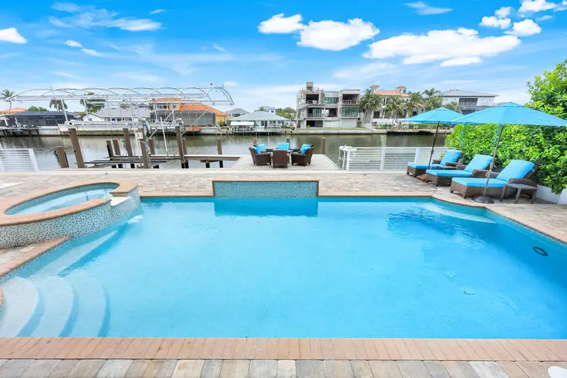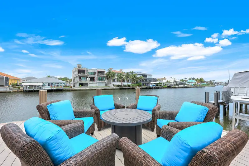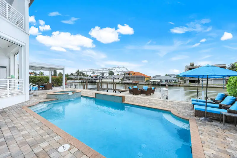 Experience luxury coastal living in this reimagined 5,737 sq ft contemporary home with gulf access overlooking the widest canal in Vanderbilt Conners! You will enjoy the sunny location with preferred Southern exposure. 5-bedroom + den and 5.5-bath residence has been elevated with exquisite upgrades throughout which includes an added first floor guest bedroom complete with en-suite. The gourmet kitchen features two quartz islands, custom cabinetry, and a picture window that fills the space with natural light. Coffered tray ceilings, remote window treatments, marble and wood flooring throughout. Luxurious primary bedroom features walk-in closets and bath with walk-in shower and free standing soaking tub. The exterior showcases dramatic square columns flanking each side of the front entrance, expansive covered terraces, fresh white paint, and coastal blue Bahama shutters. A full-home generator, storm shutters, and privacy wall. The updated pool and spa has oversized deck which includes electronic pergola perfect for entertaining. Additional highlights include a 13,000 lb boat lift. Luxurious yet casual and built for the ultimate in boating... from your own back yard. Unparalleled lifestyle conveniently located to the beach, the Ritz-Carlton, Mercato Shops, La Playa Beach club, public tennis courts and future pickleball courts plus plethora of dining options including beachfront dining at the Turtle Club, Baleen and the Ritz's Gumbo Limbo.