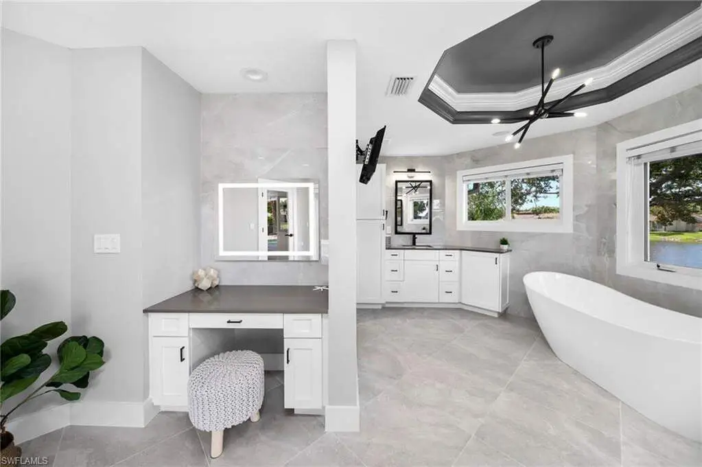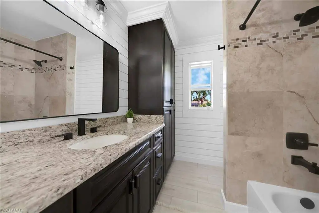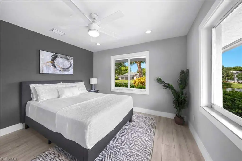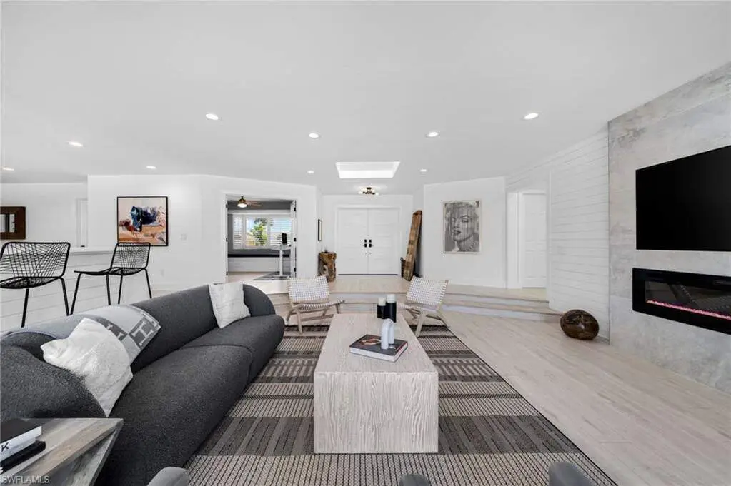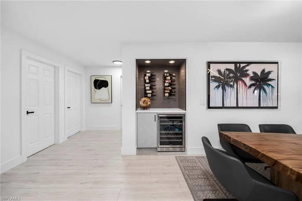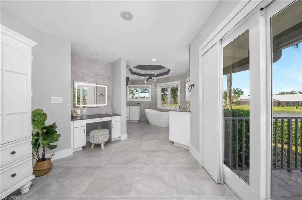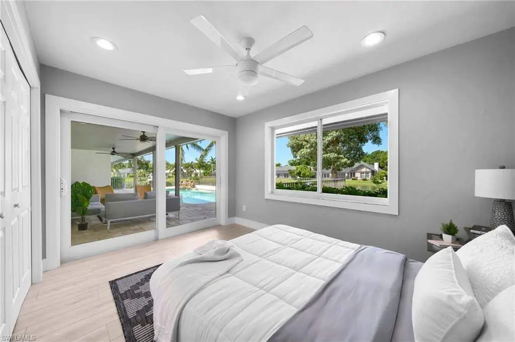 The jewel of Pinewoods! Discover this completely remodeled home on one of the most sought-after lots in Pinewoods. Nestled on an oversized pie-shaped lot with expansive lake frontage, this property offers beautiful views and tranquil outdoor living. Step inside to find a home designed with top-of-the-line finishes and a sophisticated, contemporary flair. The heart of the home is the modern kitchen, featuring a sleek marble waterfall peninsula, stainless steel appliances, a wine cooler, and a thoughtfully designed dining area perfect for family gatherings or entertaining. The inviting floor plan seamlessly blends indoor and outdoor living. Host effortlessly with easy access to the resort-style pool and spacious lanai, where you can relax and soak in the wide lake views. Pinewoods is a coveted low-fee community in a prime location. You'll enjoy quick access to downtown Naples, Mercato, world-famous beaches, and top-rated schools, along with an array of shopping and dining options.