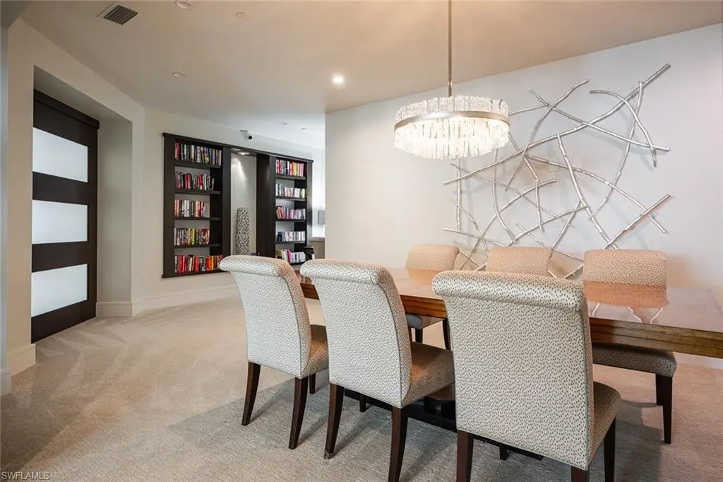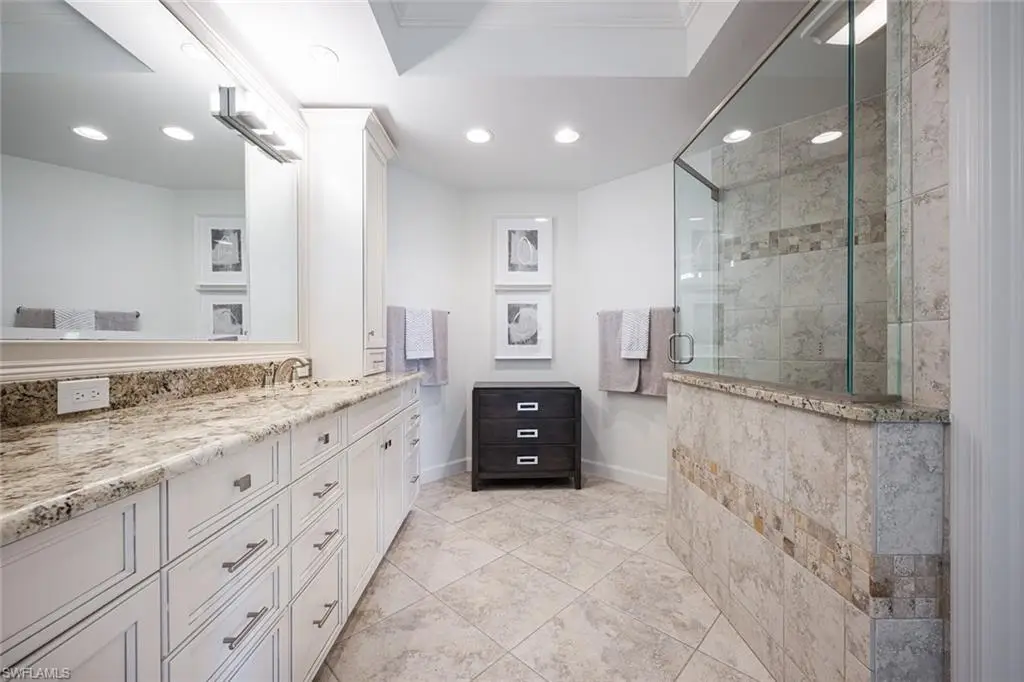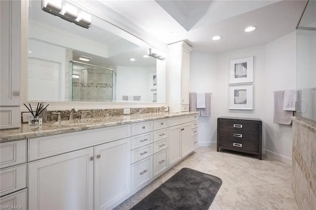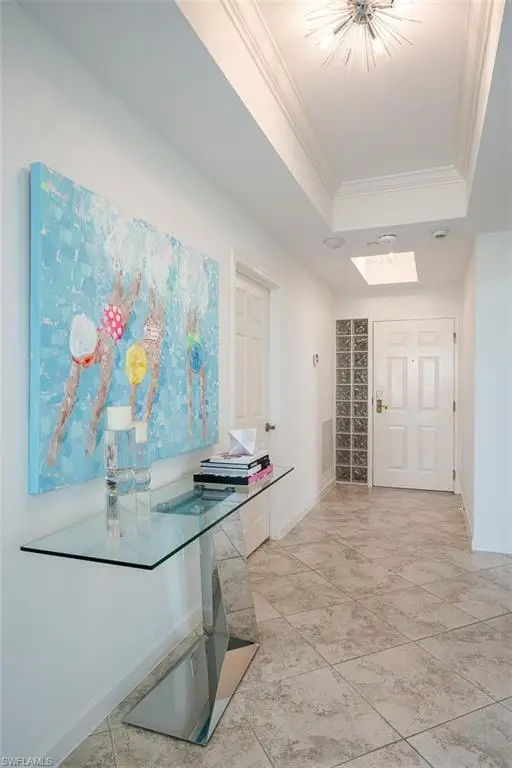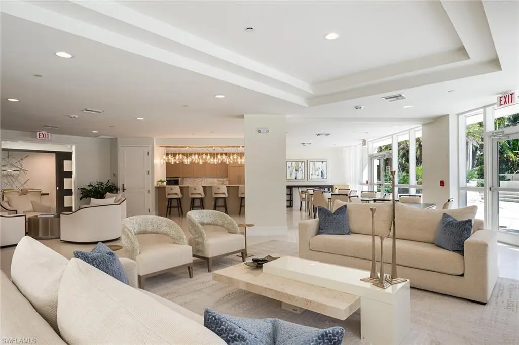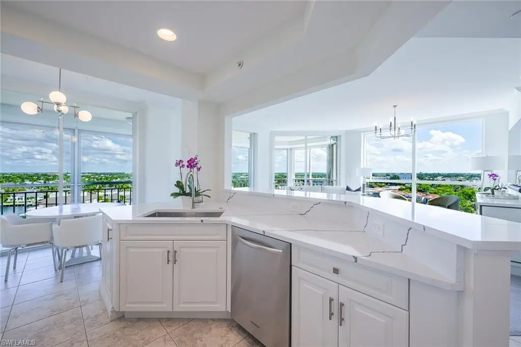 Experience effortless coastal living from this beautifully updated residence overlooking the shimmering waters of Venetian Bay. With captivating sunset views of the Gulf of Mexico from its expansive wraparound terrace, this two-bedroom plus den, two-bath home offers 1,649 square feet of refined comfort and style. The open-concept layout features nine-foot ceilings and a spacious primary suite with a large bath, walk-in and linen closets, and generous guest accommodations. The recently enhanced kitchen now showcases sleek quartz countertops and a more open design, while automatic shades, upgraded lighting, and plush new carpet add a touch of modern luxury. The screened lanai, equipped with electric storm shutters, provides peace of mind with ease of hurricane protection. Residents of this impeccably maintained building enjoy a host of first-class amenities, including a newly remodeled lobby, social room, and library, plus a sparkling pool and spa area with grilling stations, a well-equipped fitness center, guest suites, and on-site management. A deeded parking space and private storage are also included. Ideally situated near The Village Shops on Venetian Bay, youÆll enjoy fine dining, boutique shopping, and marina services just moments from home. Boat docks are available across the street for Park Shore homeowners to lease or purchase, offering the ultimate Naples waterfront lifestyle.