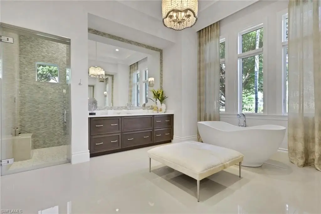 Welcome to a Signature luxury design, The "Atherton". From the moment you step inside, you'll notice the exceptional craftsmanship and meticulous attention to detail throughout. This newly updated and beautifully decorated and fully furnished residence is light and bright and designed for both comfort and style. The open concept floor plan features high vaulted ceilings and stunning private views. The home offers a split plan to 3 private guest ensuites and a 4th master bedroom with a striking island bathtub and large walk-in steam shower. Located in this almost 5000sqft estate is every amenity: a bar area, an open chef's kitchen with two large counter islands, a private dining area that seats up to 10, a home office, and an exercise room. This is a home that needs nothing! Leading from the living room with pocket sliders is a fantastic outdoor living space and a sun-drenched recrafted new pool and spa. This space has been well thought out and beautifully furnished to host all your family times and make gathering with friends effortless and entertaining! The outdoor fireplace and romantic pool fire feature allows for those cool Seasonal evenings when you just need to relax. This entire outdoor entertainment space includes auto screens and shutters. No options were spared in this former model including a whole home generator. The lush grounds of Quail West have made it the hidden gem of Southwest Florida for many years. 36-holes of golf designed by Arthur Hills. Amazing fitness Center, Salon, and exceptional private dining options make this home and private club a delicious opportunity. Golf Membership Available.