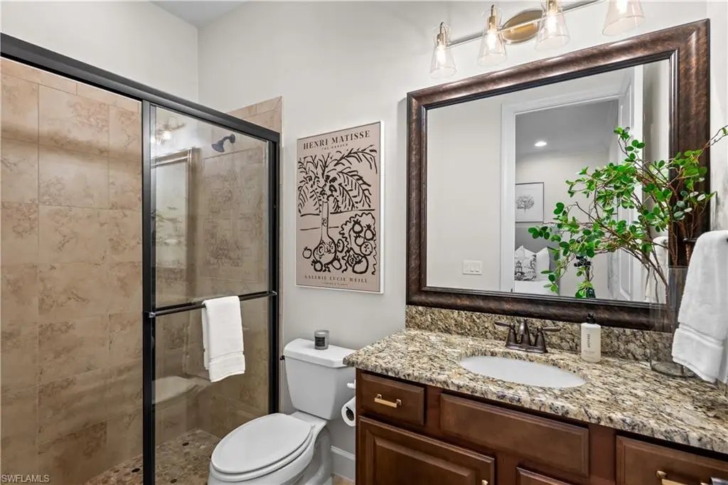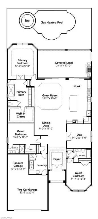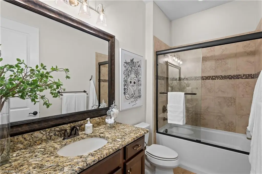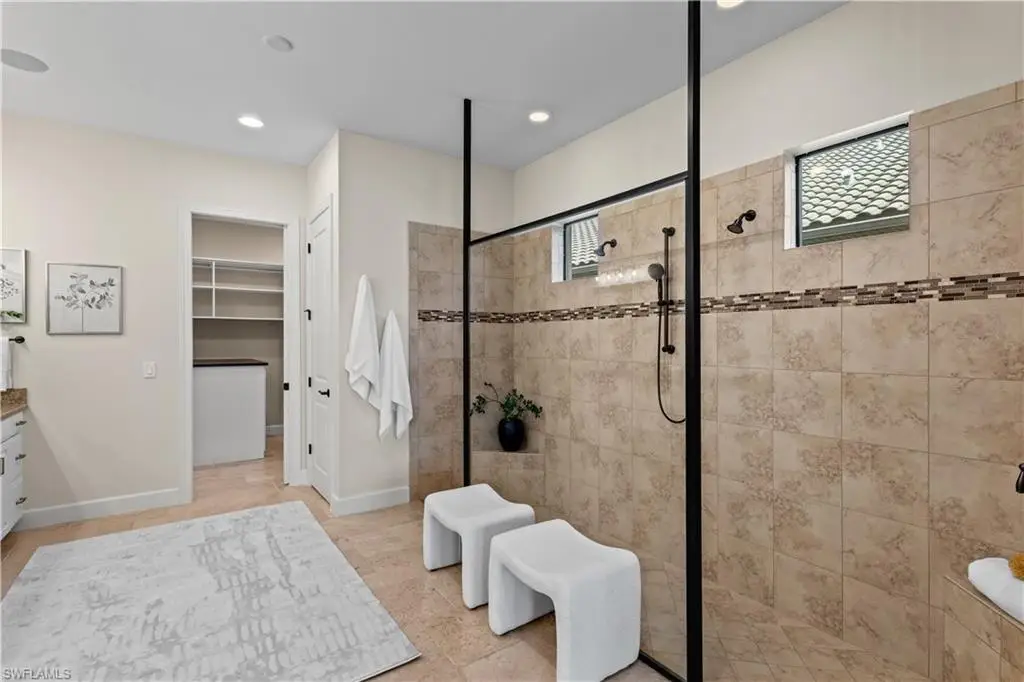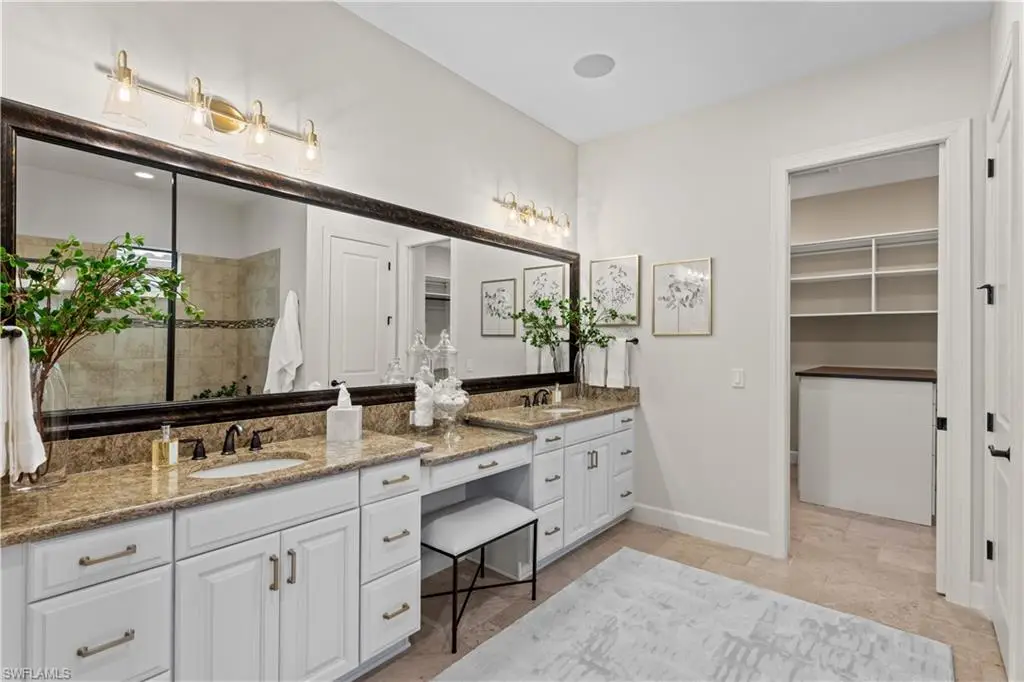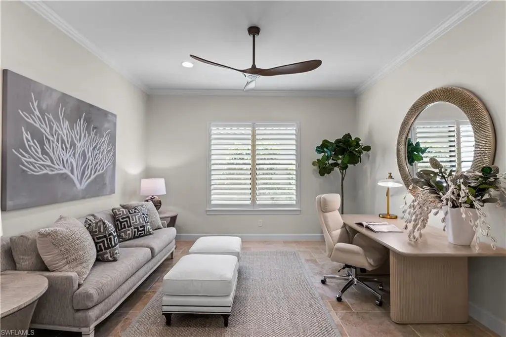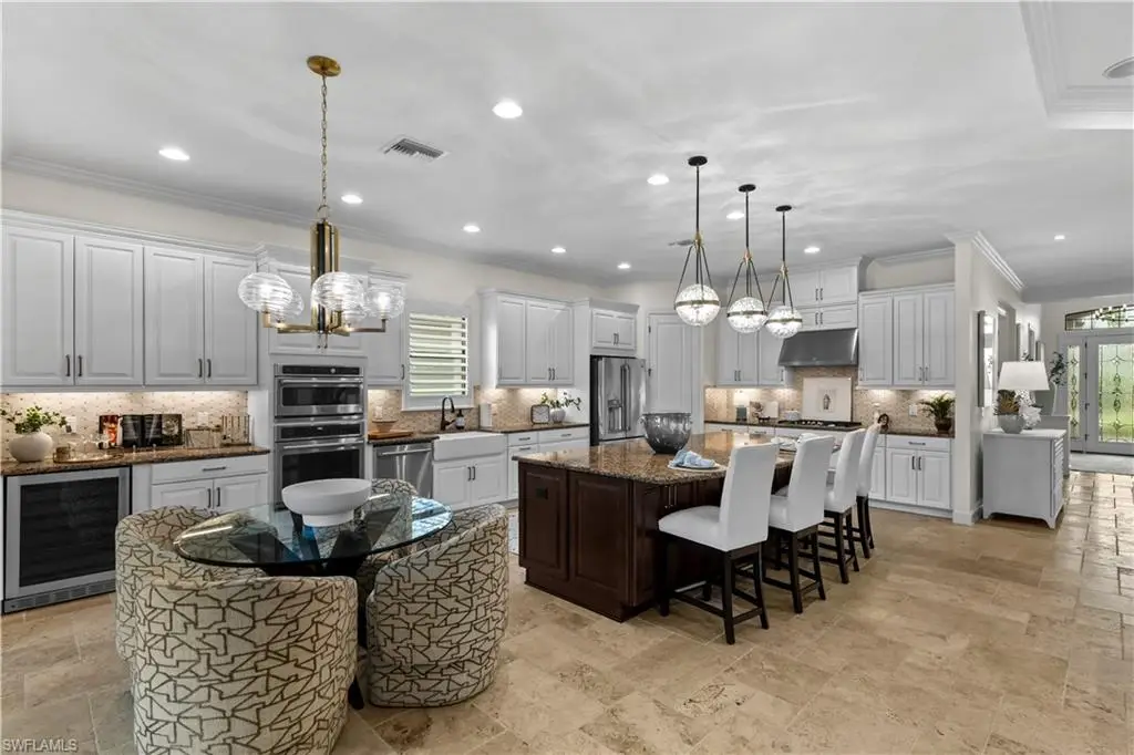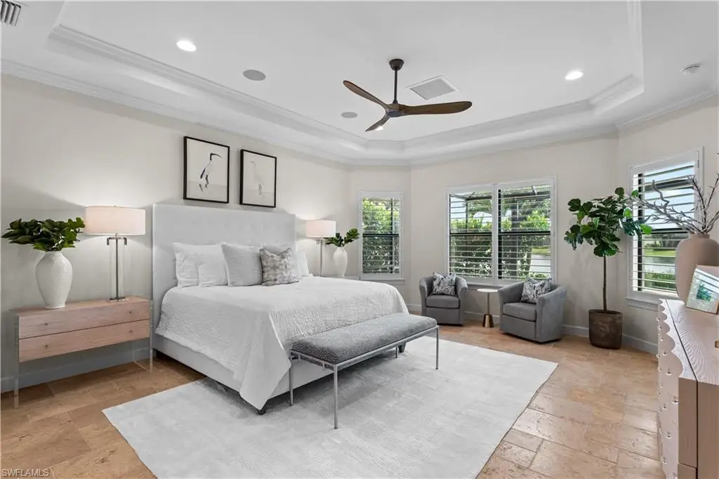 LIVE A VACATION LIFESTYLE IN ESPLANADE! FULL GOLF MEMBERSHIP INCLUDED! Step into this highly upgraded "Palazzio" offering 3 spacious bedrooms, den, 3 full bathrooms, and 3,116 sq ft under air. With oversized rooms throughout, the open great room floorplan creates a seamless flow for entertaining and comfortable living. Two sets of pocketing sliding glass doors invite you to the expanded lanai, where you can enjoy picturesque wide lake views and SOUTHERN EXPOSURE, making this outdoor space an absolute retreat. The private pool area boasts a gas-heated saltwater pool with a raised spa and sunshelf. For those who love outdoor living, the lanai is equipped with an outdoor kitchen, feature wall with an LED fireplace & TV, all enclosed by electric motorized roll-down hurricane screens, ensuring year-round enjoyment. Inside, the home features rich travertine marble tile throughout the entire home. The expanded kitchen has been fully updated with white raised-panel cabinetry with contrasting wood tone island, Cambria quartz countertops, a stylish tile backsplash, and top-of-the-line GE Cafe appliances, including wall oven, convection microwave, wine cooler, and GAS cooktop. Additional luxury finishes include: HURRICANE IMPACT GLASS WINDOWS/DOORS; impact glass double front doors with matching sidelights; tandem style 3 car garage with built-in cabinetry & finished garage floor; great room built-in with custom cabinets, wall detail, and wall mounted TV; expanded primary & front guest bedrooms with bay windows; special order lights/chandeliers; finished closet cabinets throughout; crown molding & plantation shutters throughout; recessed lights in every room; freshly painted interior; spacious Laundry Room with cabinetry; tankless GAS hot water heater; 8' solid core doors/10' ceilings; extensive landscaping with landscaping lighting; and more! Esplanade Golf & Country Club of North Naples offers a true "Lifestyle Community" with world-class amenities, including a resort pool with cabanas and the popular "Bahama Bar" tennis, pickleball, bocce, a 14-mile network of bike/walking trails, and an 18-hole private golf course. The impressive 15,000 Sq Ft clubhouse features a restaurant, bar, wine-tasting room, wine lockers, and a Starbucks-style cafe. Best of all, the property's landscaping, irrigation, golf membership, and all community amenities are covered under a quarterly fee of just $3,434ùno additional fees or memberships required! Don't miss your opportunity to own this exceptional home in one of Naples' most sought-after communities. Schedule your tour of this stunning home and Esplanade Golf & Country Club today!