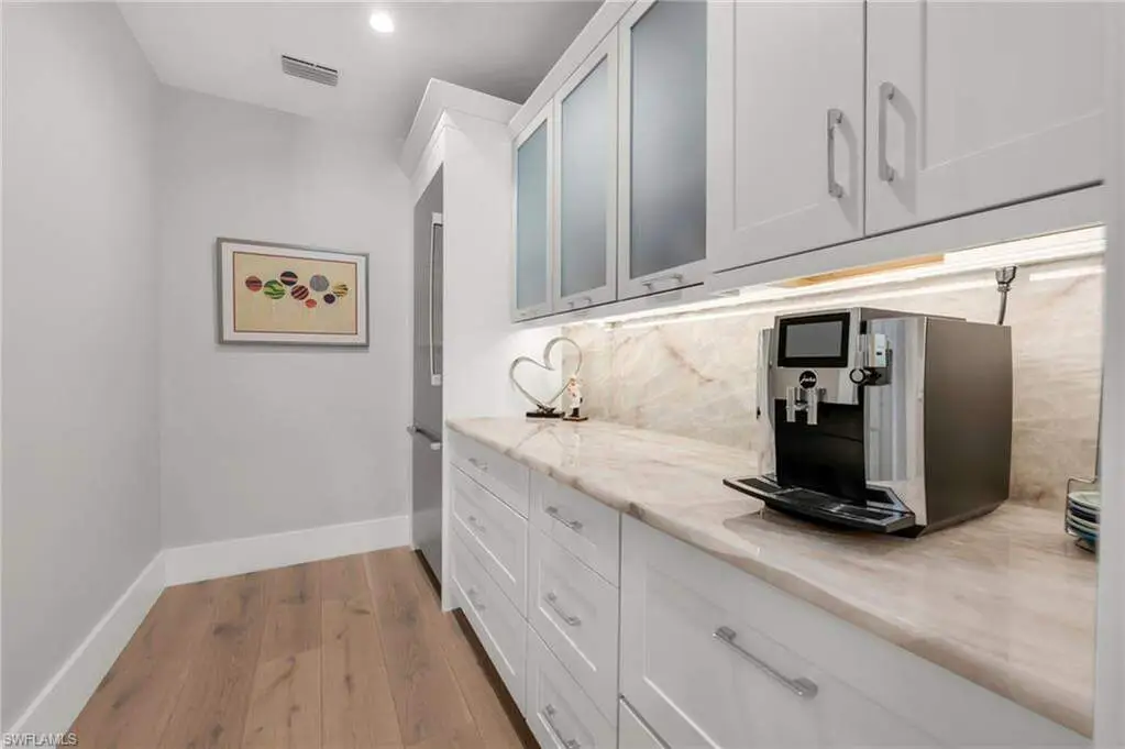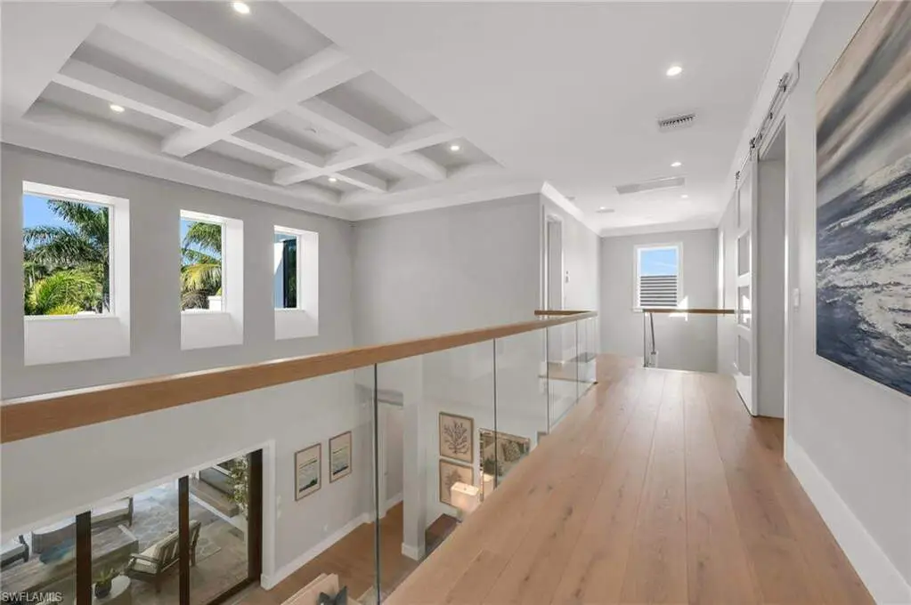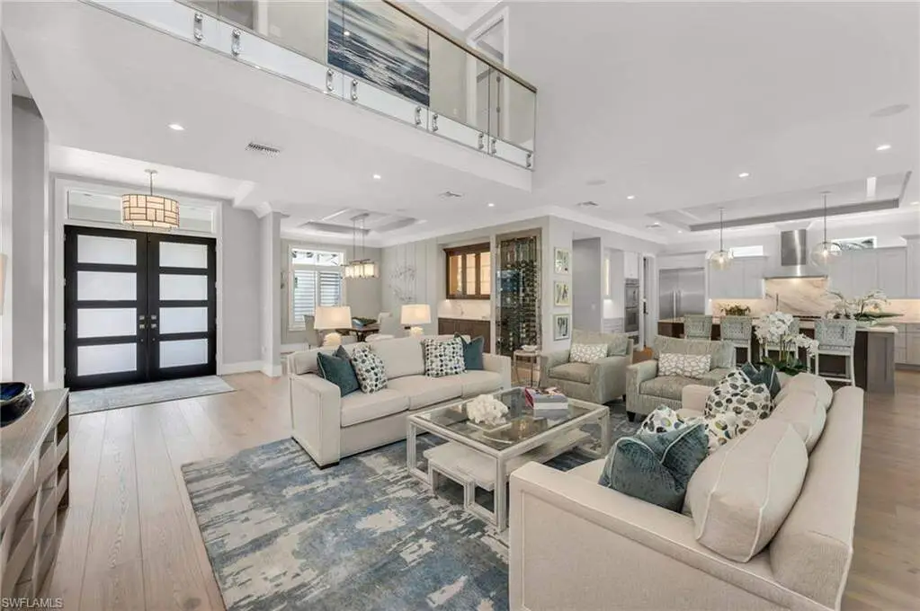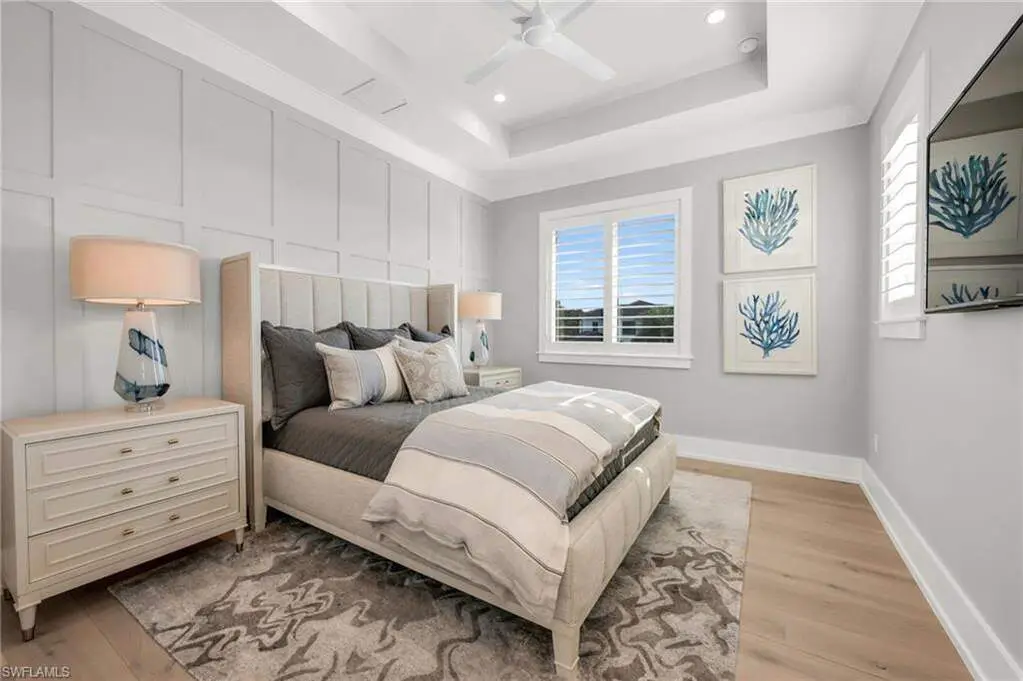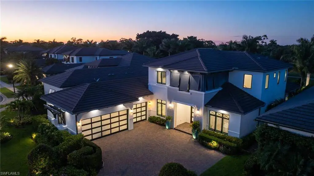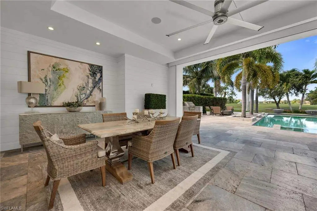 Resort-Style Luxury in The Landings at Bears Paw, Stunning- 4 Bedroom plus Den, 5 1/2 Bath, Custom Home with Gulf Access. Welcome to The Landings at Bears Paw, Naples hidden gem tucked between the Gordan River, Greenway Park, and the Jack Nicklaus Signature Bears Paw Golf Course. This stunning 2019-built custom two-story home by MHK Architect & Planning has impeccable finishes and details. Designed for entertaining and Florida living at its best, the home boasts a Gourmet Kitchen, with Thermador Appliances, Custom Cabinetry, Enlarge Island & Pantry. Three bedrooms are all-in suite, providing privacy and luxury for family and guests. The media room ia a showpiece with custom cabinetry, granite counters, and refrigator drawers-perfect for movie nights, or hosting friends. Step outside and enjoy your golf course views right from your expansive 1900 sf lanai, featuring a custom fireplace, fully equipped outdoor kitchen, resort-style pool with fire bowls and fire table, perfect for sunset cocktails or weekend gatherings. Plus, your private dock with boat slip offers direct access to the Gulf, for endless adventures. Every detail has been thoughtfully curated for both function and flair, from spacious living areas to light filled interiors and elegant finishes throughout. This home combines recreation, relaxation, and luxury into one perfect package.