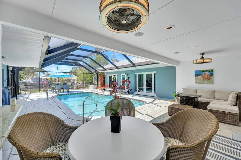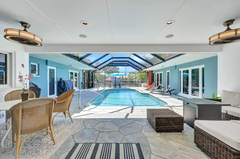 Screened pool/courtyard Waterfront view of the canal