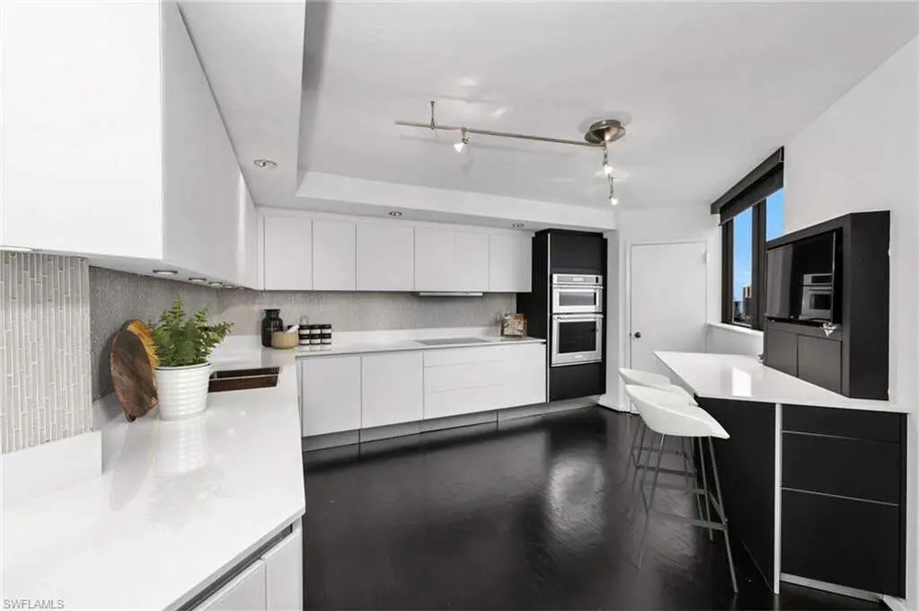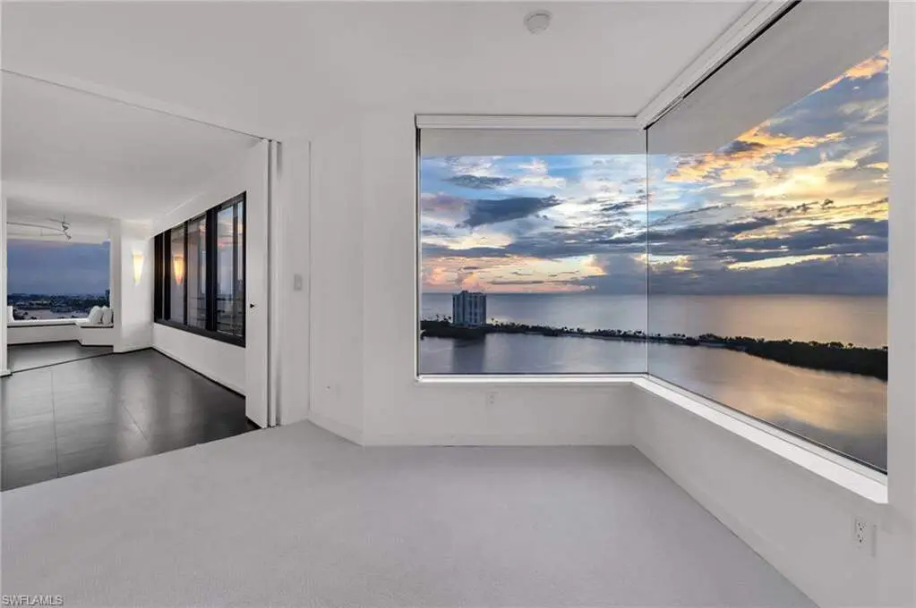Nestled in the heart of Naples, this exceptional 21st floor end unit offering over 2400sqft, is a fusion of modern elegance and coastal charm, a fully renovated sanctuary where clean lines rule the day. A true gem offering serene living with modern luxury and is just waiting to be your idyllic retreat. Start your mornings with breathtaking, uninterrupted panoramic views of the Gulf and Clam Pass through expansive walls of sliding windows that open and two mitered glass corner windows, a design marvel that invites the serene beauty of sunsets year-round. This residence is a haven for culinary aficionados, boasting loads of storage space and stainless high-end appliances, including Sub Zero, which cater to your every culinary whim. The generous primary suite with Gulf front sitting area has LONG water views & lovely sleek bath offering two sinks, an oversized glass shower, ample storage, and a fully outfitted walk in closet. Guests are tucked away in their own suite with VIEWS of Pelican Bay plus full bath & even more closets. The Heron is an intimate, well-appointed building with just 2 units per floor and 40 units total: lives like having your own home in the sky! This gem has a fabulous great room style floorplan with forever views that take center stage. Immerse yourself in the Pelican Bay lifestyle replete with unparalleled community amenities: miles of beach, nature paths to explore, private beachfront restaurants for savored moments, and beach services that redefine relaxation. Engage in a variety of lifestyle events and wellness classes at the full-service fitness center, or indulge in the thrill of tennis or pickleball on pristine courts, with pro shops at your service. A community center, canoes, kayaks, and sailing bring adventure to your doorstep, while bespoke nutrition services in the wellness studio cater to your well-being. Ideally situated within walking distance to Waterside Shops & Artis Naples, convenience meets sophistication in this sky-high blank canvas where you can craft your dream home