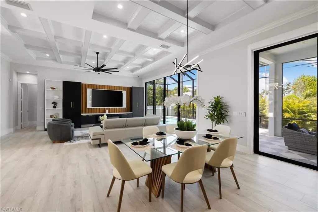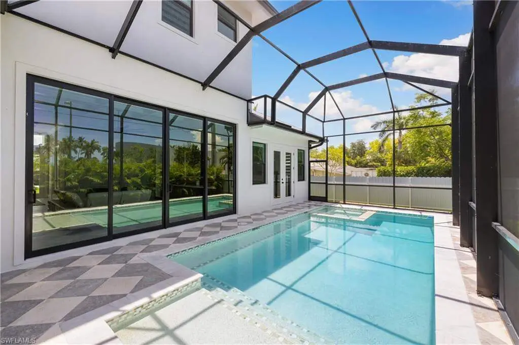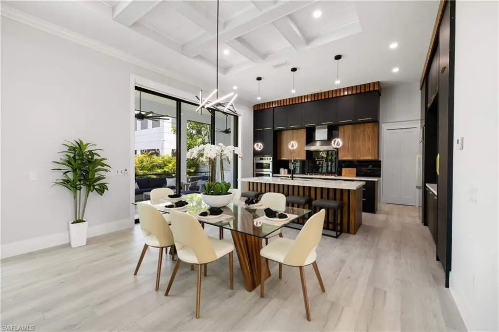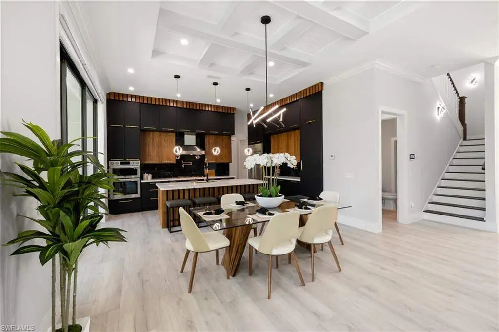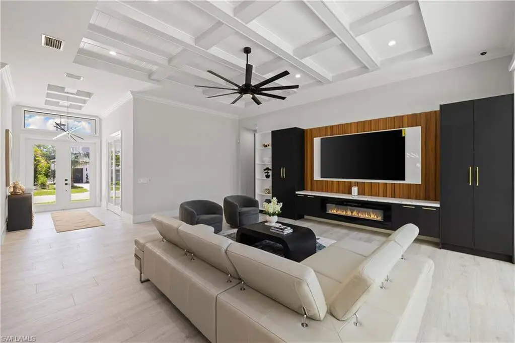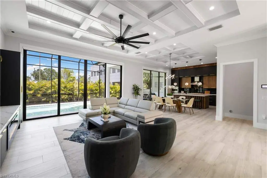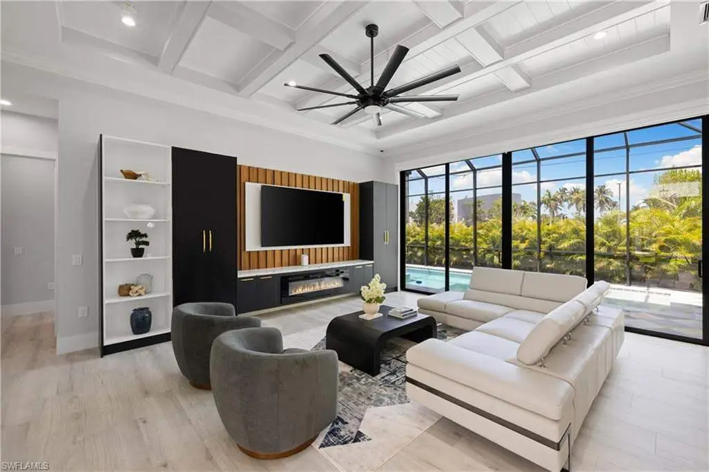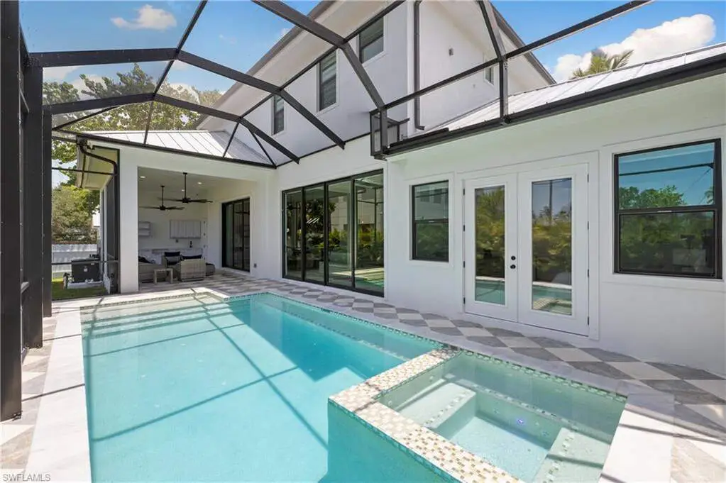 2025 NEW CONSTRUCTION, CONTEMPORARY ESTATE WITH 4 BEDS + DEN + BONUS LOFT AREA IN THE HIGHLY COVETED NEIGHBORHOOD OF LAKE PARK IN NAPLES! Perfectly located just 1 mile (4-minute drive or 7-minute bike ride) from both the pristine white sands of Naples Beach and the iconic 5th Avenue South, offering world-class dining, shopping, and entertainment right at your fingertips. This exceptional home is positioned with desirable Southwestern exposure for stunning sunsets and all-day sun over the pool area. Crafted for modern living, this residence features hurricane-impact windows and sliders throughout, a metal roof, and meticulous finishes. The open airy floor plan is enhanced by driftwood-style wide plank tile flooring and high coffered ceilings paired with tongue and groove wood paneling. Two sets of 9-foot impact sliding glass doors open seamlessly to the outdoor oasis, where a spacious saltwater pool with a tanning shelf, spa, and summer kitchen await, all surrounded by lush landscaping for ultimate privacy. The modern chef's kitchen features white quartz countertops, all Dacor appliances including gas range, and custom dual-toned cabinetry with rich wood grain and warm gold hardware. The primary suite is a private retreat, with French doors leading to the pool deck, a large walk-in closet with custom built-ins, and a spa-inspired bathroom boasting floor-to-ceiling marbled tile, a luxurious walk-in shower with six shower heads including rainfall, and a freestanding soaking tub. All guest bedrooms offer ensuite baths and walk-in closets, providing comfort and privacy for visitors, plus a second-story loft for their own private living space if desired. Located in an "A-rated" Collier County school district, and just minutes from Venetian Village, Waterside Shops, and Third Street South, this home delivers the best of luxury coastal living in one of Naples' most desirable neighborhoods.