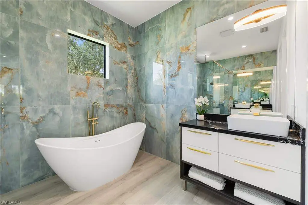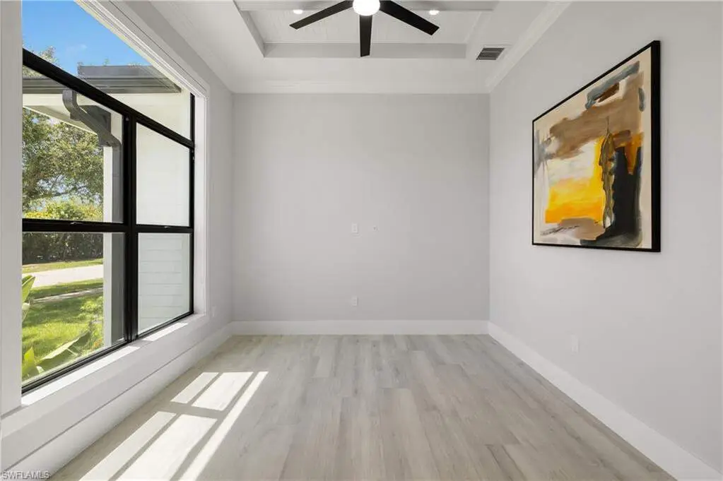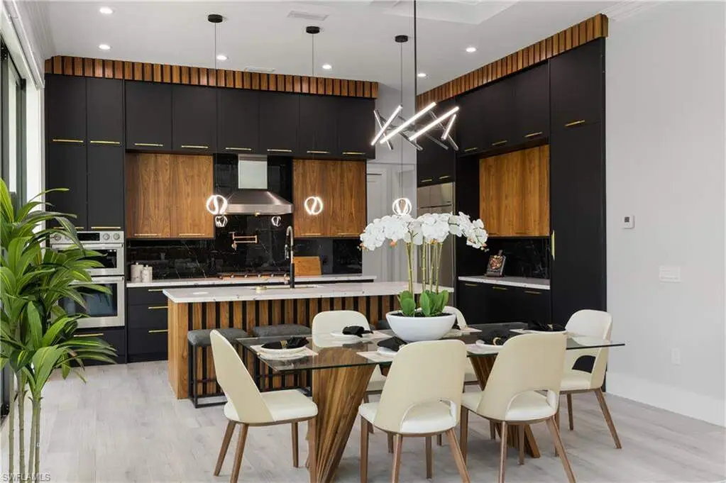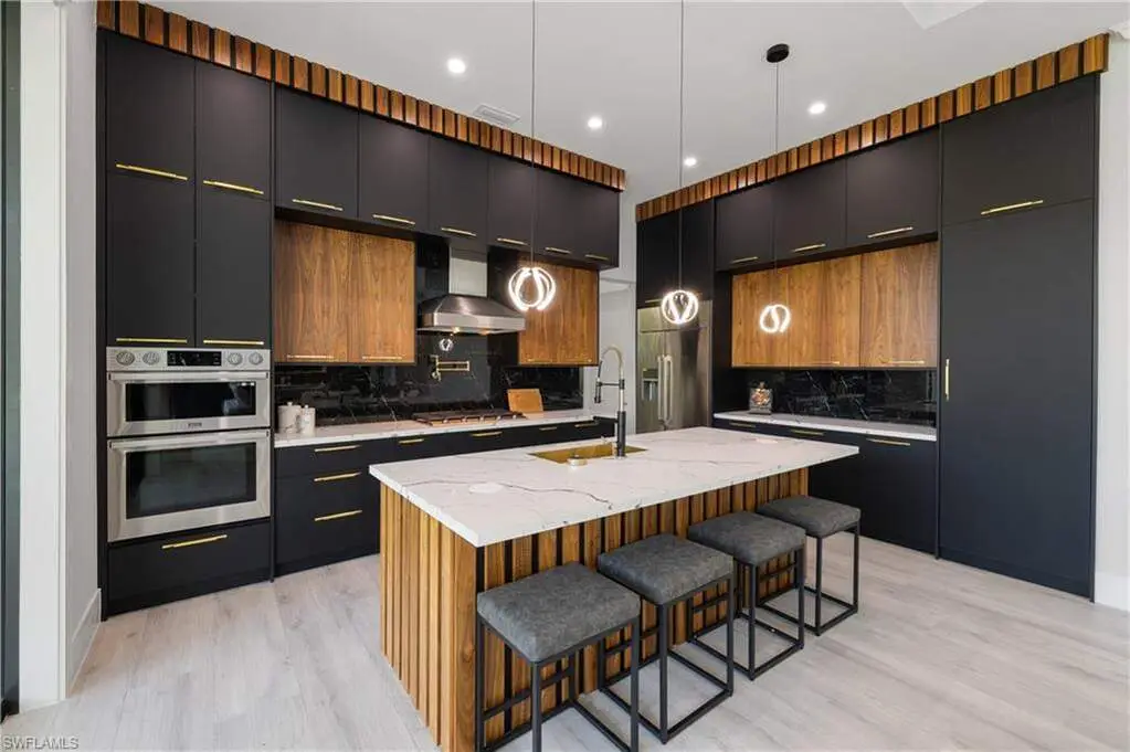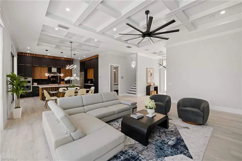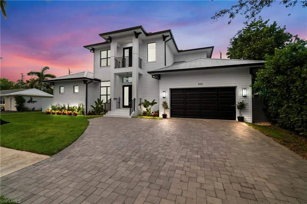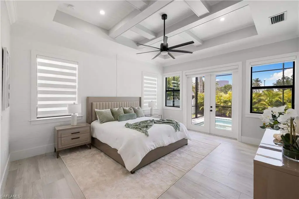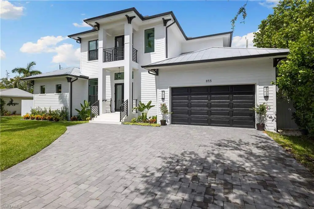 2025 NEW CONSTRUCTION, CONTEMPORARY ESTATE WITH 4 BEDS + DEN + BONUS LOFT AREA IN THE HIGHLY COVETED NEIGHBORHOOD OF LAKE PARK IN NAPLES! Perfectly located just 1 mile (4-minute drive or 7-minute bike ride) from both the pristine white sands of Naples Beach and the iconic 5th Avenue South, offering world-class dining, shopping, and entertainment right at your fingertips. This exceptional home is positioned with desirable Southwestern exposure for stunning sunsets and all-day sun over the pool area. Crafted for modern living, this residence features hurricane-impact windows and sliders throughout, a metal roof, and meticulous finishes. The open airy floor plan is enhanced by driftwood-style wide plank tile flooring and high coffered ceilings paired with tongue and groove wood paneling. Two sets of 9-foot impact sliding glass doors open seamlessly to the outdoor oasis, where a spacious saltwater pool with a tanning shelf, spa, and summer kitchen await, all surrounded by lush landscaping for ultimate privacy. The modern chef's kitchen features white quartz countertops, all Dacor appliances including gas range, and custom dual-toned cabinetry with rich wood grain and warm gold hardware. The primary suite is a private retreat, with French doors leading to the pool deck, a large walk-in closet with custom built-ins, and a spa-inspired bathroom boasting floor-to-ceiling marbled tile, a luxurious walk-in shower with six shower heads including rainfall, and a freestanding soaking tub. All guest bedrooms offer ensuite baths and walk-in closets, providing comfort and privacy for visitors, plus a second-story loft for their own private living space if desired. Located in an "A-rated" Collier County school district, and just minutes from Venetian Village, Waterside Shops, and Third Street South, this home delivers the best of luxury coastal living in one of Naples' most desirable neighborhoods.