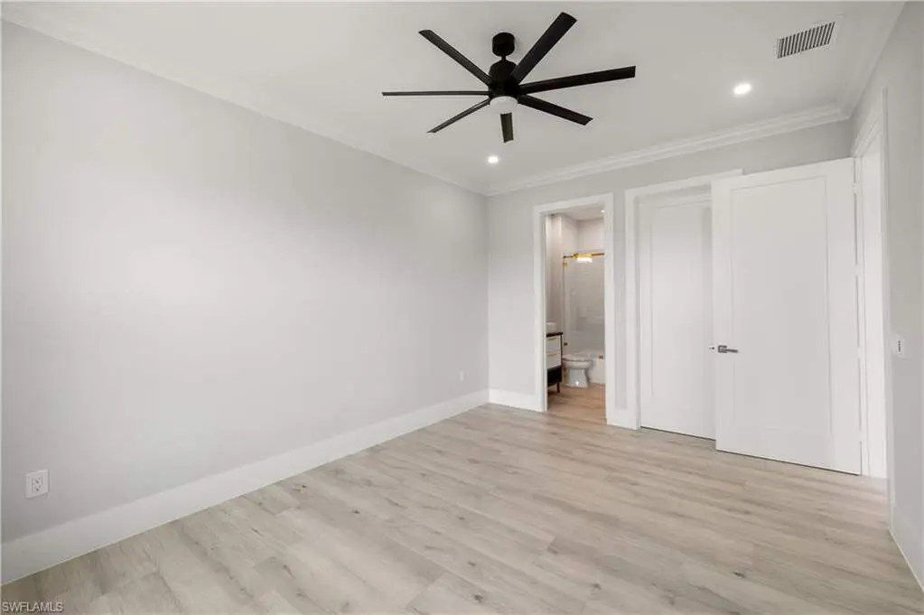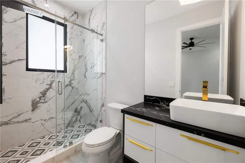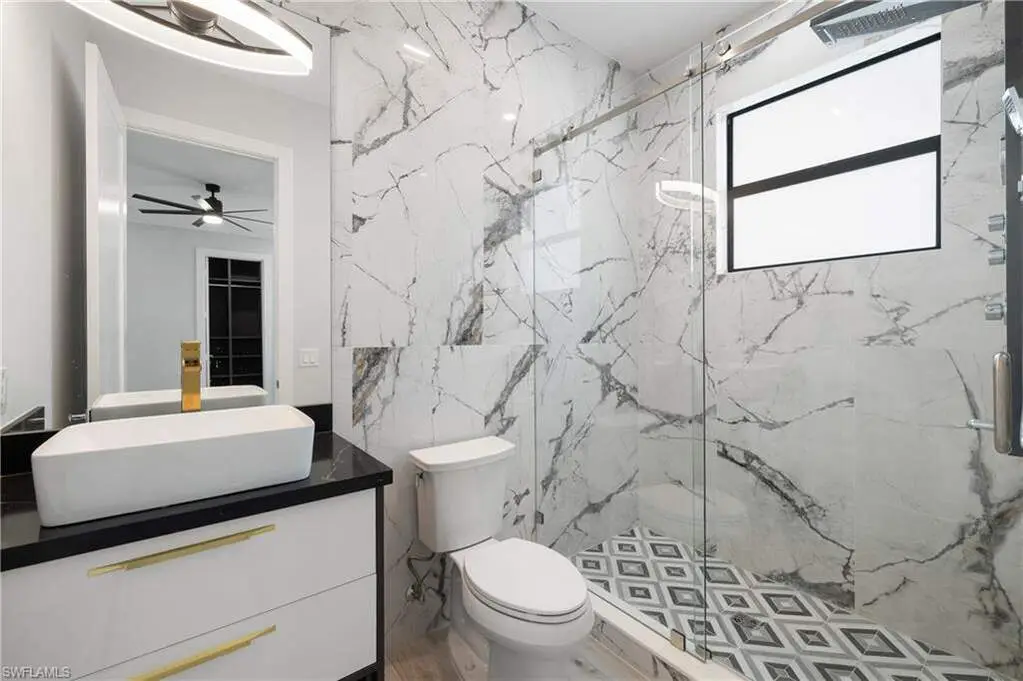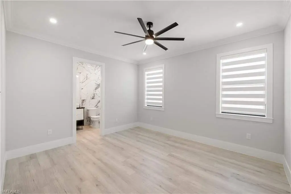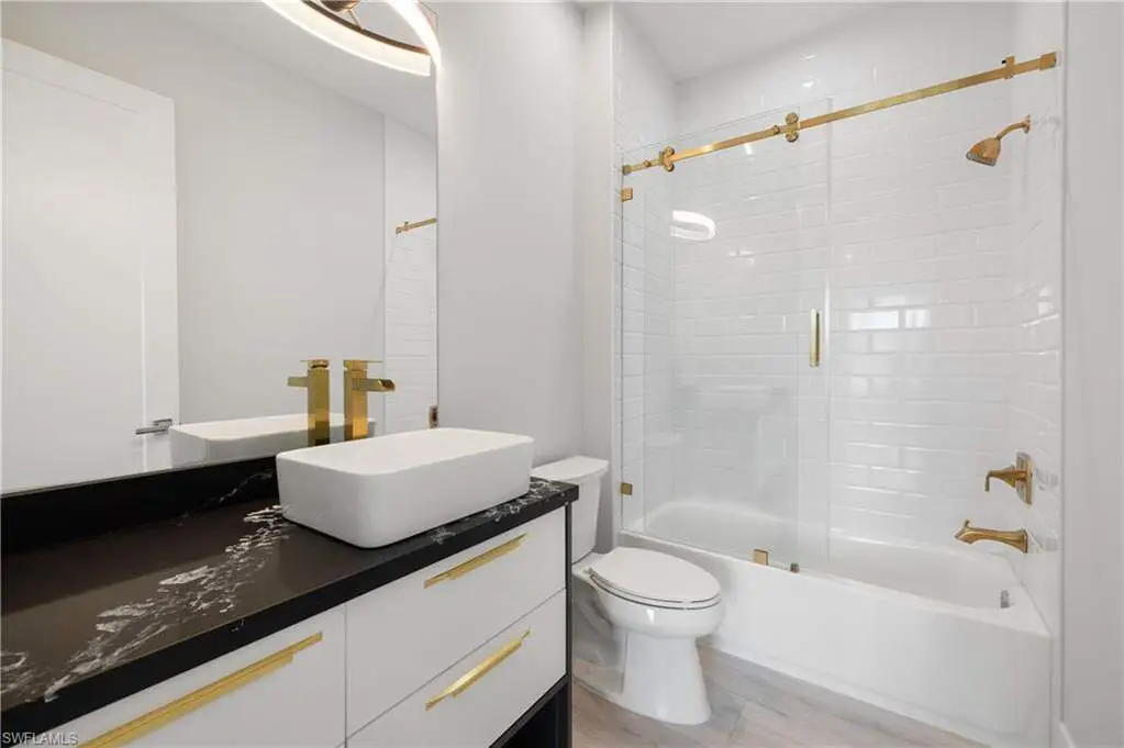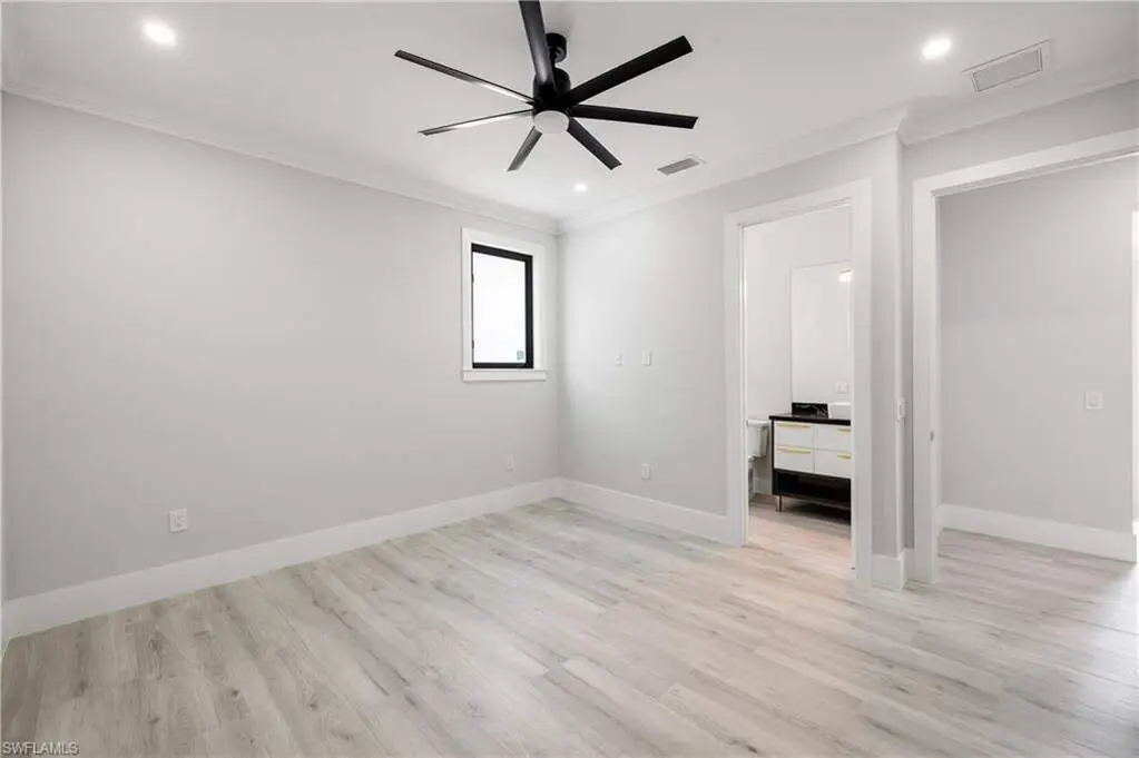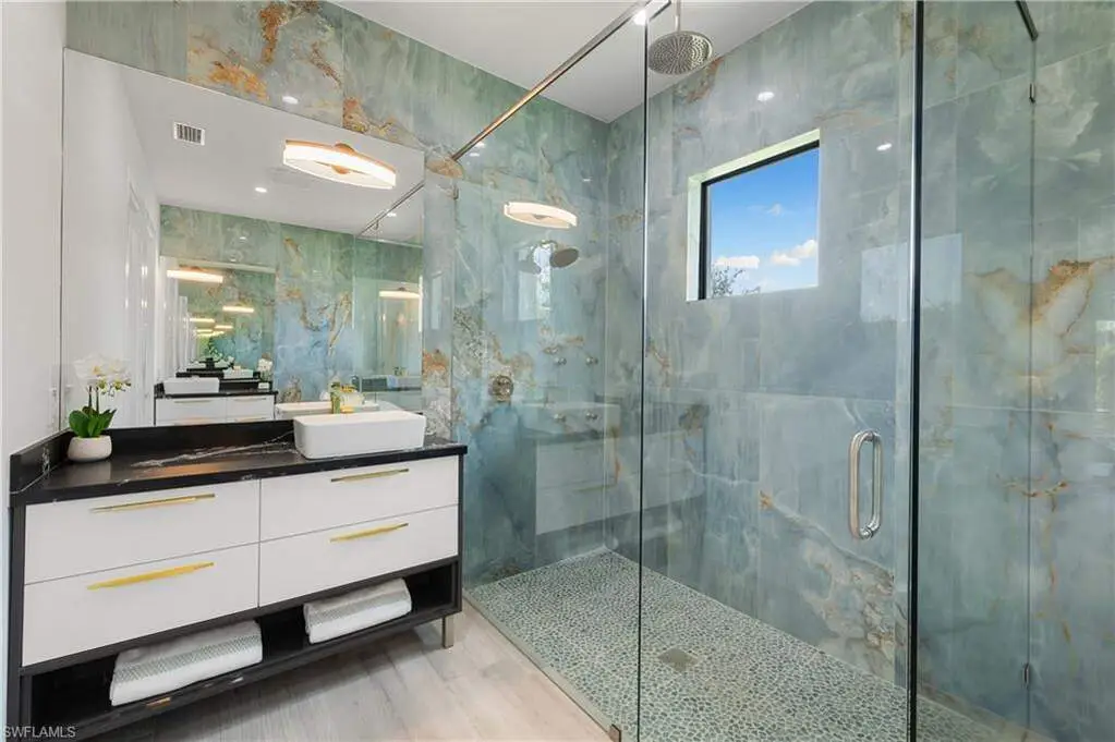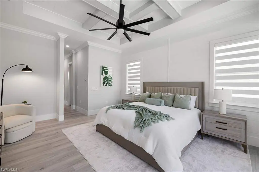 2025 NEW CONSTRUCTION, CONTEMPORARY ESTATE WITH 4 BEDS + DEN + BONUS LOFT AREA IN THE HIGHLY COVETED NEIGHBORHOOD OF LAKE PARK IN NAPLES! Perfectly located just 1 mile (4-minute drive or 7-minute bike ride) from both the pristine white sands of Naples Beach and the iconic 5th Avenue South, offering world-class dining, shopping, and entertainment right at your fingertips. This exceptional home is positioned with desirable Southwestern exposure for stunning sunsets and all-day sun over the pool area. Crafted for modern living, this residence features hurricane-impact windows and sliders throughout, a metal roof, and meticulous finishes. The open airy floor plan is enhanced by driftwood-style wide plank tile flooring and high coffered ceilings paired with tongue and groove wood paneling. Two sets of 9-foot impact sliding glass doors open seamlessly to the outdoor oasis, where a spacious saltwater pool with a tanning shelf, spa, and summer kitchen await, all surrounded by lush landscaping for ultimate privacy. The modern chef's kitchen features white quartz countertops, all Dacor appliances including gas range, and custom dual-toned cabinetry with rich wood grain and warm gold hardware. The primary suite is a private retreat, with French doors leading to the pool deck, a large walk-in closet with custom built-ins, and a spa-inspired bathroom boasting floor-to-ceiling marbled tile, a luxurious walk-in shower with six shower heads including rainfall, and a freestanding soaking tub. All guest bedrooms offer ensuite baths and walk-in closets, providing comfort and privacy for visitors, plus a second-story loft for their own private living space if desired. Located in an "A-rated" Collier County school district, and just minutes from Venetian Village, Waterside Shops, and Third Street South, this home delivers the best of luxury coastal living in one of Naples' most desirable neighborhoods.