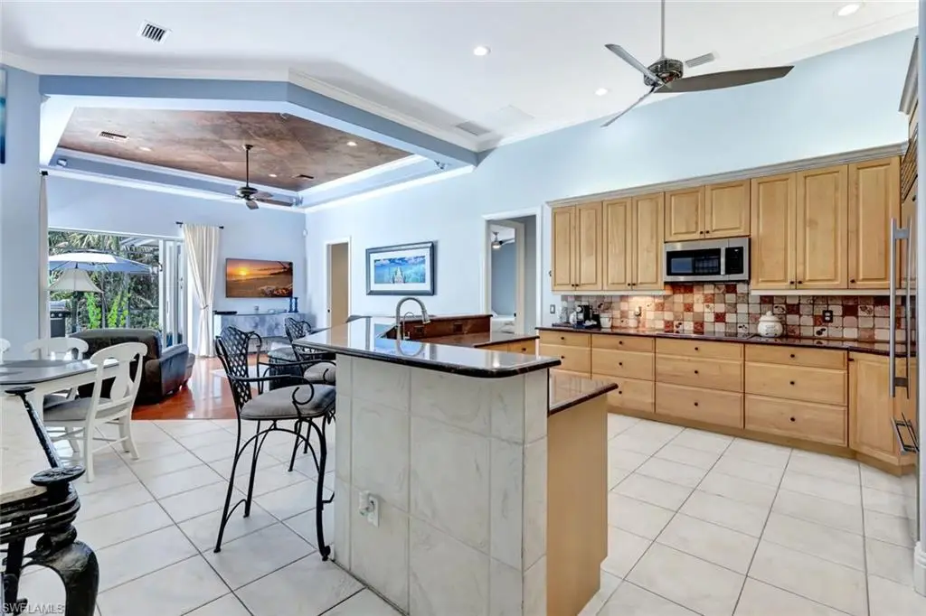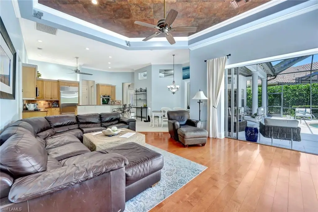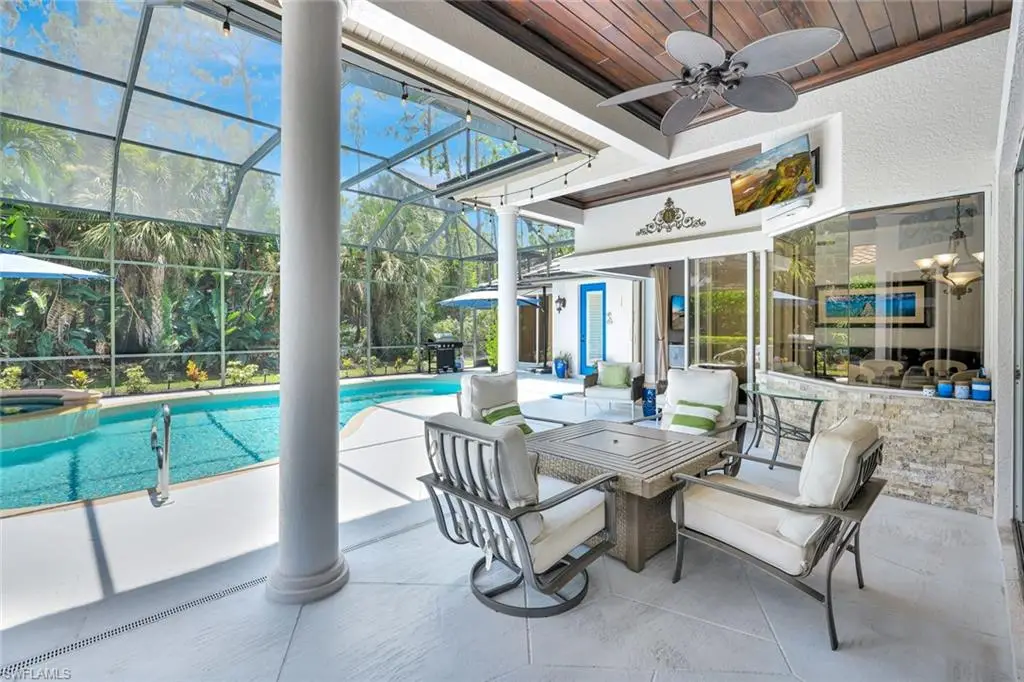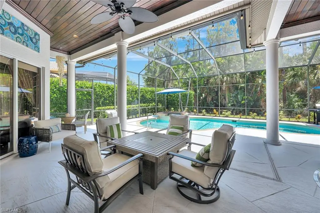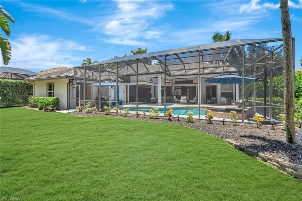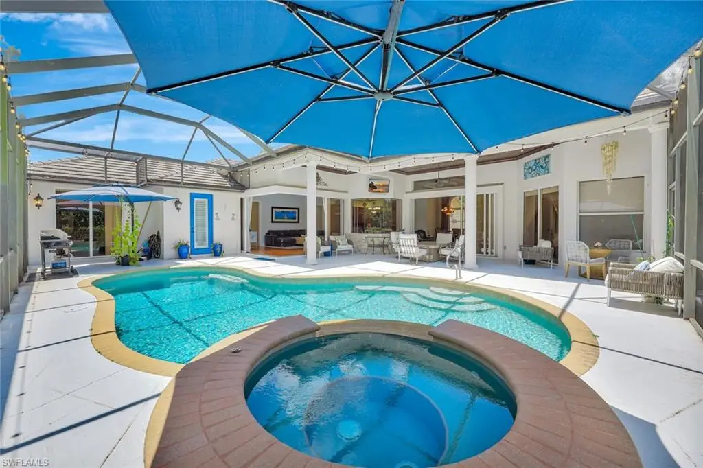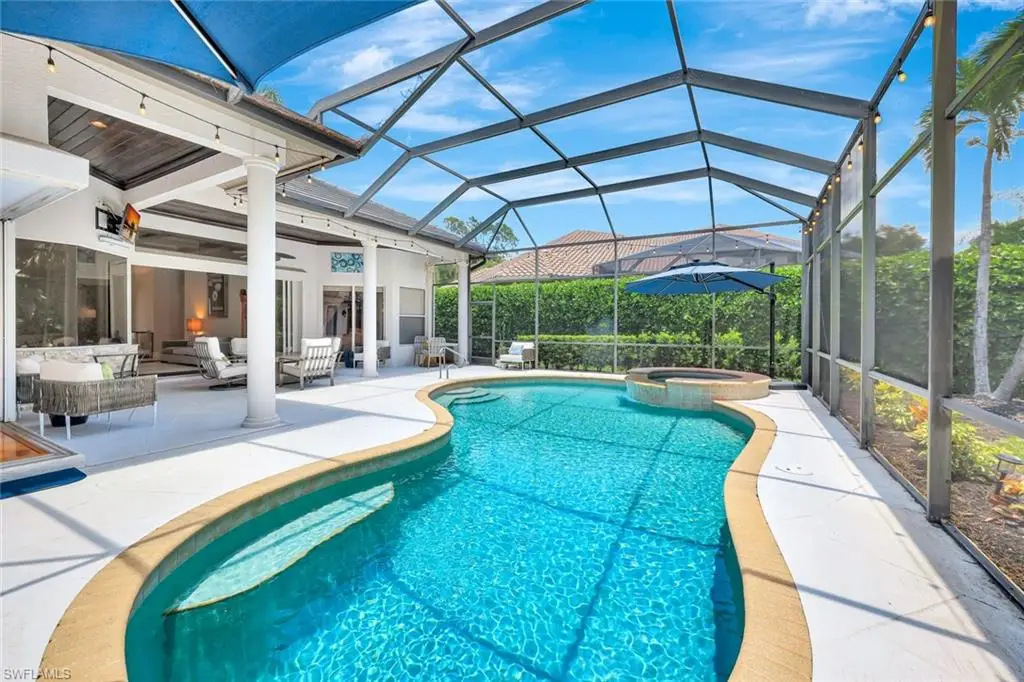 Spacious Elegance in Sought-After Wilshire Lakes Welcome to this beautifully appointed residence nestled in the desirable, gated community of Wilshire Lakes - just minutes from Naples' world-renowned beaches, upscale shopping, and premier dining. Boasting nearly 3,000 square feet of living space, this 5-bedroom, 3-bath home offers an open-concept floor plan that seamlessly blends comfort and functionality. Soaring ceilings and expansive sliding glass doors flood the interior with natural light and invite you to the covered lanai - complete with a sparkling pool and spa - perfect for relaxing or entertaining. The thoughtfully designed layout includes a convenient pool bath, ideal for effortless indoor-outdoor living. Set on a lush, private lot with a tranquil backyard, this home features a spacious three-car garage and a versatile split-bedroom design to suit any lifestyle. Enjoy the serenity of a quiet, tree-lined street while still being connected to everything that makes North Naples so special. A true bonus is the easy bike or walking access to North Collier Regional Park - offering a fitness center, sports fields, fitness classes, an exciting water park, and the beloved children's museum. This is your opportunity to experience the best of Southwest Florida living in a community known for its natural beauty, strong sense of neighborhood, and unbeatable location.