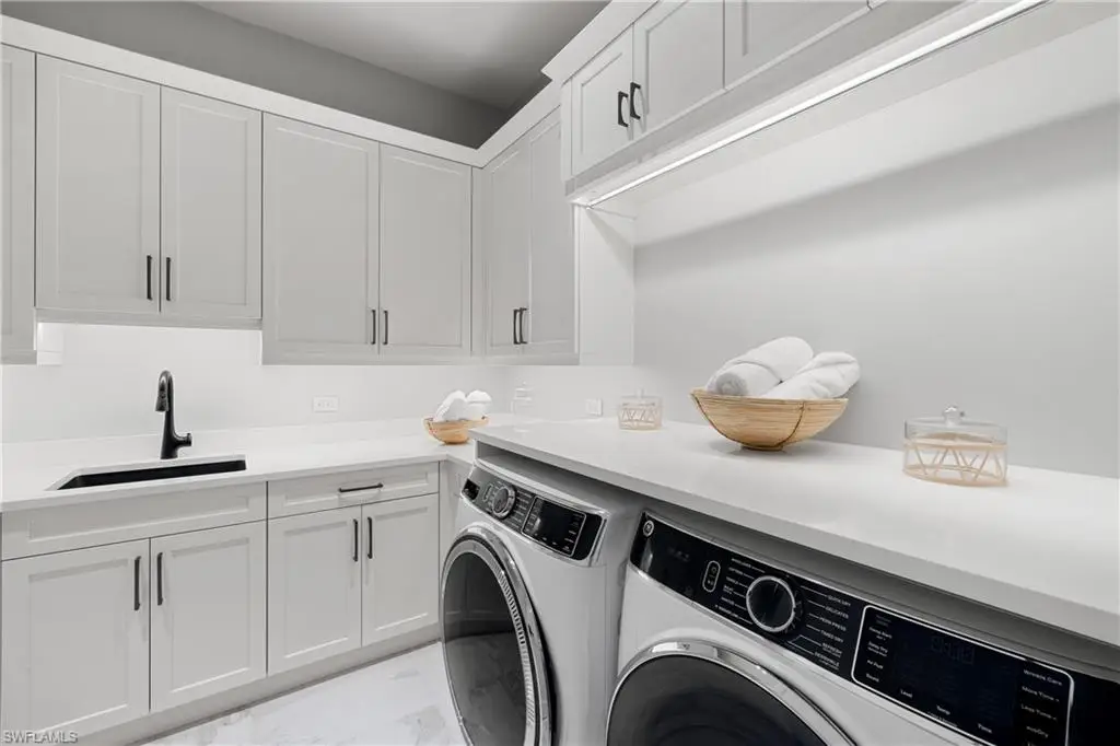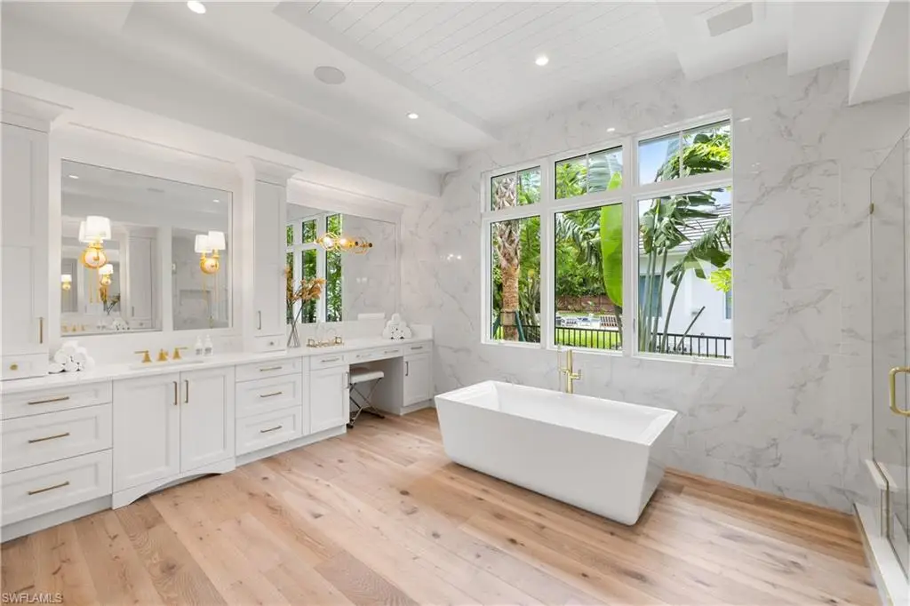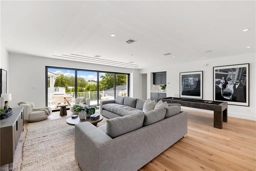 Newly constructed, never lived in and move-in ready, ideally situated on an oversized premium corner lot, this luxurious new-construction residence embodies the spirit of Naples living. Designed by MHK in collaboration with Waterside Builders and Diana Horsley Interiors, the spectacular light-filled six-bedroom + den home flows gracefully from one engaging space to another. Finished to the highest standard, the open floor plan with voluminous ceilings features multiple fireplaces, European oak floors, Ruben Sorhegui tile, quartz counters, elevator, and generator. Chef's kitchen offers Sub-Zero, Wolf and Miele appliances, large center island and generous butler's pantry with additional storage and appliances. A full wall of pocketing glass sliding doors leads to spacious outdoor covered living areas, including an outdoor lounge, dining area, summer kitchen, half bath, and heated pool and spa with western exposure. First-floor primary retreat includes substantial dual walk-in closets and a spa-like ensuite bath with separate water closets. Bonus room, wet bar, balcony, laundry and five additional en-suite bedrooms, including a cabana/VIP suite with private entry, provide comfortable accommodations for guests on the second level. In close proximity to 5th Avenue S, Third Street S and sugar sand beaches, this home represents a rare opportunity to enjoy the best Naples has to offer.