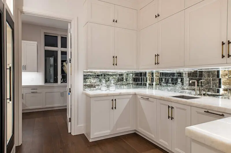 Wine room with antique mirror tile