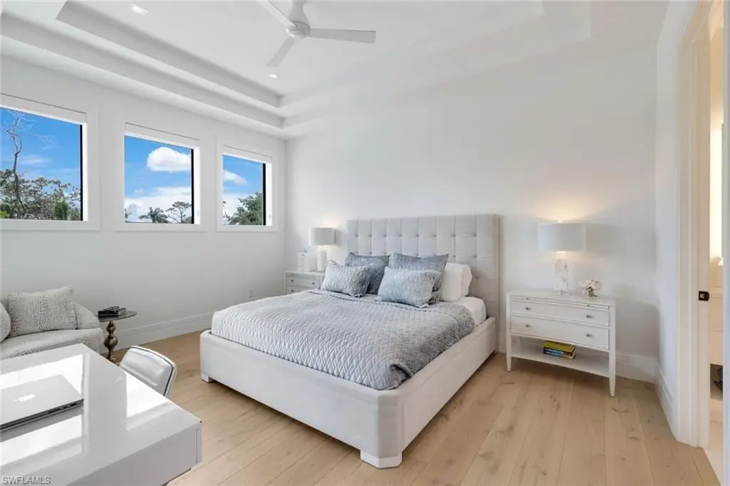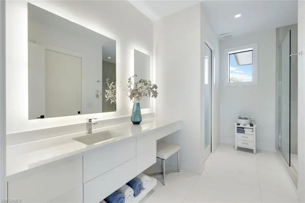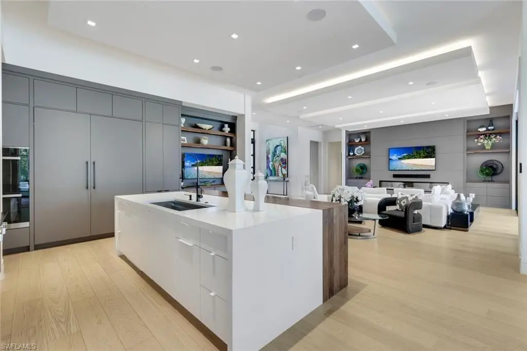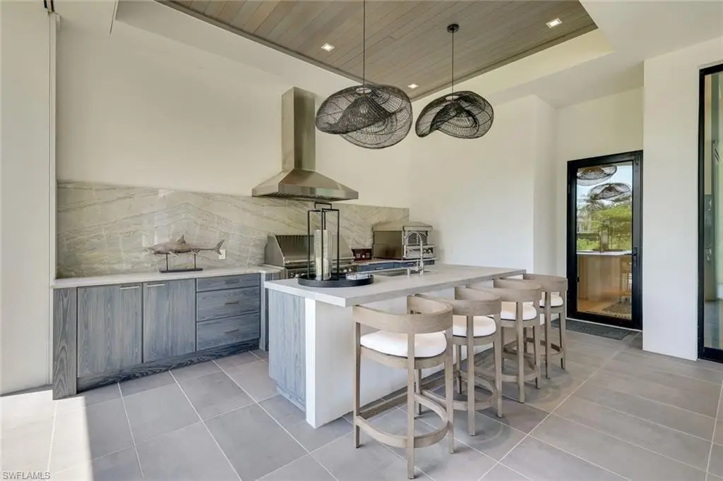 A showcase of modern elegance, this custom two-story residence was thoughtfully crafted with architectural excellence by Boyott Design. Nestled in prestigious Pine Ridge, the home embodies exceptional craftsmanship with premium finishes for a lifestyle of sophisticated comfort. All cabinetry and wood accents customized by Ruffino Cabinetry. Spectacular chef’s kitchen, accompanied by a chic full-service Butler’s pantry. Both offering upscale appliances by Miele, Thermador, Bosch and BlueStar. Well-appointed bar area with 184 bottle dual wine coolers. Additional office wet bar, plus guest station on the second floor. All bedrooms are ensuite with walk in closets. The elegant first floor primary bedroom is private with access to a spacious study, porte-cochere entry with welcome station, and his & her opulent closets. Expansive primary bathroom offers dual sides of amenities providing privacy, plus a digital Kohler Rain Shower/Body Spray System for personalization. First floor guest suite is equipped with a steam shower. A dramatic glass staircase leads to more open living/recreation space with theatre quality sound system. Large sliders open to a covered cedar ceiling balcony with beautiful scenic views of the grounds and pool. The second floor VIP Suite offers balcony access, vanity, walk-in closet and luxurious shower. The picturesque, main covered lanai areas include outdoor kitchen, bar, Alfresco grille and pizza oven, dining and two spacious outdoor living areas, linear fireplace which all may be enclosed under automated screens. Outdoor living areas give way to a sprawling heated saltwater pool with soothing scuppers of water flowing from a large linear firepit, sun shelf and spa. Property is elegantly landscaped with the bonus of mango, lime & lemon trees. The home is managed by a Control4 Home Automation System for lighting, security, music, window shades and audio/visual. Additional features include hurricane impact-resistant doors & windows by ES Windows. You'll enjoy superior protection and sound attenuation. Soaring 12-foot sliding doors seamlessly connect indoor and outdoor spaces, while wide plank wood flooring flows beautifully throughout main living areas. Specially designed drop celings to cover air vents. Enjoy the convenience of an elevator, a whole-home reverse osmosis water system, and a robust whole-home generator for uninterrupted power. Even the garage is a haven with full air-conditioning and custom storage solutions. For enhanced peace of mind, this property offers a comprehensive security solution including outdoor surveillance cameras, a fully fenced perimeter, and secure Viking entry gates. This beautiful Pine Ridge Estates property is close to beaches, fine dining, upscale shopping, and the renowned Artis—Naples. This one-of-a-kind estate offers luxury living at its finest.