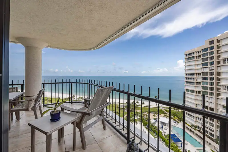 Welcome to this breathtaking Gulf-front residence, perched on the 17th floor of the prestigious Park Shore Tower. Walls of glass fill the space with natural light and frame panoramic views of the coastline. This expansive residence offers a bright, open layout designed for both elegant entertaining and everyday comfort. The kitchen boasts stunning views and is outfitted with granite countertops, stainless steel appliances, and elegant lighting fixtures. The spacious primary suite is a private oasis, featuring a spa-inspired bath wit tiled walk-in shower, soaking tub, bidet, and a customized walk-in closet. Step onto your private balcony to savor your morning coffee while taking in serene views and coastal breezes. The thoughtfully designed floor plan includes a guest suite with an en-suite bath and a third bedroom or office with a private bathroom, which can also function as a powder room for guests. At the end of the day, unwind on the south-facing lanai and watch the sun dip below the Gulf horizon-your front-row seat to spectacular sunsets. Additional highlights include under-building parking, storage, and access to a host of upscale amenities at Park Shore Tower: 24-hour security, a welcoming lobby, fitness center, and a newly updated pool area with a beachfront clubhouse. Just a short stroll away, enjoy the charm and energy of Venetian Village, with its sparkling lights, dining, and boutique shopping. Waterside Shops, Old Naples, and Mercato are also just minutes away. This exceptional residence blends timeless elegance with a relaxed, move-in-ready lifestyle-your perfect coastal sanctuary awaits.