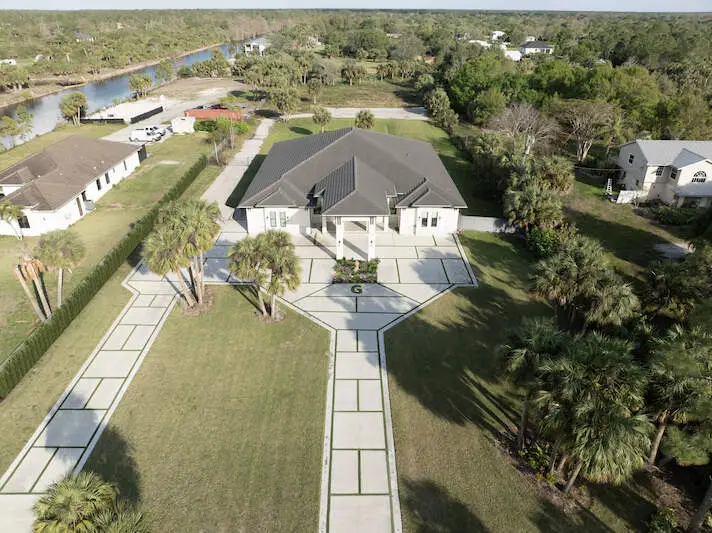 Some homes are built better than others. Experience the quality of construction in this almost 4,200 sq ft living area, 4 Bedroom, Den, 4.5 Bathroom home built in 2022. Situated on almost 2.3 acres, the entire envelope of the home is built with impact resistant doors and windows. Expansive ceilings give way to a Great Room floor plan and a massive open kitchen. Z line stainless steel appliances adorn classic white cabinetry covered with tasteful granite countertops. Entertain family and guests on the expansive, under-roof covered lanai section. The primary suite is extensive and includes a luxurious walk in closet with custom shelving and storage. You will not believe the size of primary bathroom shower complete with multiple shower heads, benches, tile and a stand alone soaking tub. Additional bedrooms include en-suite bathrooms, custom closets and continue the motif of the home. Last, there is a guest suite off the lanai separated from the home with dinette, kitchen and full bathroom. This home boasts a 3 car garage, extensive driveway and overflow parking ensures a number of guests and family can visit the home. This property is perfectly situated for a future swimming pool and spa as well as potential future landscaping and fencing for the ultimate privacy.