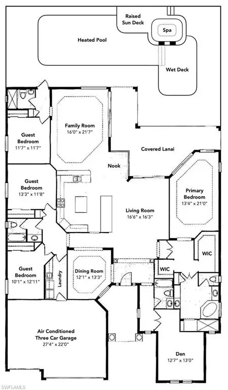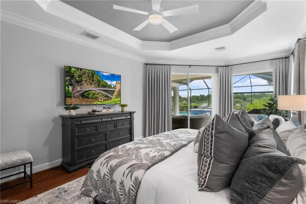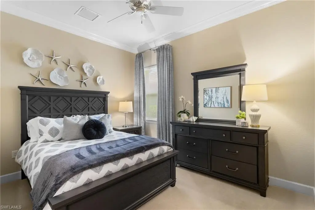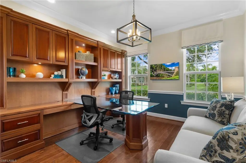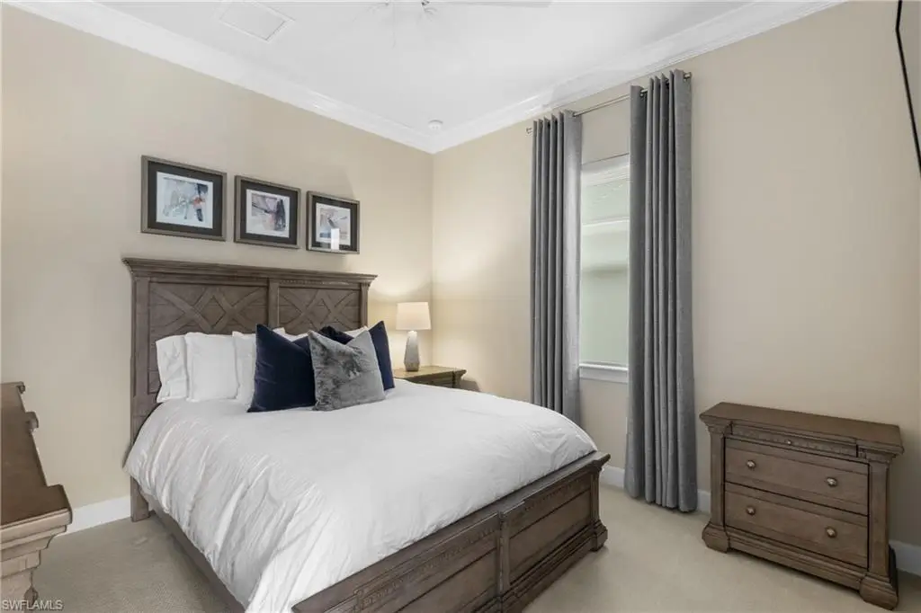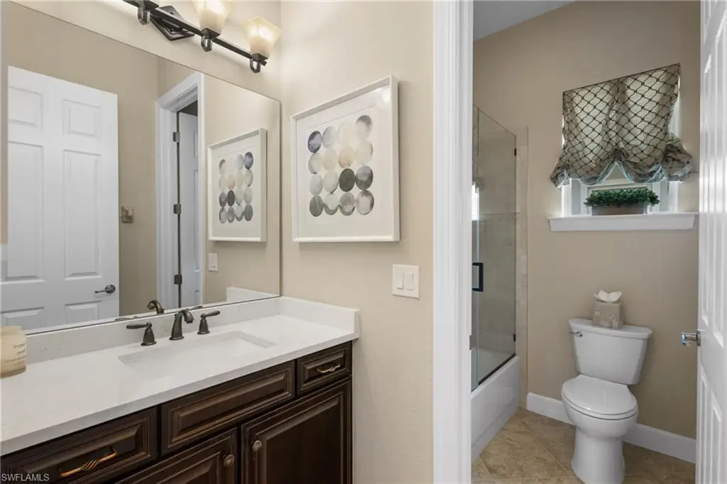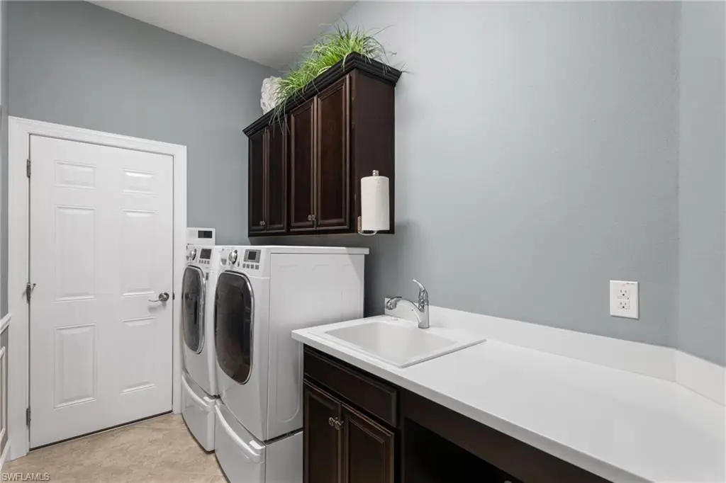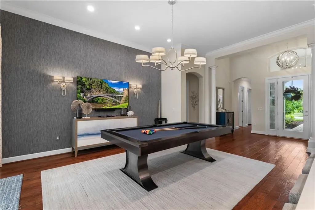 Live the Ultimate Vacation Lifestyle in The Quarry! This beautifully remodeled 4 Bedroom plus Den, 4 full bath, 3 car garage home is perfectly situated overlooking the 14th fairway with picturesque golf course, lake, and preserve views with no roof tops in sight! Custom features and professional design gives this home a model-like feel and is a true one of a kind. From the moment you walk in the door, you are greeted with a wide open Great Room style floorplan with two sliding glass doors to the lanai and spacious pool area. The spacious kitchen is the heart of the home with center island, two breakfast bars with seating for 8, updated quartz countertops, custom tile backsplash, double wall ovens, wine cooler, and two additional beverage coolers, making this the perfect kitchen for entertaining. The luxurious Primary Suite features a sliding glass door to the lanai, spacious closets with cabinetry, and bath boasting dual sinks, walk in shower, soaking tub, and custom wallpaper detail. Enjoy days around the heated pool/spa and al fresco dining on the lanai complete with travertine marble deck, raised sun deck, spa, and wet deck. Other fine appointments of this home include: wood floors throughout living room, dining room, den, and primary bedroom; custom window treatments throughout; custom wallpaper accents; special order chandeliers, lights, and fans; crown molding throughout; motorized roll down hurricane shutters on the lanai and front foyer; freshly painted interior; two brand new HVACs; air conditioned three car garage; and more! Furniture & decor package available! The Quarry is an exceptional lakefront community offering unparalleled amenities and a lifestyle like no other. Enjoy boating, golf, tennis, pickleball, bocce ball, a Tiki Bar, poolside food and drink service, a fully equipped gym, and a variety of social activities. The recently renovated and expanded "Lake Lodge & Beach Club" provides the perfect setting for relaxation, while over 500 acres of navigable lakes (with boat slips available for lease) offer endless opportunities for water enthusiasts. The private 18-hole golf club features optional golf and social memberships, providing an elite experience for golf lovers (full golf memberships available/no waitlist). Schedule your private showing today!