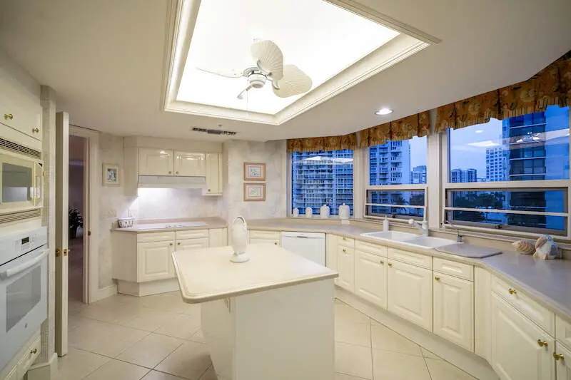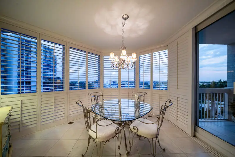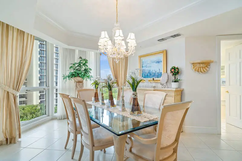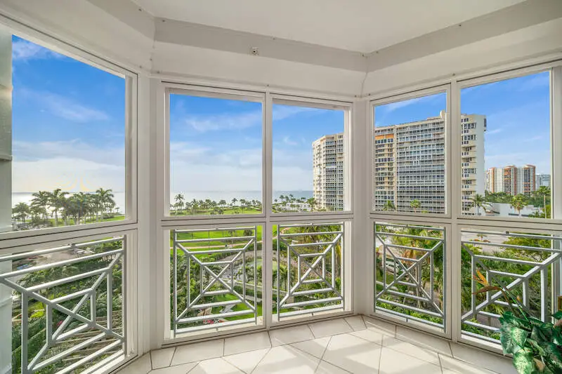 This thoughtfully designed open floor plan seamlessly integrates a spacious great room and den area, both providing unparalleled versatility for comfortable living. Attention to detail is evident throughout, showcased by custom drapery panels, plantation shutters, intricate millwork, and expansive sunrise and sunset terraces. The open concept great room and dining space are bathed in natural light, enhanced by floor-to-ceiling windows. The kitchen, a sunlit haven with ample countertops, features white cabinets and a breakfast room. The residence encompasses two generously sized guest suites, each boasting en-suite baths and walk-in closets. The owner's suite offers a retreat-like ambiance, opening to a screened lanai and framing captivating views of the Gulf of Mexico through expansive walls of windows. Positioned as an end unit, this condo affords 180-degree panoramic vistas of the gulf, park, and bay, creating a truly breathtaking living experience. Within minutes, enjoy the cultural offerings of Venetian Village, Waterside, Artis & Old Naples. Embrace the natural beauty of Park Shore with its parks & green spaces, creating a lifestyle that encompasses coastal living.