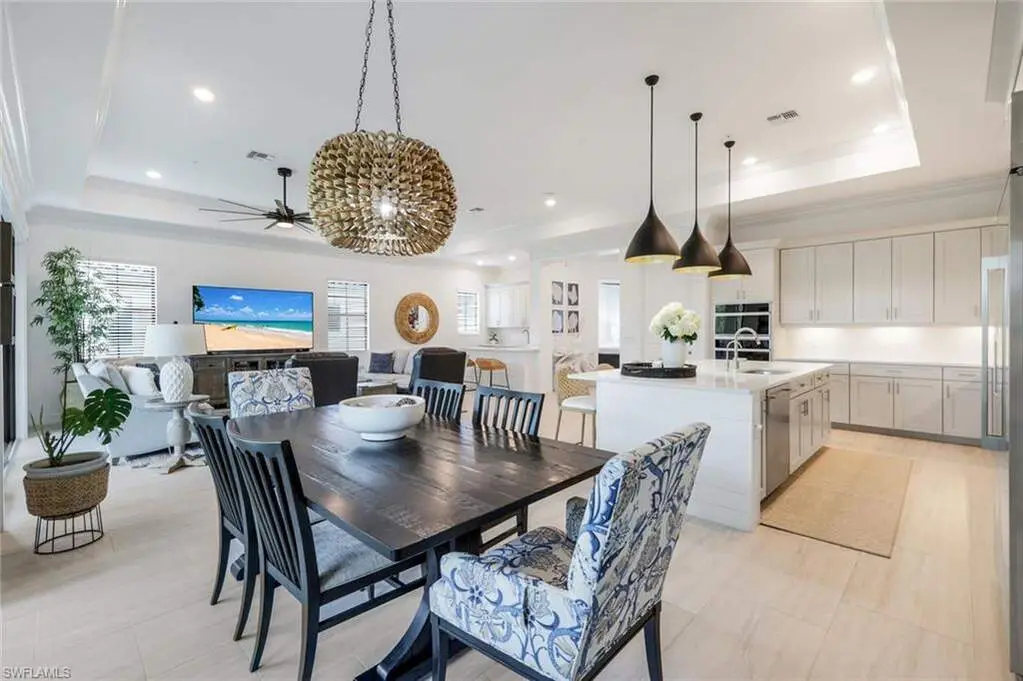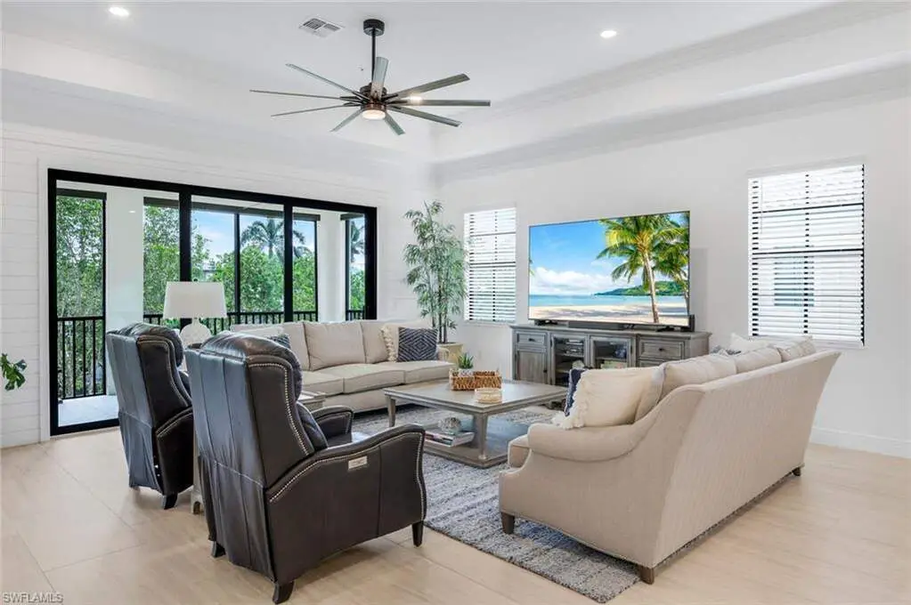 Your Naples Dream Home is ready- Turnkey Furnished Luxury in Naples' Most Exclusive Boating & Golf Community! Welcome to Regatta Landing, the newest and most sought-after enclave in Windstar on Naples Bay, where luxury living meets unmatched lifestyle perks. Built in 2021, this professionally decorated and turnkey furnished residence spans 3,403 square feet under air and 4,437 total square feet, offering an expansive layout with four Bedrooms, three Full Bathrooms, and multiple outdoor living spaces, including balconies and a spacious screened lanai with serene views. Step inside to discover soaring 14-foot ceilings and an elevated coastal design throughout. The open concept floor plan features a private elevator, gourmet kitchen with oversized island, Monogram appliance package, quartz countertops, walk-in pantry, coffee bar, wet bar, and wine cooler making it perfect for entertaining in effortless style. Elegant finishes like shiplap detailing add charm and warmth, while the oversized attached two-car garage, with extra storage area, and hurricane impact doors and windows provide both comfort and security.Beyond the residence lies a lifestyle that is truly unmatched. Windstar on Naples Bay is a guard-gated, private country club community offering a world of amenities: a Tom Fazio-designed 18-hole championship golf course, tennis, and a soon-to-be-completed state-of-the-art fitness center overlooking the water (2026). The bayside clubhouse offers fine dining with sweeping views, while a private boat shuttle whisks you away to Windstar's exclusive retreat on Keewaydin Island, where a pristine beach awaits. For boaters, Windstar boasts a private deepwater marina with 72 slips, private Marina Clubhouse and a full-time harbormaster. All of this is just five minutes from downtown Naples, where world-class dining, shopping, and beaches await, and right next to the Bayshore Arts District, one of the city's most vibrant neighborhoods. This is more than a home....it's a gateway to the ultimate Naples lifestyle.