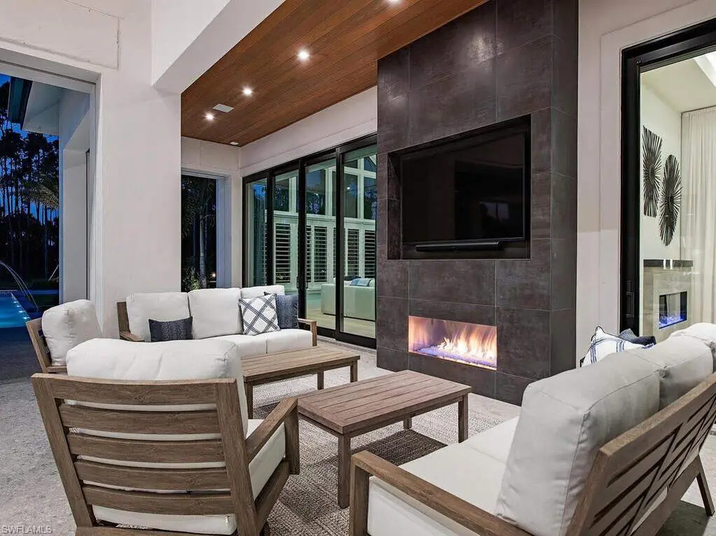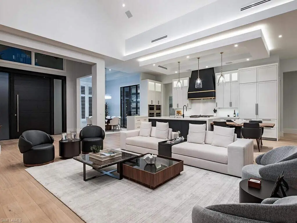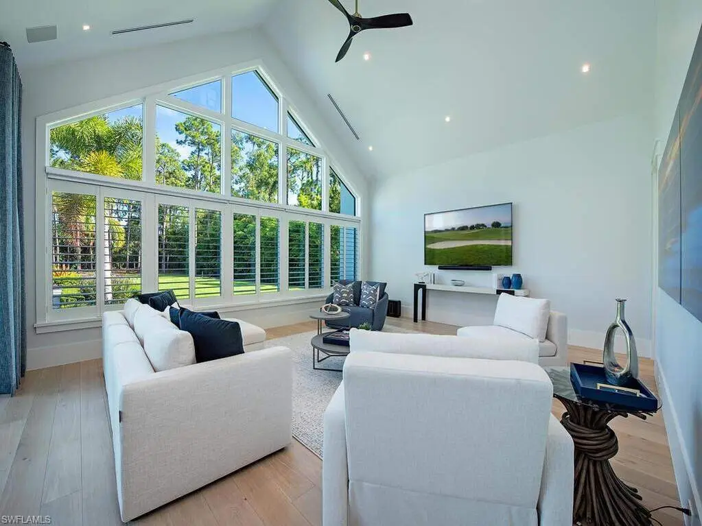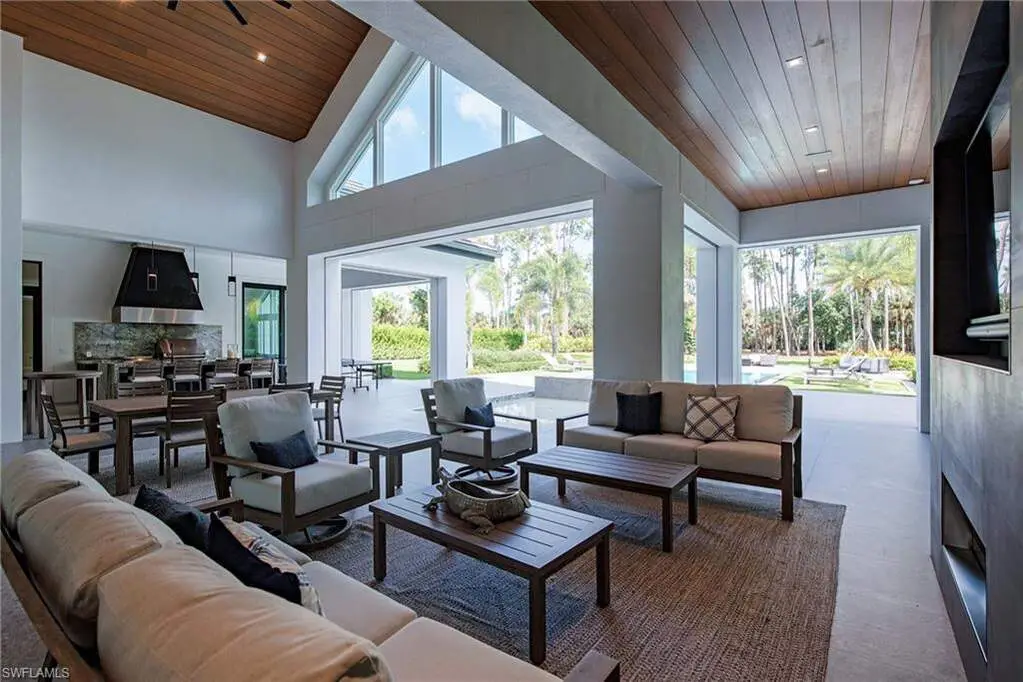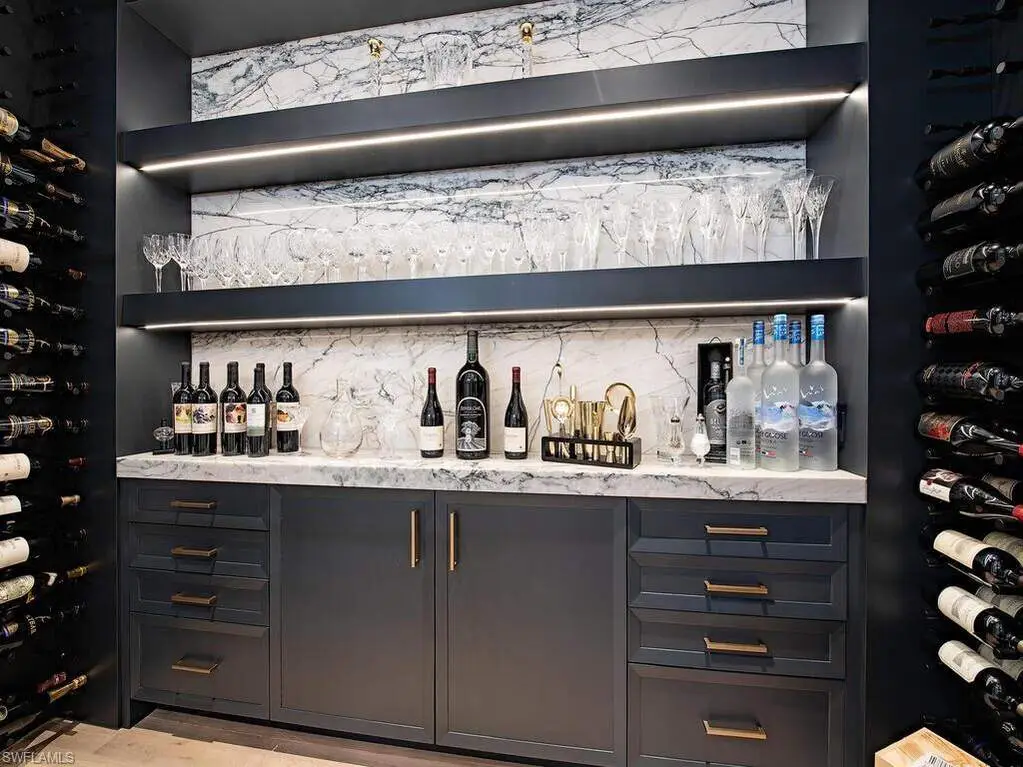 Welcome to Coach House Lane, a Gated residence celebrated for its luxury and privacy. This fully furnished 2023 estate sits on 2.58 acres of meticulously landscaped grounds with no HOA restrictions and offers over 7,200 sq. ft. of expansive single-level living. Designed for those who appreciate both comfort and sophistication, the home features a chef's kitchen with Wolf, Sub-Zero, and Miele appliances, a fully equipped prep kitchen/butler's pantry, bar and game room, dedicated media/entertainment room, private study, and a custom temperature-controlled walk-in wine room. The residence is enhanced by a Control4 Smart Home Automation system, providing seamless control of lighting, climate, entertainment, and security throughout. The sprawling backyard offers the ultimate retreat with a resort-style pool and spa, firepit, and a spacious lanai with fireplace and bar area-perfect for entertaining and relaxing. A professional lighted putting green with two hitting stations overlooks the pool, and there's ample room to add a tennis/pickleball court or guest house. Car enthusiasts will love the six-car, air-conditioned garage with soaring ceilings that can accommodate up to 12 vehicles, while the whole-house generator ensures uninterrupted comfort and convenience. The primary suite serves as a true sanctuary, offering a sitting area, morning bar, media room, spa-like bath, with a steam shower featuring integrated Bluetooth audio, and dual walk-in closets - including a luxurious dressing room with its own washer/dryer and steamer. Each en-suite guest bedroom provides a private, elegant retreat for family and friends. Surrounded by world-class golf courses including Royal Poinciana and Grey Oaks. Located just minutes from Naples Private Airport, 5th avenue, downtown Naples and World Renowned Beaches . This remarkable property perfectly combines modern technology, refined design, and resort-style living.