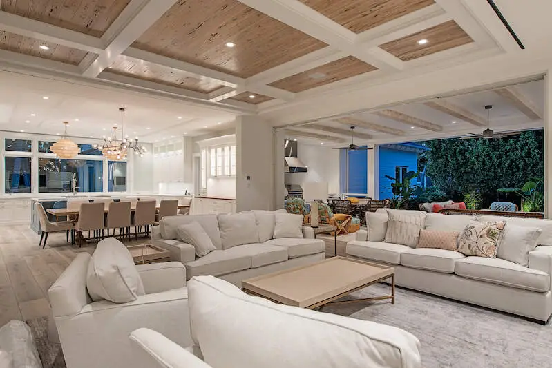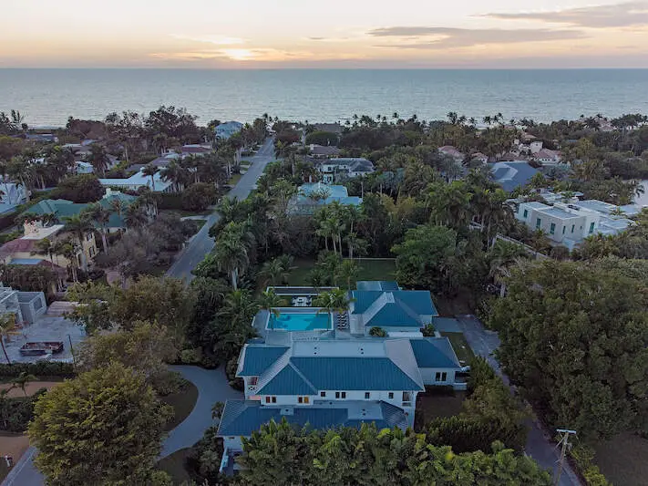 H7972 - Idyllic, private–and certainly no shortage of luxurious. This uniquely rare double-lot offering provides a true "estate like" setting, is nestled a mere four doors from the beach, and was designed by Kukk Architecture & Design while having been perfectly executed by The Williams Group. A main residence located on the eastern portion of the parcel contains 5 bedrooms, 5 full and 1 half bathroom, a loft with wet bar & 2 outdoor living areas. The gourmet kitchen offers numerous top-tier features including two-tone Ruffino custom cabinetry, quartz counters, a sprawling pantry, and Sub-Zero / Wolf appliances. The exterior living environs leave nothing to be desired and include a gas fire pit, sprawling wood deck, pool with sun shelf, bocce ball court, outdoor kitchen, and multiple uncovered/covered congregating spaces. Located off of the western portion of the parcel, a detached guest house offers 1 ensuite bedroom and fitness room. Additional features include Savant Smart Home Technology System, lift and slide doors, three sets of washer/dryers, 2 outdoor summer kitchens, 2 two-car climate-controlled garages off of the alley, wine room, full-house generator, and so much more.