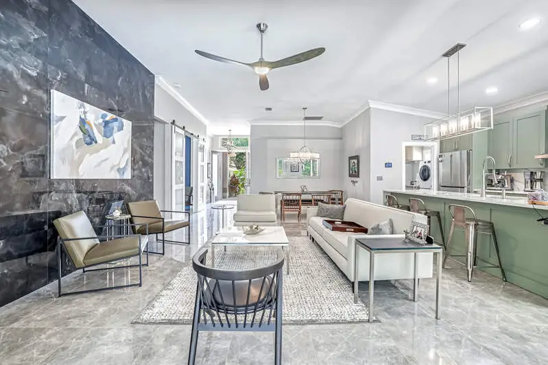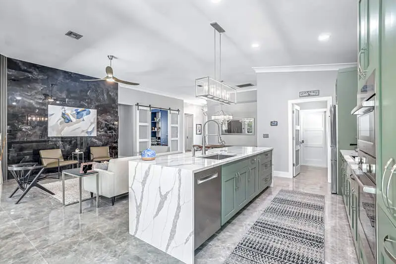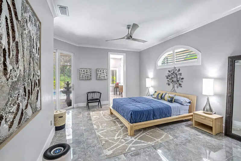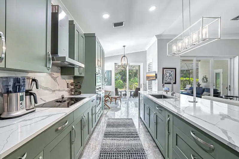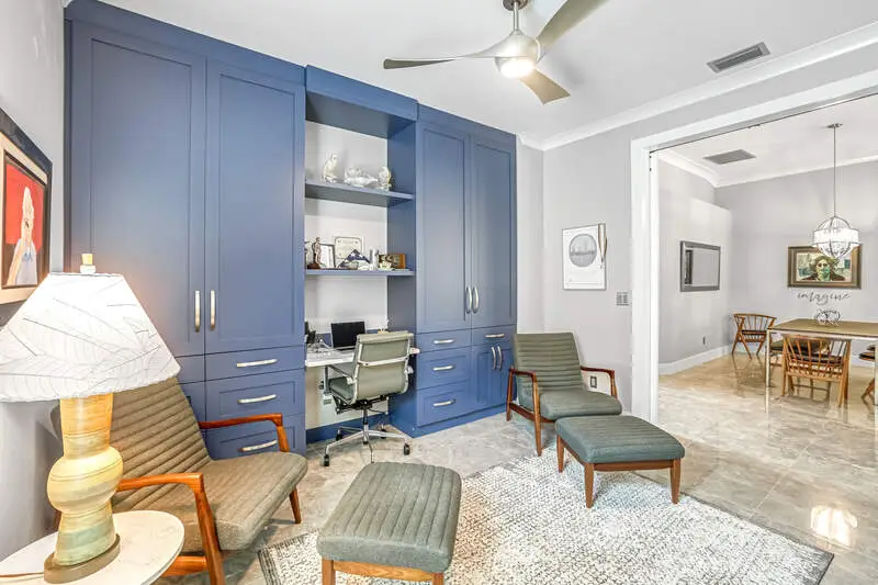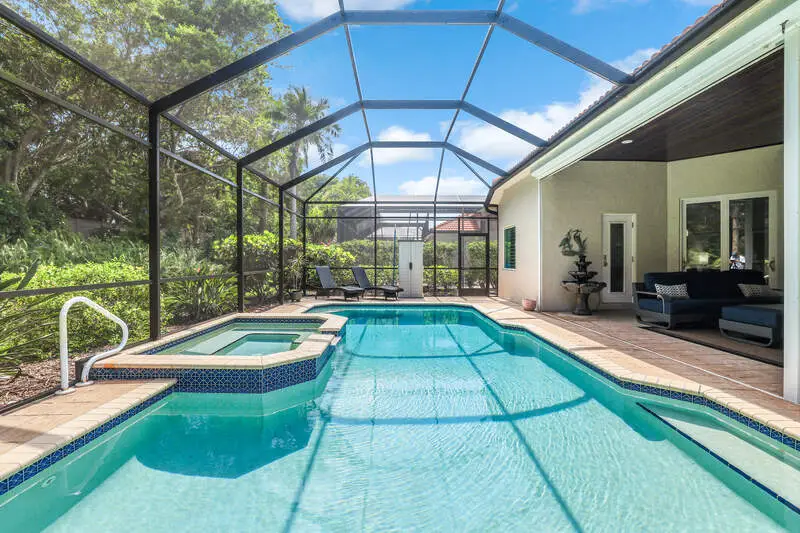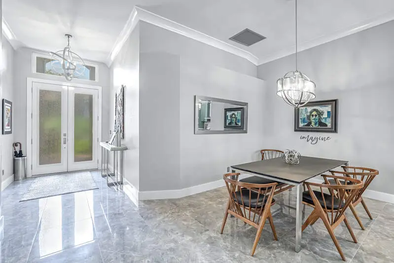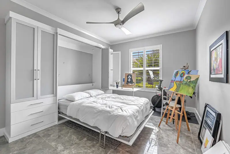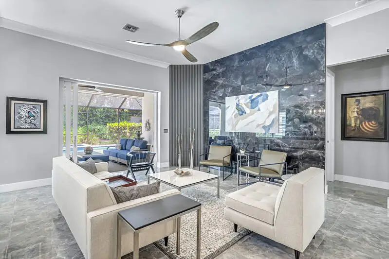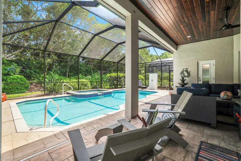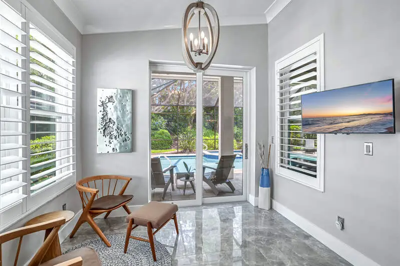 Move-In Ready Gem in Pelican Marsh - Stunning Renovation in Ventura! Don't miss this rare opportunity to own a beautifully renovated single-family home in Ventura at Pelican Marsh, one of Naples' most sought-after, amenity-rich communities. With limited single family home inventory in the neighborhood, this transformed residence is a true standout. Step inside to discover a spacious open-concept layout, filled with natural light and refined details throughout. Designer light fixtures, stylish fans, & wood three-panel shaker-style doors add a touch of sophistication. Doorways were raised to 96". The opening to the den can be closed off with glass sliding barn doors for privacy. Culinary enthusiasts will love the Bosch stainless-steel appliances in the sleek kitchen, complete with premium finishes and ample cabinetry. Every room features custom built-in organized storage systems, while the entire home is adorned with plantation shutters, premium crown molding, 6-inch baseboards, and large-format porcelain tile flooring for a consistent, upscale feel. Additionally, there is an accent wall of darker porcelain tile. The 2nd bedroom serves as a multipurpose room and is enhanced with a Queen-sized Murphy bed with reading lights, pocketing desk and nightstand. The primary suite is a private sanctuary with direct access to the lanai. Indulge in the spa-like bathroom featuring an Italian, floating vanity, backlit mirror, and frameless glass shower. Enjoy peace of mind with impact windows, double-pane sliding doors, and electric storm protection on the lanai. Fresh interior paint, elegant finishes, and energy-efficient upgrades make this home truly move-in ready. The A/C & tile roof were replaced in 2021. Step outside to your tropical retreat, complete with a heated pool and spillover spa, lush landscaping, and a covered lanai with casual seating and a serene freestanding fountain. The 2-car garage offers plenty of storage with a finished epoxy floor, free-standing cabinet, and overhead racks. Ventura is a pet-friendly, meticulously maintained enclave within Pelican Marsh, where residents enjoy socializing at the Courtside restaurant and bar, adjacent to tennis, pickleball & bocce courts and a state-of-the-art fitness center. which is well-attended with trainers and a social director. Live the active lifestyle you've dreamed of, close to the beach. This is truly an exceptional home and is ready for you.