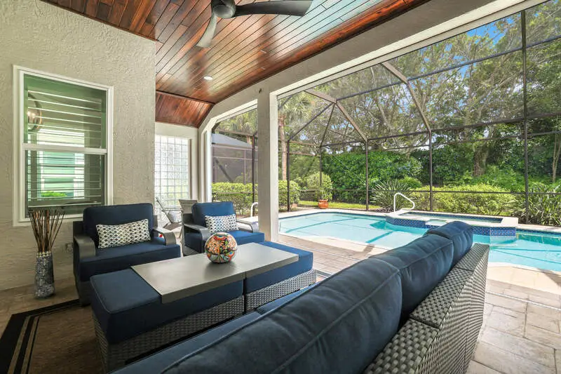 Covered lanai with freestanding fountain