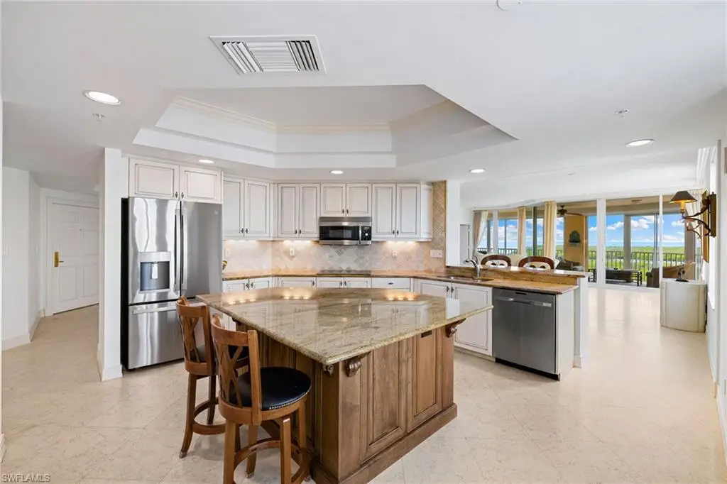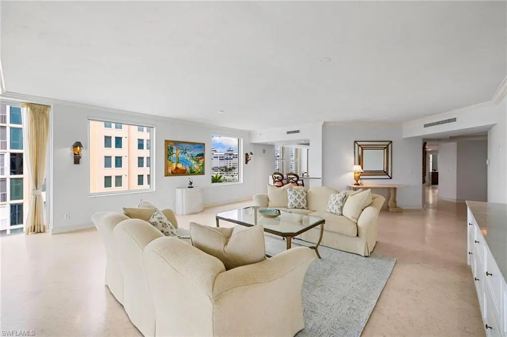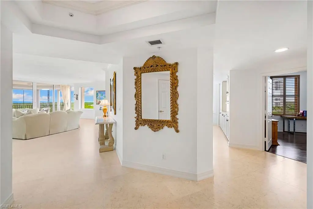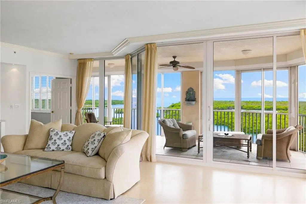 A premier end-unit overlooking the Gulf, this west-facing residence offers nearly 3,000 square feet of beautifully refreshed living space where coastal elegance meets effortless comfort. Recently painted throughout and thoughtfully updated to mirror the serene beauty of its surroundings, every detail complements the sweeping water and sunset views that define life here. Expansive walls of glass draw your eye to the horizon, where boats drift toward the Gulf and the evening sky fills the home with soft, golden light. The open great-room design flows seamlessly into the dining and kitchen areas, creating an ideal setting for both entertaining and relaxation. The primary suite serves as a private sanctuary, framed by panoramic Gulf and bay views with direct access to the lanai for morning coffee or quiet evenings overlooking the water. A private den and two en suite guest rooms provide exceptional comfort for family and guests. Beyond the residence, the community has undergone a stunning transformation, including redesigned lobby spaces, modernized elevators and hallways, and the peace of mind that comes with exceptionally healthy reserves. For those seeking to elevate their coastal lifestyle, optional membership to the award-winning Pelican Isle Yacht Club offers access to a world of refined leisure, including a private beach shuttle, kayaks, paddleboards, tennis, pickleball, fitness, fine dining, social events, and a state-of-the-art marina. This is Naples waterfront living at its finestùtimeless, tranquil, and beautifully renewed.