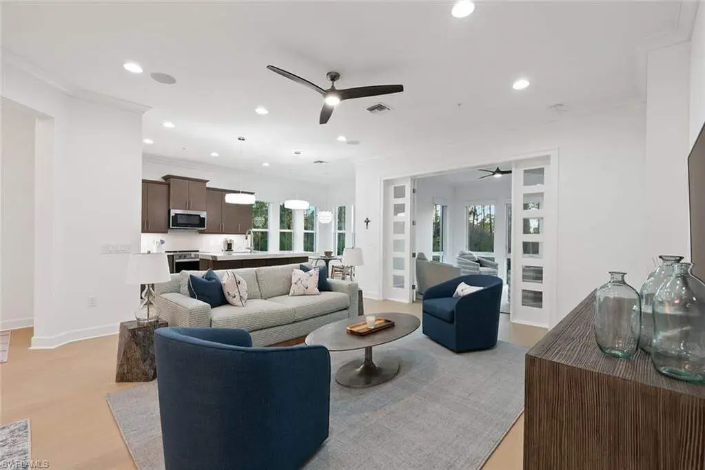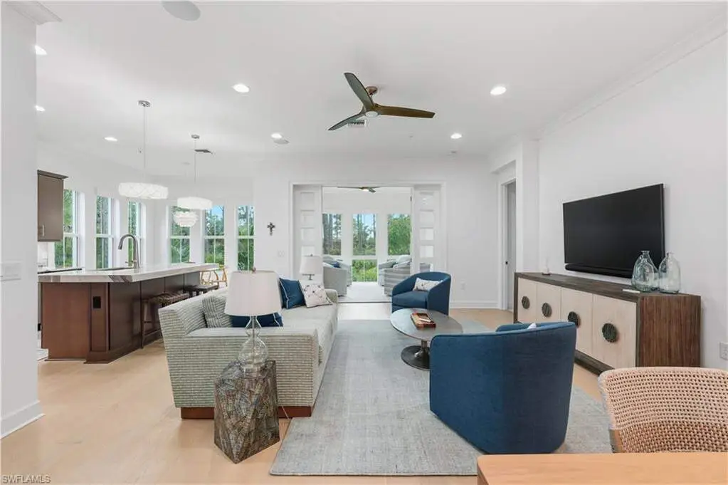 Proud to present this wonderful end-unit first floor coach home, positioned on a quiet cul-de-sac, surrounded by natural beauty outside, with abundant natural light throughout inside, perfectly situated on an oversized, end lot. Embraced by luxury this beautiful home is being offered turnkey furnished, featuring open-concept living with upgrades galore, 3 bedrooms, 3 bathrooms, Den, French doors onto a beautiful Sunroom and oversized 2 car garage. Tasteful window treatments adorn every room. The primary suite is a precious retreat with generous bathroom and large walk-in closets. Enjoy relaxing with family and entertaining friends at spacious island counter in the well equipped kitchen with soft close cabinetry, quartz countertops, and kitchen pantry. The Isles of Collier Preserve captures the timeless architecture and traditions of Old Naples. Over half of the 2,400 acres are lakes, nature preserves and natural habitat. A popular destination for snowbirds, the Isles allows 3 leases per year with a 30-day minimum. The sought after community of The Isles offers incredible amenities; fabulous Florida Clubhouse inspired by The Grand Floridian, fitness and wellness center, resort-style swimming pool, lap pool, tennis, pickleball & bocce ball courts, boat house & kayak launch, 8 miles of kayak, biking and hiking trails along the tranquil Cypress Waterway, Catch and Release fishing and the wonderful Overlook Bar & Grill! Enjoy life in Naples - moments from the Bayshore Arts District, plenty of restaurants, boating options, Bayview Park and next to the US Open Pickleball Championship courts! 4 miles to downtown Naples, sugary sand beaches, and an abundance of shopping and dining!
