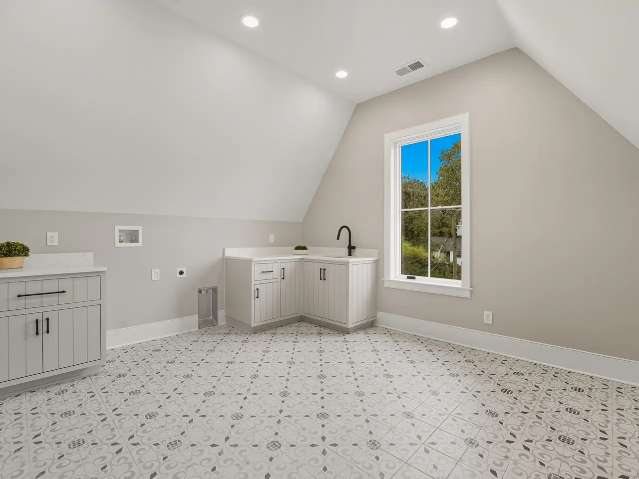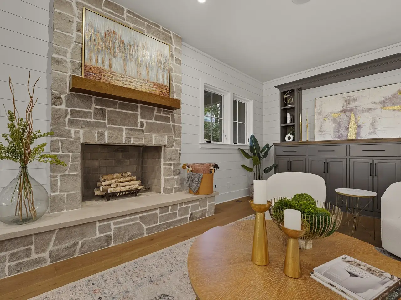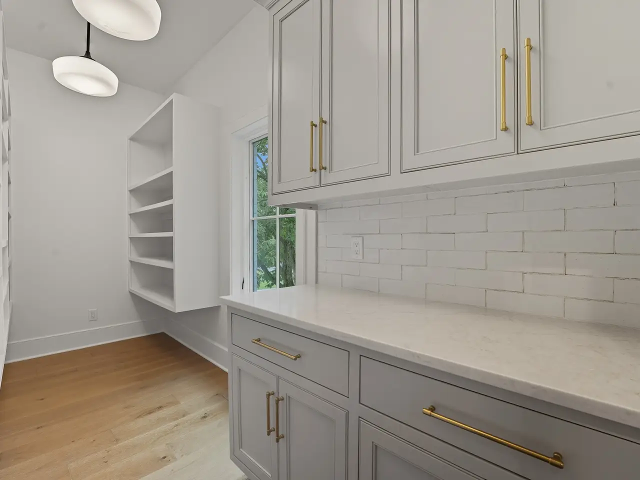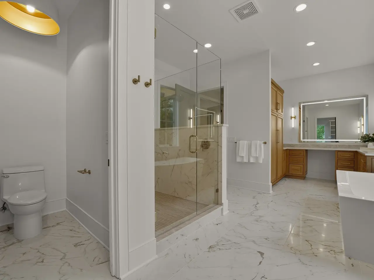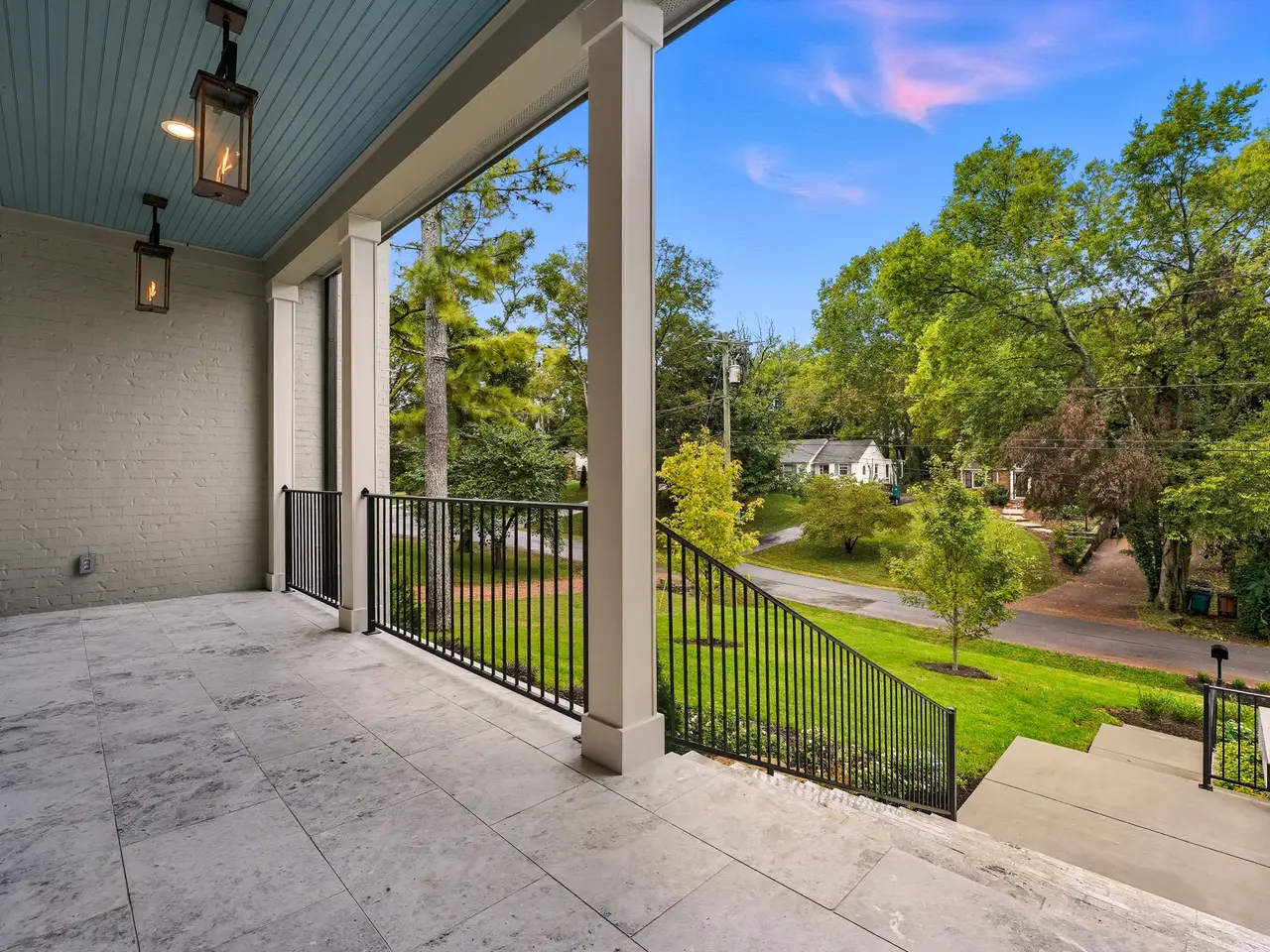 Every inch of this remarkable home reflects a deep commitment to quality, craftsmanship & timeless design. Built on a steel-reinforced poured concrete foundation w/brick construction, this residence combines unwavering strength w/exquisite architectural details. Classic bead board ceilings on front & back porches along w/Coppersmith gas lanterns set the tone for a home that's as beautiful as it is enduring. Upon entering, you are greeted by the soothing sounds of your personal Sonos amp system w/18 ceiling speakers & individual fader controls smartly placed throughout common living areas. Kitchen is a chef's dream w/Calacatta Miraggio Cove Quartz countertops, 48" Wolf gas range w/double ovens, Sub-Zero refrigerator &freezer columns, Bosch Benchmark dishwasher & Scotsman nugget ice machine. A large walk-in pantry w/ prep space completes the culinary experience. Great room centers on a dramatic wood-burning stone fireplace complemented by a custom TV console w/shelving & white oak accents. Separate spacious dining room is complete w/bar area serving as both a visual centerpiece & an entertainer's dream. It features black honed countertops, custom built-ins for glass & bottle storage, wine frig & ice maker & brass rail/glass shelving set against antiqued smoked mirrors. Inviting Primary suite is a retreat to behold w/a vaulted wood plank ceiling, Taj Mahal quartz surfaces, Brizo Litze luxe gold fixtures, double vanities & a graciously-sized soaking tub. Walk-in closet offers an expansive 20-drawer center island & specialty shelving like angled shoe racks. Main-level laundry offers extensive cabinetry w/over 160 cubic feet of storage--ideal for linens, luggage, and seasonal needs. Upper floor boasts a central gathering room from which 4 bedrooms rest, each w/ their own private bathrooms & walk-in closets. Another full laundry room is found here w/front-facing window that allows sunlight to wash across the patterned floor tile.