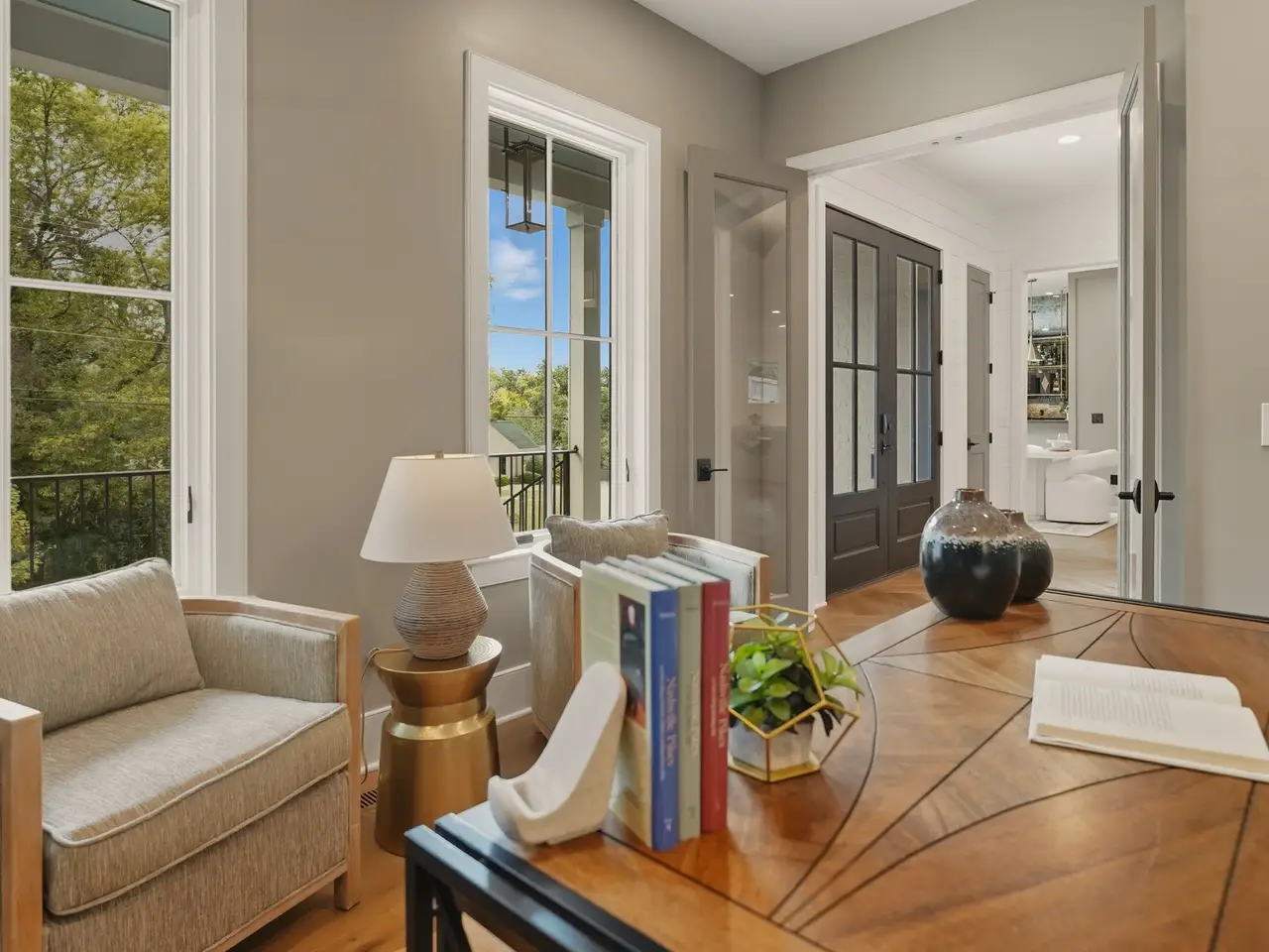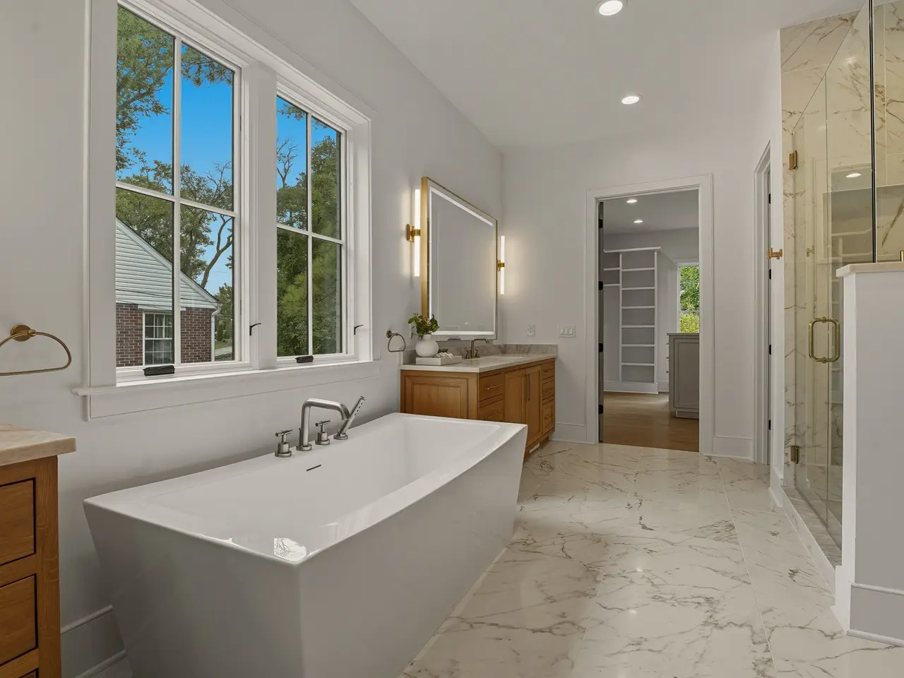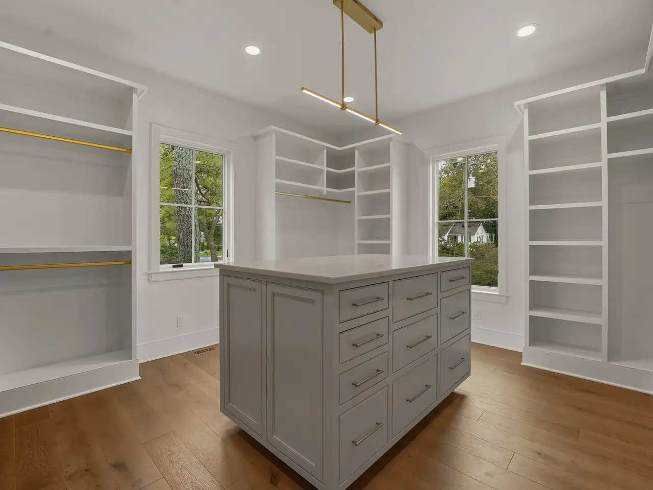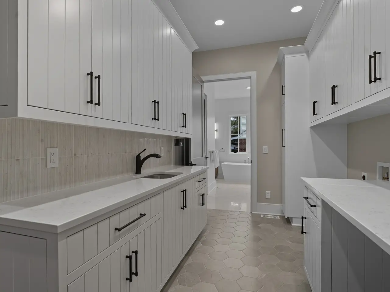 Every inch of this remarkable home reflects a deep commitment to quality, craftsmanship & timeless design. Built on a steel-reinforced poured concrete foundation w/brick construction, this residence combines unwavering strength w/exquisite architectural details. Classic bead board ceilings on front & back porches along w/Coppersmith gas lanterns set the tone for a home that's as beautiful as it is enduring. Upon entering, you are greeted by the soothing sounds of your personal Sonos amp system w/18 ceiling speakers & individual fader controls smartly placed throughout common living areas. Kitchen is a chef's dream w/Calacatta Miraggio Cove Quartz countertops, 48" Wolf gas range w/double ovens, Sub-Zero refrigerator &freezer columns, Bosch Benchmark dishwasher & Scotsman nugget ice machine. A large walk-in pantry w/ prep space completes the culinary experience. Great room centers on a dramatic wood-burning stone fireplace complemented by a custom TV console w/shelving & white oak accents. Separate spacious dining room is complete w/bar area serving as both a visual centerpiece & an entertainer's dream. It features black honed countertops, custom built-ins for glass & bottle storage, wine frig & ice maker & brass rail/glass shelving set against antiqued smoked mirrors. Inviting Primary suite is a retreat to behold w/a vaulted wood plank ceiling, Taj Mahal quartz surfaces, Brizo Litze luxe gold fixtures, double vanities & a graciously-sized soaking tub. Walk-in closet offers an expansive 20-drawer center island & specialty shelving like angled shoe racks. Main-level laundry offers extensive cabinetry w/over 160 cubic feet of storage--ideal for linens, luggage, and seasonal needs. Upper floor boasts a central gathering room from which 4 bedrooms rest, each w/ their own private bathrooms & walk-in closets. Another full laundry room is found here w/front-facing window that allows sunlight to wash across the patterned floor tile.