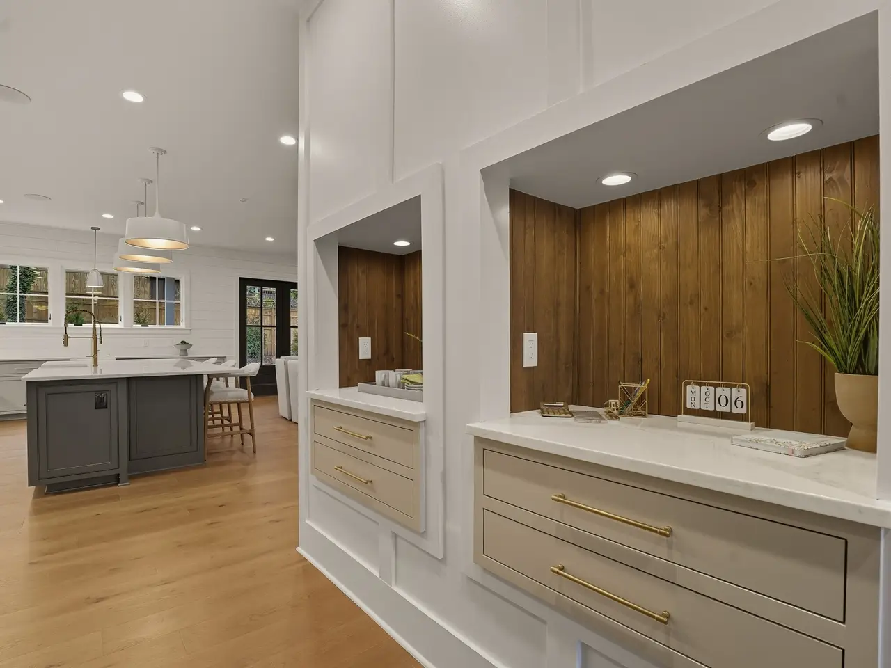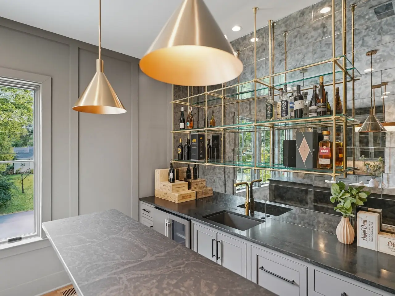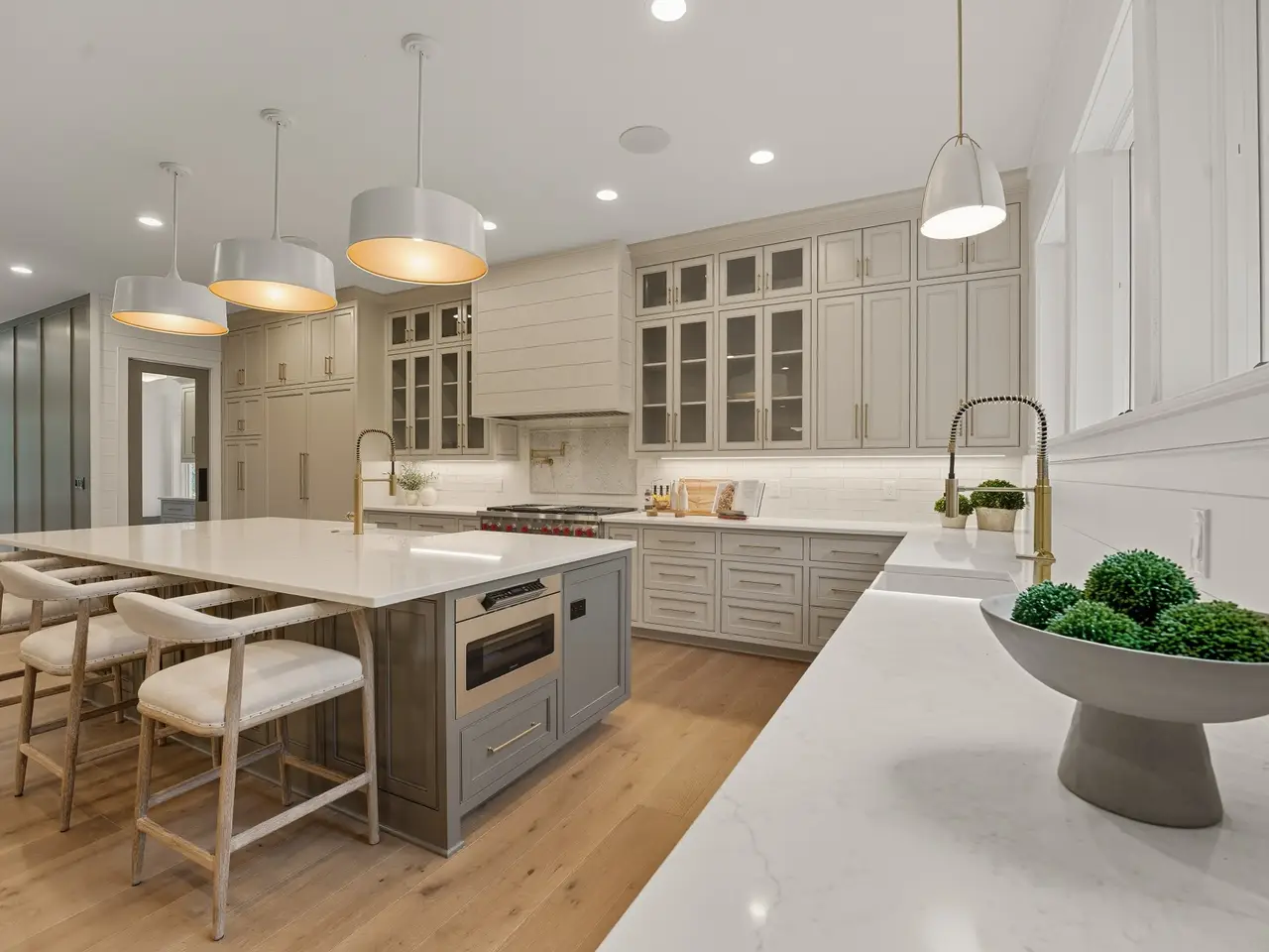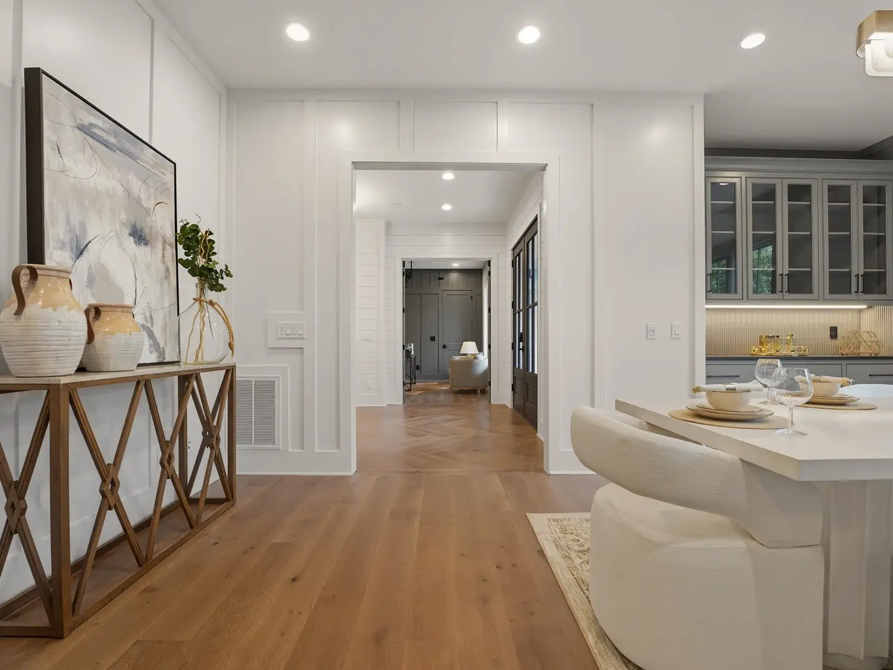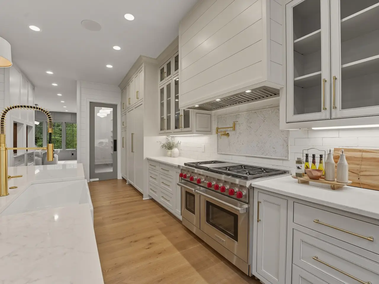 Every inch of this remarkable home reflects a deep commitment to quality, craftsmanship & timeless design. Built on a steel-reinforced poured concrete foundation w/brick construction, this residence combines unwavering strength w/exquisite architectural details. Classic bead board ceilings on front & back porches along w/Coppersmith gas lanterns set the tone for a home that's as beautiful as it is enduring. Upon entering, you are greeted by the soothing sounds of your personal Sonos amp system w/18 ceiling speakers & individual fader controls smartly placed throughout common living areas. Kitchen is a chef's dream w/Calacatta Miraggio Cove Quartz countertops, 48" Wolf gas range w/double ovens, Sub-Zero refrigerator &freezer columns, Bosch Benchmark dishwasher & Scotsman nugget ice machine. A large walk-in pantry w/ prep space completes the culinary experience. Great room centers on a dramatic wood-burning stone fireplace complemented by a custom TV console w/shelving & white oak accents. Separate spacious dining room is complete w/bar area serving as both a visual centerpiece & an entertainer's dream. It features black honed countertops, custom built-ins for glass & bottle storage, wine frig & ice maker & brass rail/glass shelving set against antiqued smoked mirrors. Inviting Primary suite is a retreat to behold w/a vaulted wood plank ceiling, Taj Mahal quartz surfaces, Brizo Litze luxe gold fixtures, double vanities & a graciously-sized soaking tub. Walk-in closet offers an expansive 20-drawer center island & specialty shelving like angled shoe racks. Main-level laundry offers extensive cabinetry w/over 160 cubic feet of storage--ideal for linens, luggage, and seasonal needs. Upper floor boasts a central gathering room from which 4 bedrooms rest, each w/ their own private bathrooms & walk-in closets. Another full laundry room is found here w/front-facing window that allows sunlight to wash across the patterned floor tile.