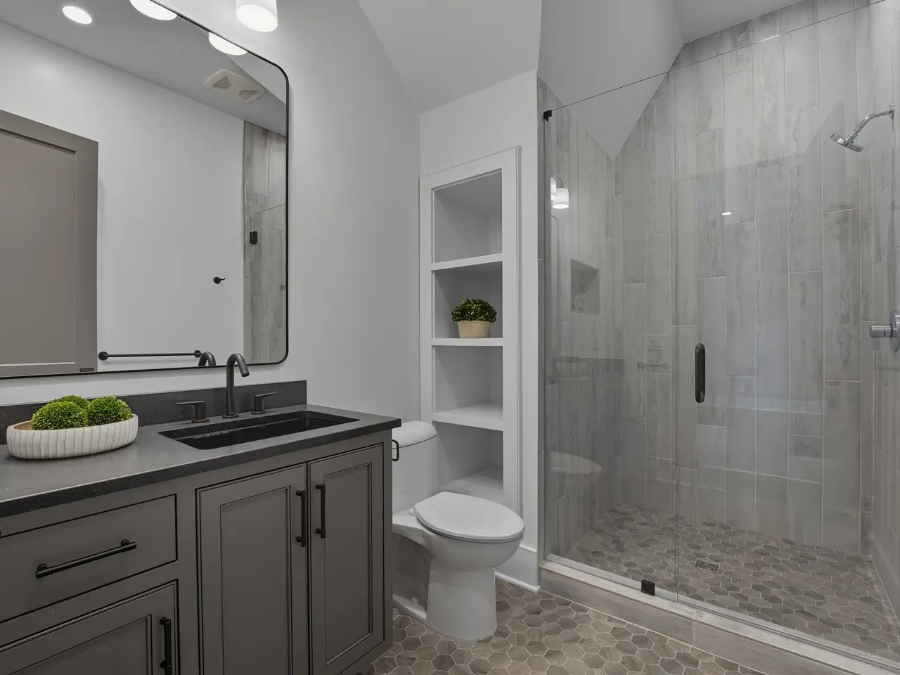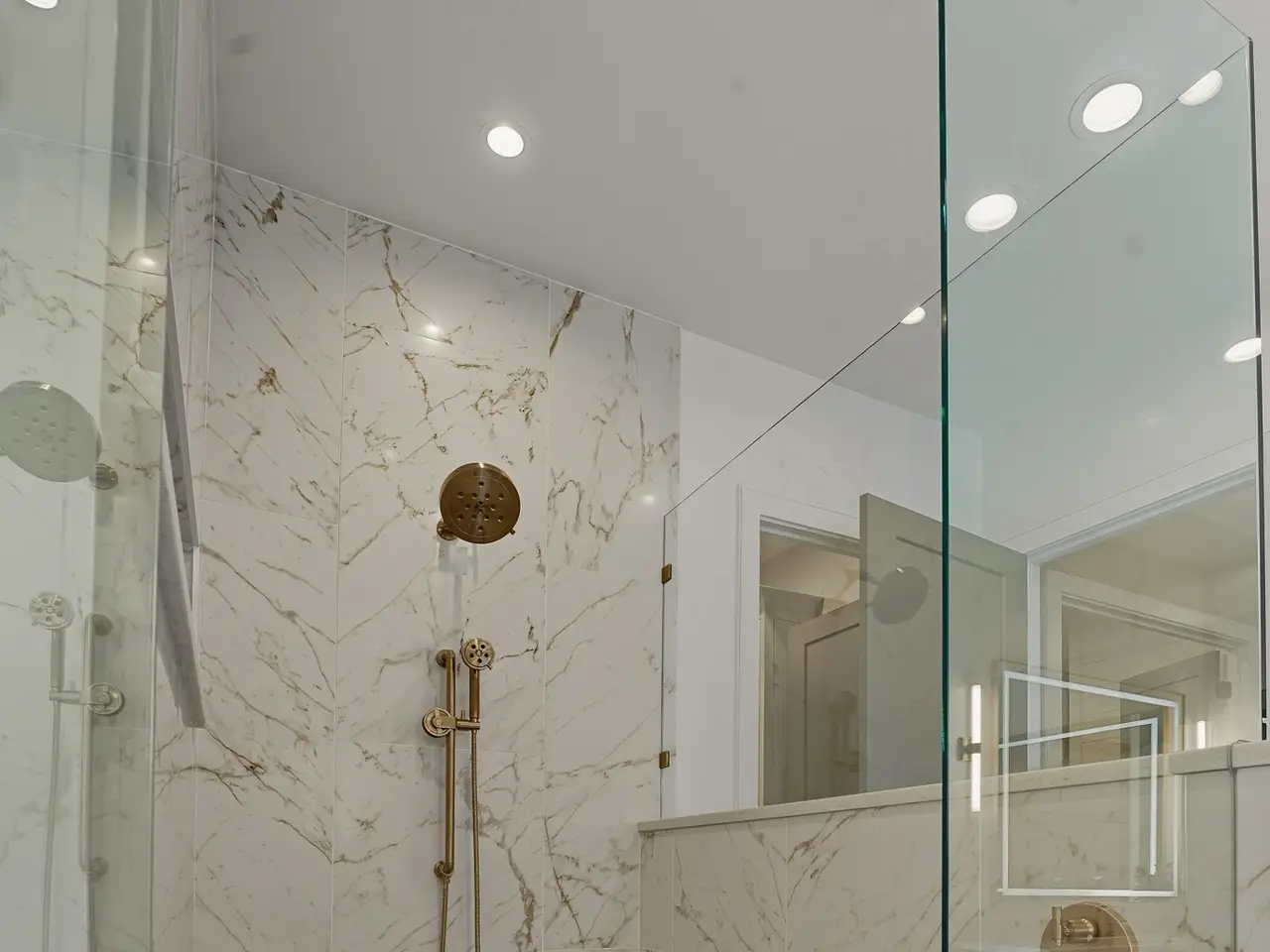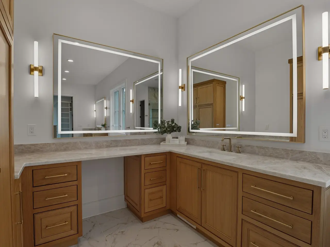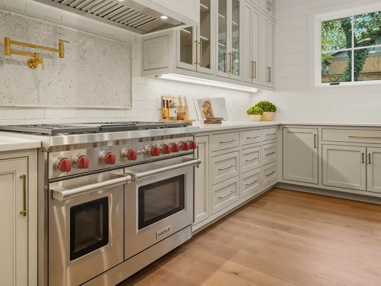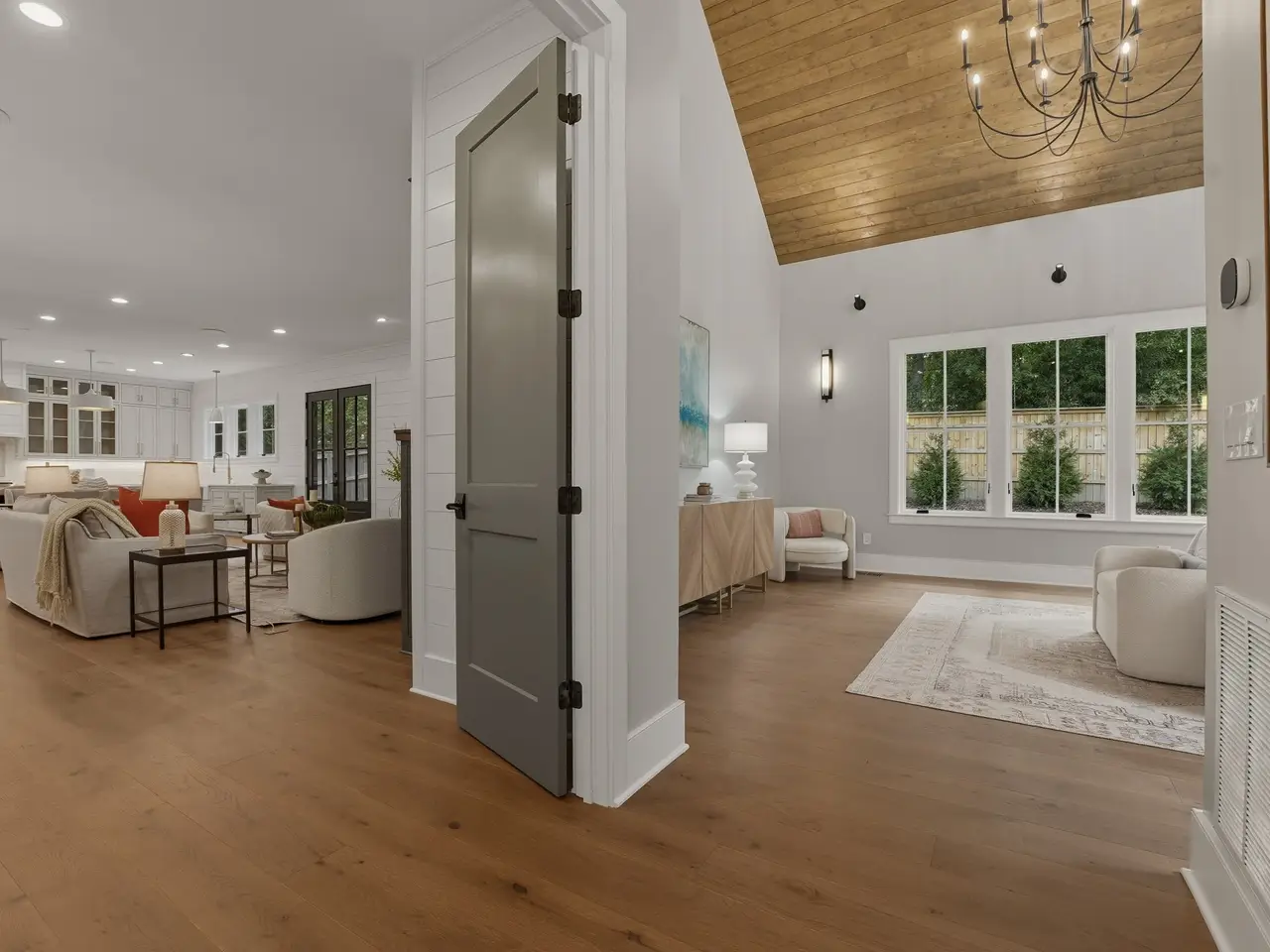 Every inch of this remarkable home reflects a deep commitment to quality, craftsmanship & timeless design. Built on a steel-reinforced poured concrete foundation w/brick construction, this residence combines unwavering strength w/exquisite architectural details. Classic bead board ceilings on front & back porches along w/Coppersmith gas lanterns set the tone for a home that's as beautiful as it is enduring. Upon entering, you are greeted by the soothing sounds of your personal Sonos amp system w/18 ceiling speakers & individual fader controls smartly placed throughout common living areas. Kitchen is a chef's dream w/Calacatta Miraggio Cove Quartz countertops, 48" Wolf gas range w/double ovens, Sub-Zero refrigerator &freezer columns, Bosch Benchmark dishwasher & Scotsman nugget ice machine. A large walk-in pantry w/ prep space completes the culinary experience. Great room centers on a dramatic wood-burning stone fireplace complemented by a custom TV console w/shelving & white oak accents. Separate spacious dining room is complete w/bar area serving as both a visual centerpiece & an entertainer's dream. It features black honed countertops, custom built-ins for glass & bottle storage, wine frig & ice maker & brass rail/glass shelving set against antiqued smoked mirrors. Inviting Primary suite is a retreat to behold w/a vaulted wood plank ceiling, Taj Mahal quartz surfaces, Brizo Litze luxe gold fixtures, double vanities & a graciously-sized soaking tub. Walk-in closet offers an expansive 20-drawer center island & specialty shelving like angled shoe racks. Main-level laundry offers extensive cabinetry w/over 160 cubic feet of storage--ideal for linens, luggage, and seasonal needs. Upper floor boasts a central gathering room from which 4 bedrooms rest, each w/ their own private bathrooms & walk-in closets. Another full laundry room is found here w/front-facing window that allows sunlight to wash across the patterned floor tile.