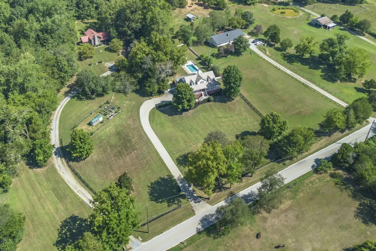 Welcome to 8756 Poplar Creek Road â?? a serene retreat just 25 minutes from downtown Nashville and moments from Harpeth Village. Set behind stone columns and surrounded by nature, this elevated home offers sweeping views of pastures and wooded hillsides from its wrap-around porch. Inside, the foyer opens to a dining room and a soaring double-height living room with custom built-ins and a floor-to-ceiling stone gas fireplace. The kitchen features wood cabinetry, granite countertops, and newer stainless appliances including a gas range, hood vent, refrigerator, dishwasher, and updated lighting. A screened porch off the living room overlooks the fully fenced backyard and 15â?? x 30â?? Gunite saltwater pool, framed by a wood-burning stone fireplaceâ??ideal for both cozy evenings and vibrant summer gatherings. The spacious first-floor primary suite boasts an 11-ft tray ceiling, walk-in closet, two additional closets, and a large bath with jetted tub, shower, and granite double vanity. Step directly from the suite to the pool deck through a private door. Upstairs are two bedrooms with charming viewsâ??one with vaulted ceiling and walk-in closetâ??and a beautifully renovated bath featuring Carrera marble, a custom vanity, and clawfoot tub. A large attic provides bonus storage. The ground floor includes a private-entry recording studio with soundproofed Live Room, Control Room, and Machine Roomâ??all with individual AC units. This level could also serve as a home theater, gym, office, or guest suite, complete with a full bath and storage. Outside, enjoy a fenced raised-bed garden with chicken coop, compost system, trellises, and stone/gravel paths. Adjacent lawn offers room for expansionâ??guest cottage, sunflower field, or more. Recent updates: New HVAC & water heater (2025), whole-house water filtration + RO (2024), and updated lighting throughout.