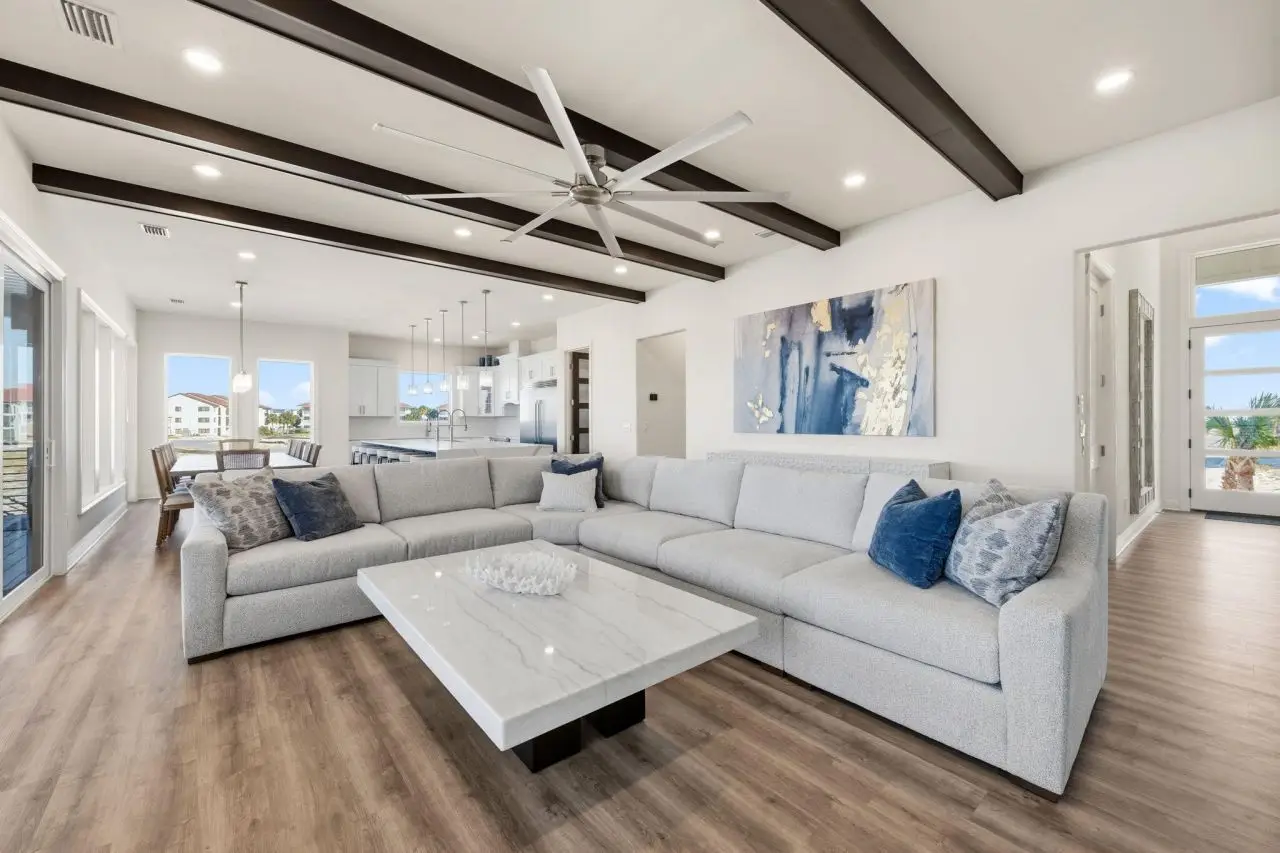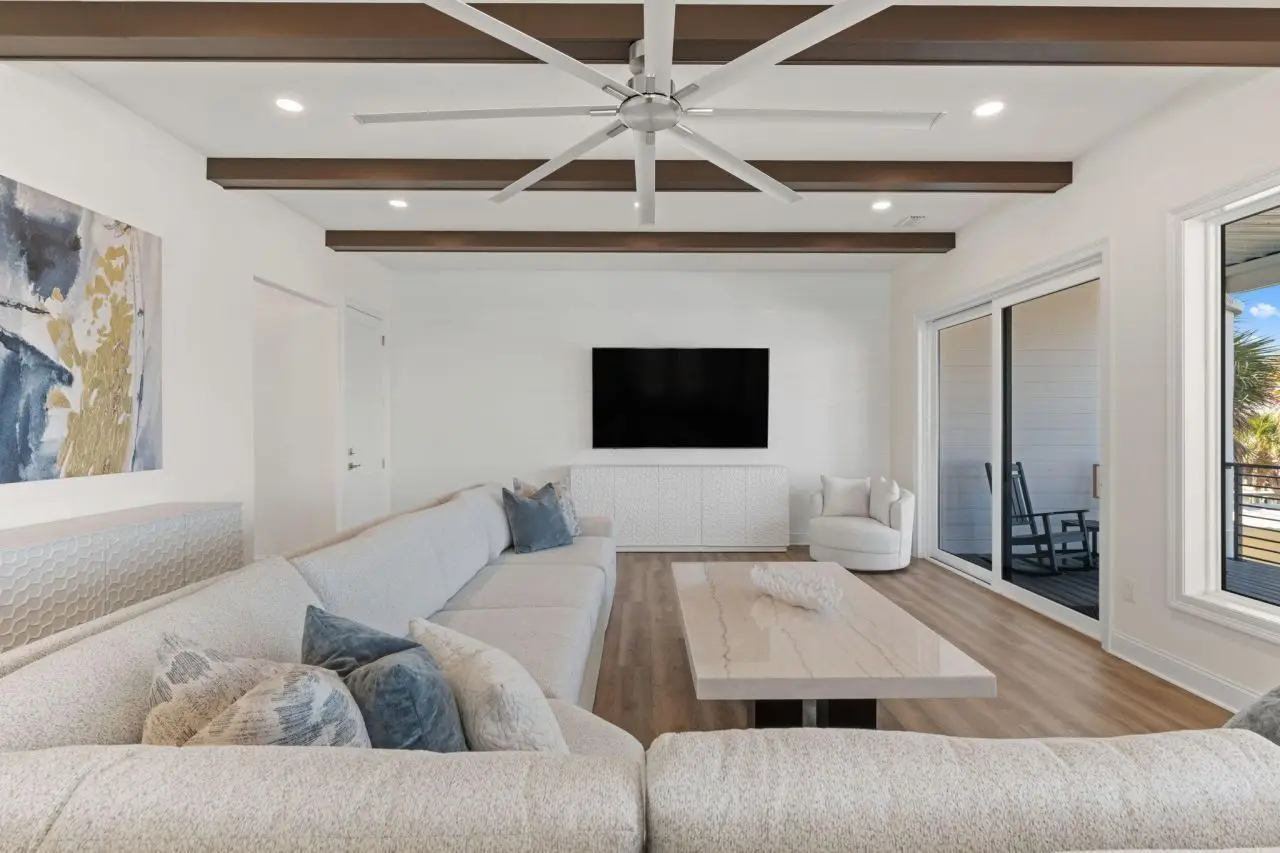 Brand new construction on a deep water lot with a dock on the Sound at beautiful Navarre Beach! This Bock Construction home was just completed and is ready for you. This home is being sold fully furnished and could be an amazing waterfront home with a place to keep your boat in your own backyard or as an amazing turnkey vacation rental. Excellent water depth at the dock. Enjoy multiple 50 feet waterfront decks to watch the birds and the dolphins while being steps away from a relaxing great room with room for everybody. Plenty of storage underneath for all your toys and beach gear along with an elevator so everyone has easy access to this beautiful home. The outside is as beautiful as the gorgeous interior and features the dock, a sodded yard, and a white sandy beach out back!