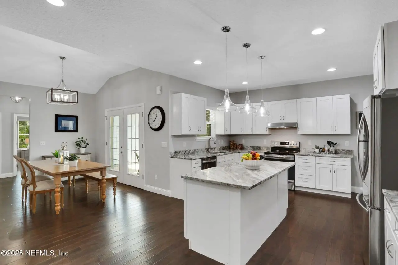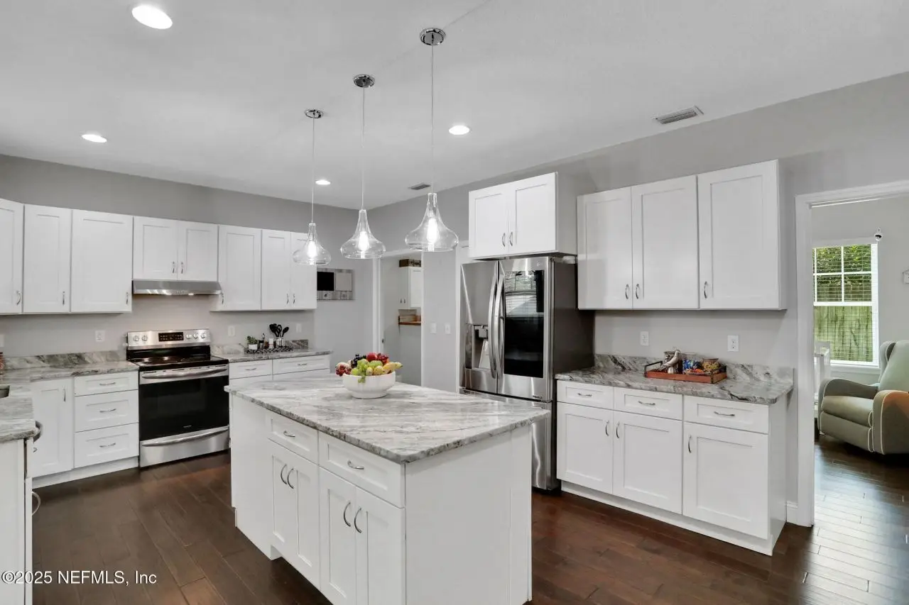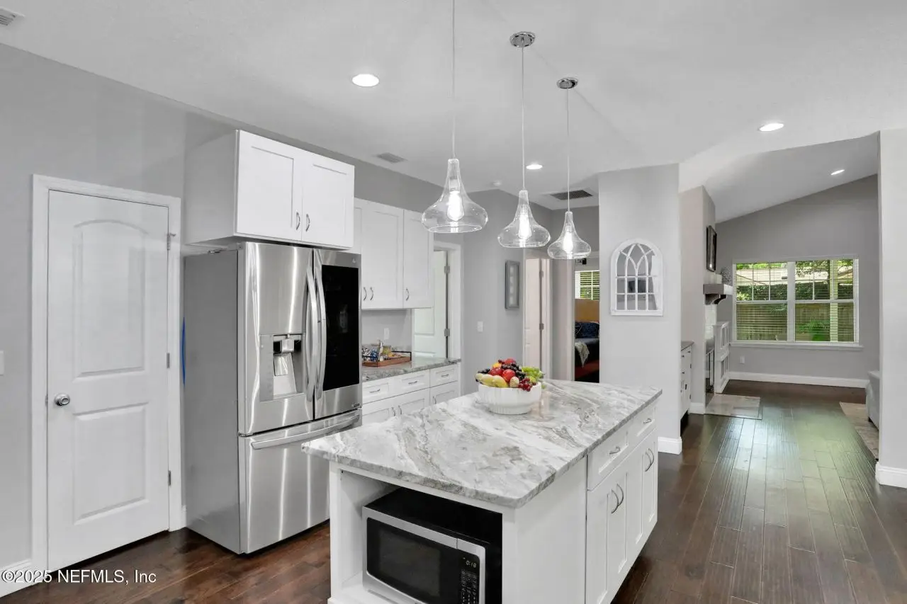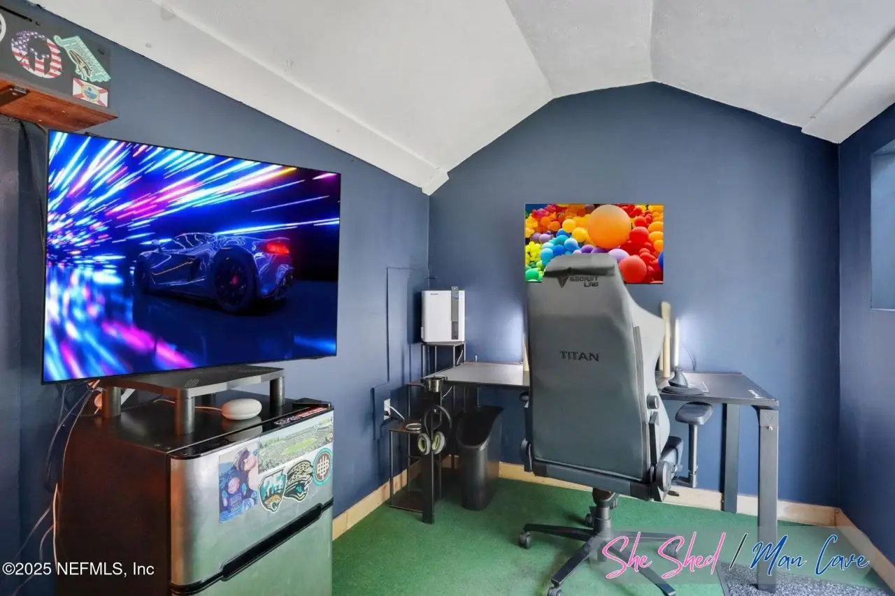 Here is your amazing opportunity to own the newest home on a prime corner lot in desirable Camelia Terrace. Situated along the Hopkins Creek and just one mile to the ocean, this community was established in the 1980's and has just 64 homesites. The neighborhood of oversized homesites is shaded by age-old oaks and has only two access roads creating the perfect balance of privacy and community. Newer than all the others, this home was built in 2018 and has 3 bedrooms and 2 baths. It sits on 1/3 of an acre and spans 2,081 square feet including an 8'x12' backyard studio. There is an abundance of parking with an extended driveway that leads to a courtyard entry, oversized 26' deep garage. This stunning beach cottage showcases quality craftsmanship throughout. The durable Hardie Board siding gives the exterior lasting appeal, while inside you'll find gorgeous 5-inch handscraped wood plank flooring flowing seamlessly through the entire home. Eight-foot tall interior doors and soaring vaulted ceilings create an open, airy atmosphere that feels both grand and comfortable. The heart of this home is the impressive kitchen, featuring a large center island. Soft-close white shaker cabinetry with 42-inch uppers provides ample storage space. All is complemented by the gorgeous marble counters. The stainless appliances include an LG Smart French Door fridge with that handy InstaView Door-in-Door feature. A well-shelved pantry closet keeps everything tidy and within reach. Adjacent to the kitchen is the dining room that opens through French Doors for dining alfresco on the lovely courtyard. The perfect transition from garage to kitchen is the thoughtfully designed laundry center. This generous space features built-in cabinetry, butcher block folding counters and a handy utility closet. The room is so spacious it could easily double as an office or craft room. The oversized family room serves as the home's cozy gathering spot, complete with a wood-burning fireplace with beautiful marble surround and hearth. Cathedral ceilings soar overhead, while French doors lead to the spectacular 26' x 16' covered lanai. This outdoor space overlooks the tropically landscaped, fenced backyard where pavers create a charming path to the firepit area. Speaking of outdoor spaces, continue down the path to a real conversation starter. From the outside, it looks like an adorable and charming she-shed, but step inside to discover a fully conditioned man-cave. It's the perfect retreat for hobbies, relaxation, or those moments when you just need some time alone. The thoughtful split-bedroom floor plan places the sunlit spacious primary bedroom on one side of the home. The ensuite bath feels like a personal spa with its 24-inch marble tile flooring, dual sinks, and an oversized vanity topped with marble counters. The huge shower features a seamless glass surround, pebble flooring, and classic subway tile walls. A private water closet adds convenience, while the uniquely designed walk-in closet offers a central dressing area leading to two separate closets for each partner...or shoes. On the other side of the home are the two guest bedrooms and both are equally well-appointed. One connects to a nicely sized guest bathroom and includes two side-by-side closets. The third bedroom features a generously sized walk-in closet. The 22' x 100' side yard with street access offers incredible versatility. Park your boat, set up a workshop or start planning that pool you've always wanted. The spa