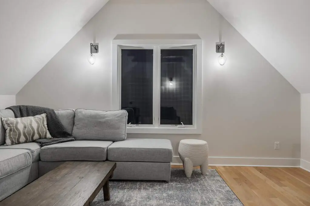 Striking stone fireplace