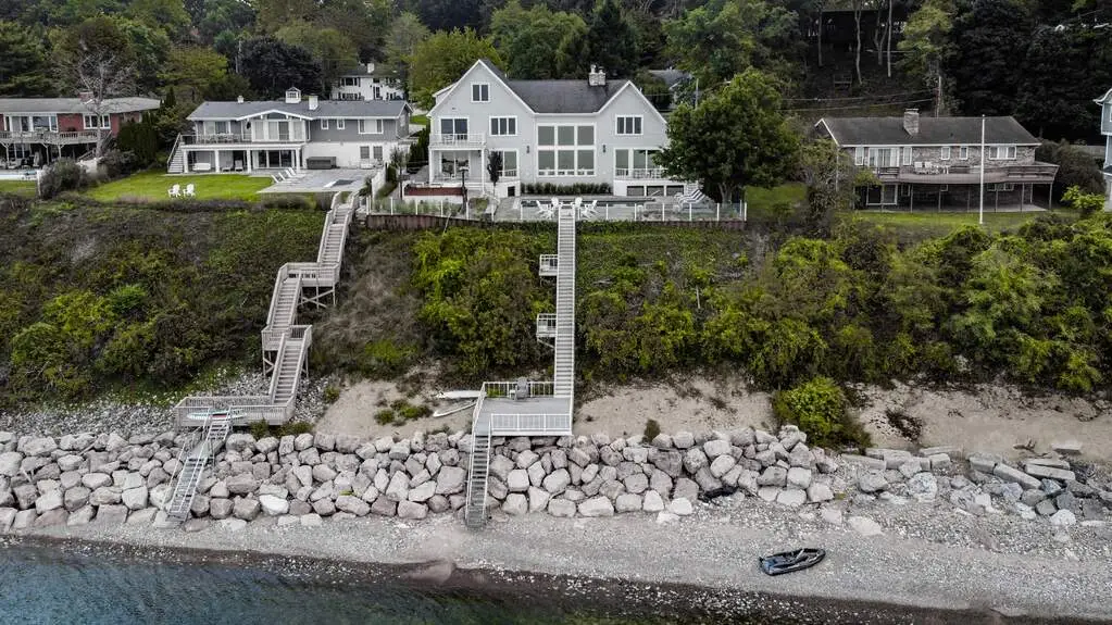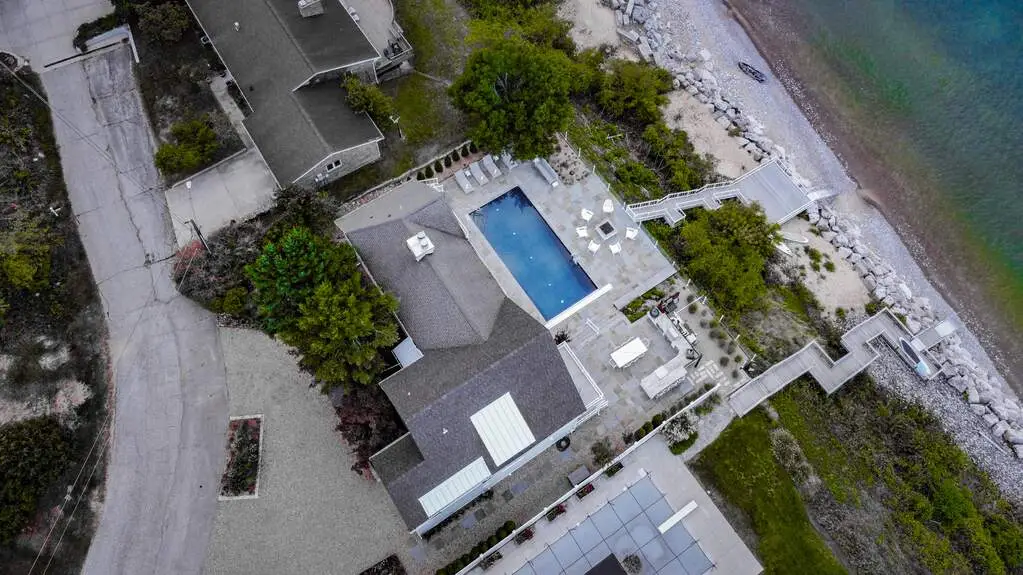 Beautiful 4BR/3.5BA lakefront home in Grand Beach with waterfront pool and new double seawall! This one-owner property has been meticulously maintained and is move-in ready. The open main level features a 2-story great room with floor-to-ceiling windows and a striking stone fireplace. Enjoy incredible lake views from the spacious kitchen with granite counters, stainless appliances, and large island. Step out to the expansive lakefront deck and pool area, ideal for relaxing or entertaining. The large primary suite includes a private balcony overlooking the pool and lake. Located in a golf cart-friendly community with a 9-hole golf course, tennis courts, and playground. Just minutes to downtown New Buffalo and about an hour from Chicago, this is your ideal lakefront escape-perfect as a full-time home or weekend getaway.