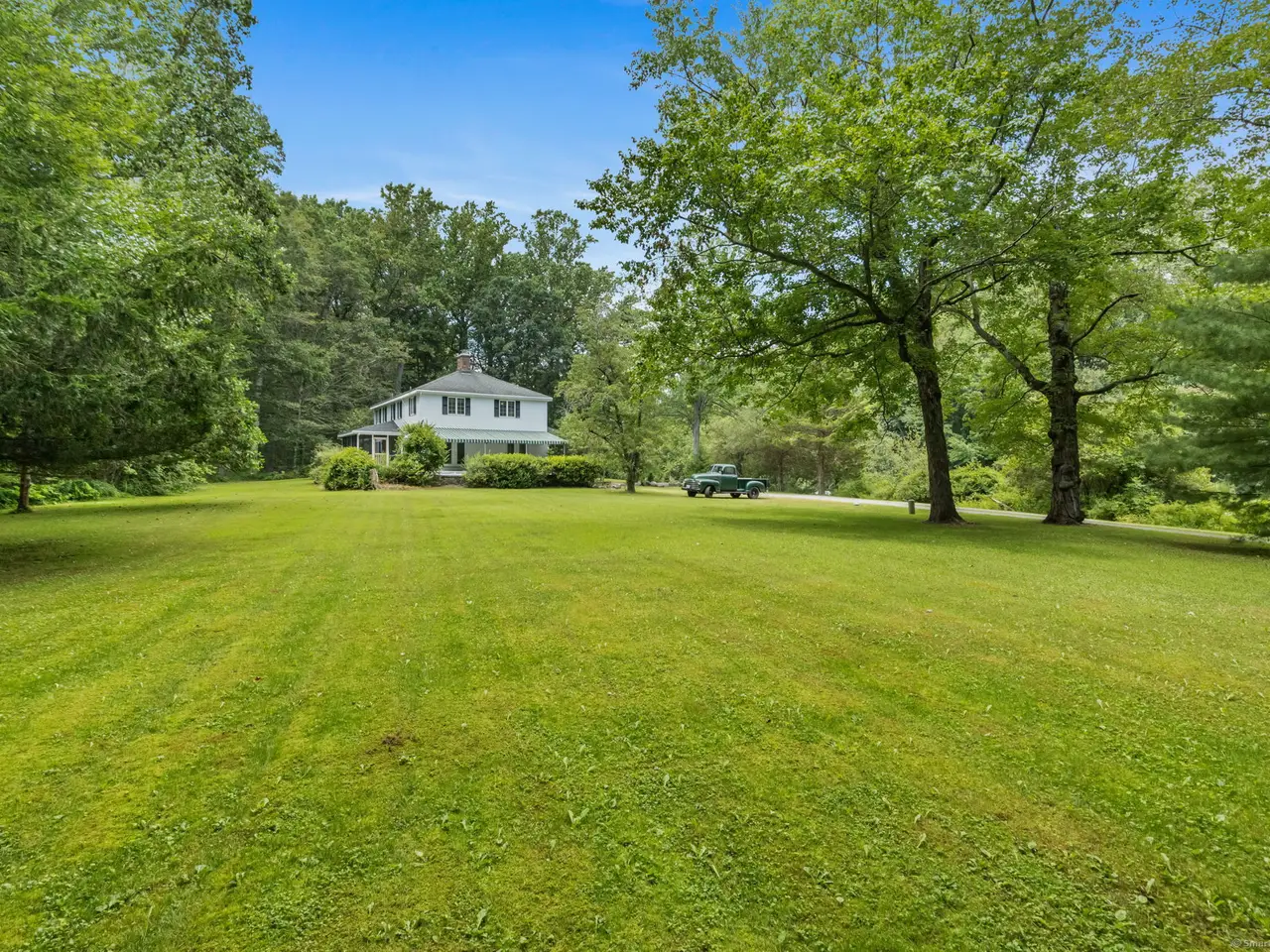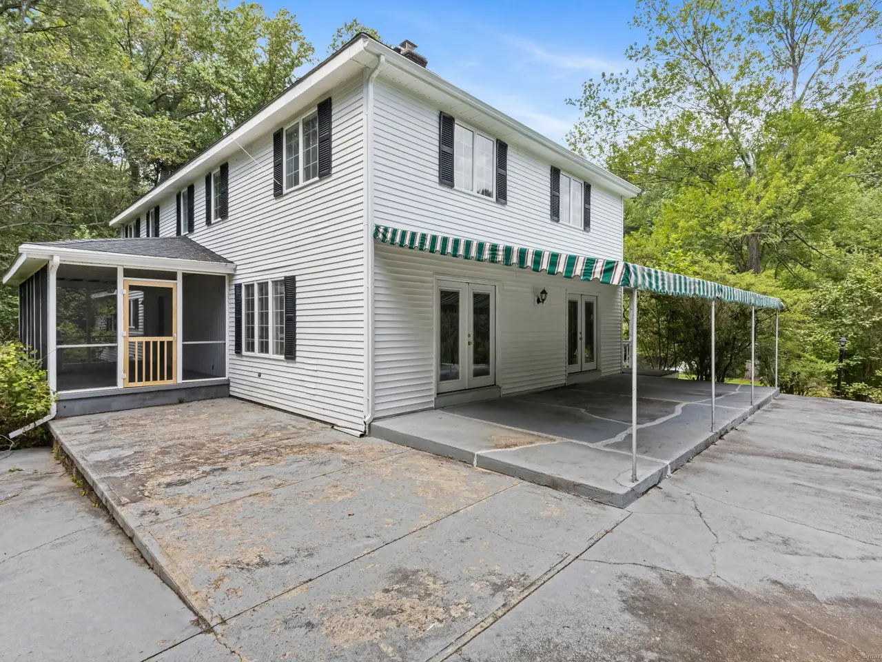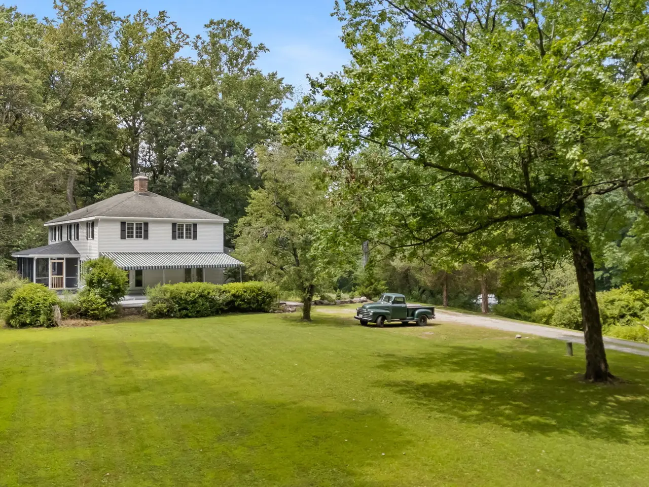 Opportunity Awaits! Bring your vision to this COLONIAL in desirable New Canaan. Potential for customization is limitless. Gorgeous 2 park-like acres with pond access and aerator welcomes you. Property features a peaceful yard, mature shade trees that line the driveway and lend privacy. Picturesque walking/biking community where neighbors gather. Wrap around porch invites you to sit, read, chat leisurely. Large foyer leads you to ample living spaces including; kitchen with island, dining room, living room and family room w/ wood burning brick fireplace. Three season porch. French doors to stone patio for dining al fresco. First floor guestroom w/ en-suite. Upstairs; 4 additional bedrooms, balcony, 2 hall baths and a Primary en-suite. Baths are finished with neutral colored tiles. Four garage bays total; 2 car attached garage and additional detached 2 car garage with bonus finished space above- perfect for home office, studio, gym, multi-generational living. Storage space abounds. Central Air to keep you cool. With its adaptable layout and prime location, this home presents a rare opportunity of convenience and possibility. Close to award winning New Canaan Schools, main commuting roads, Metro-North train, the Silvermine Art Guild and only a few minutes to shopping too! This home has a great floor plan to enjoy entertaining and everyday living. Portable generator to keep you running if ever needed. Untapped potential. Perfect to renovate into your dream home. Floor Plans are approximate.