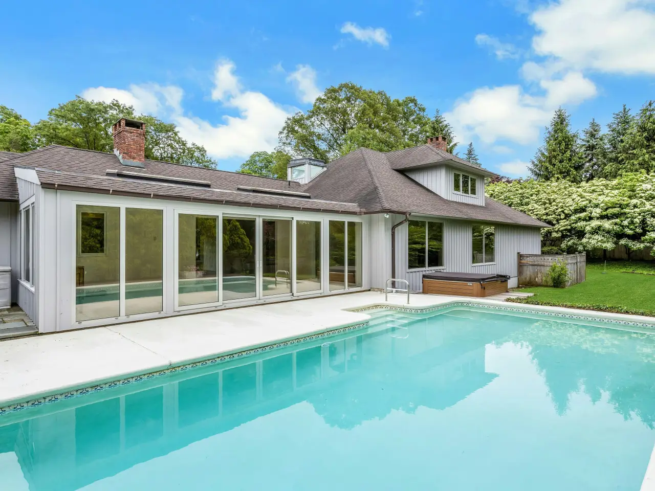 Welcome to this charming house. 680 Weed Street is a hidden gem in one of New Canaan's most desirable neighborhoods! This beautifully maintained home offers the perfect blend of classic New England charm and modern comfort, surrounded by lush greenery, a perfectly sited pool, and hot tub. All this located just steps from downtown New Canaan, parks and the train station A sun-filled living spaces, beautiful hardwood floors with an inviting layout are ideal for everyday living and entertaining! Features include an expansive first floor primary suite with his and her bathrooms and large walk-in closets! Also included are: three additional bedrooms, two with en-suite bathrooms. The family room and dining room adjoin the kitchen making it ideal for family living and entertaining. The sunroom with wet bar, overlooks the heated gunite pool, hot tub and private back yard. The serenity of the beautifully landscaped grounds provides a complete sense of privacy within walking distance to town. Central air, a large basement/flex space, attached two car garage and ample storage throughout are included. Additional opportunity! On property is a restored carriage house which could be a home office, or for gatherings or additional storage space. ($2,000 additional per month.)
