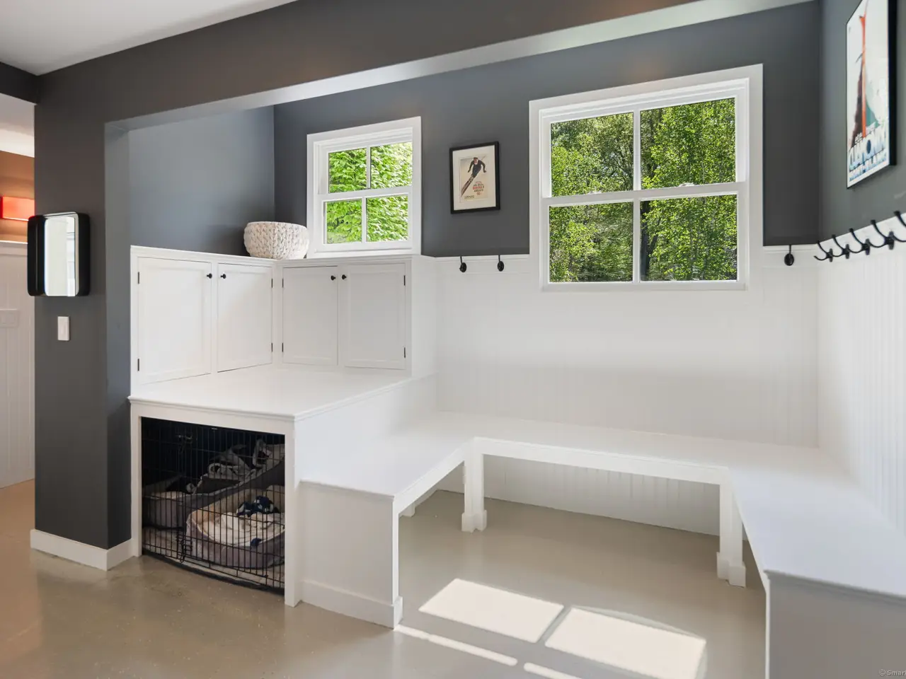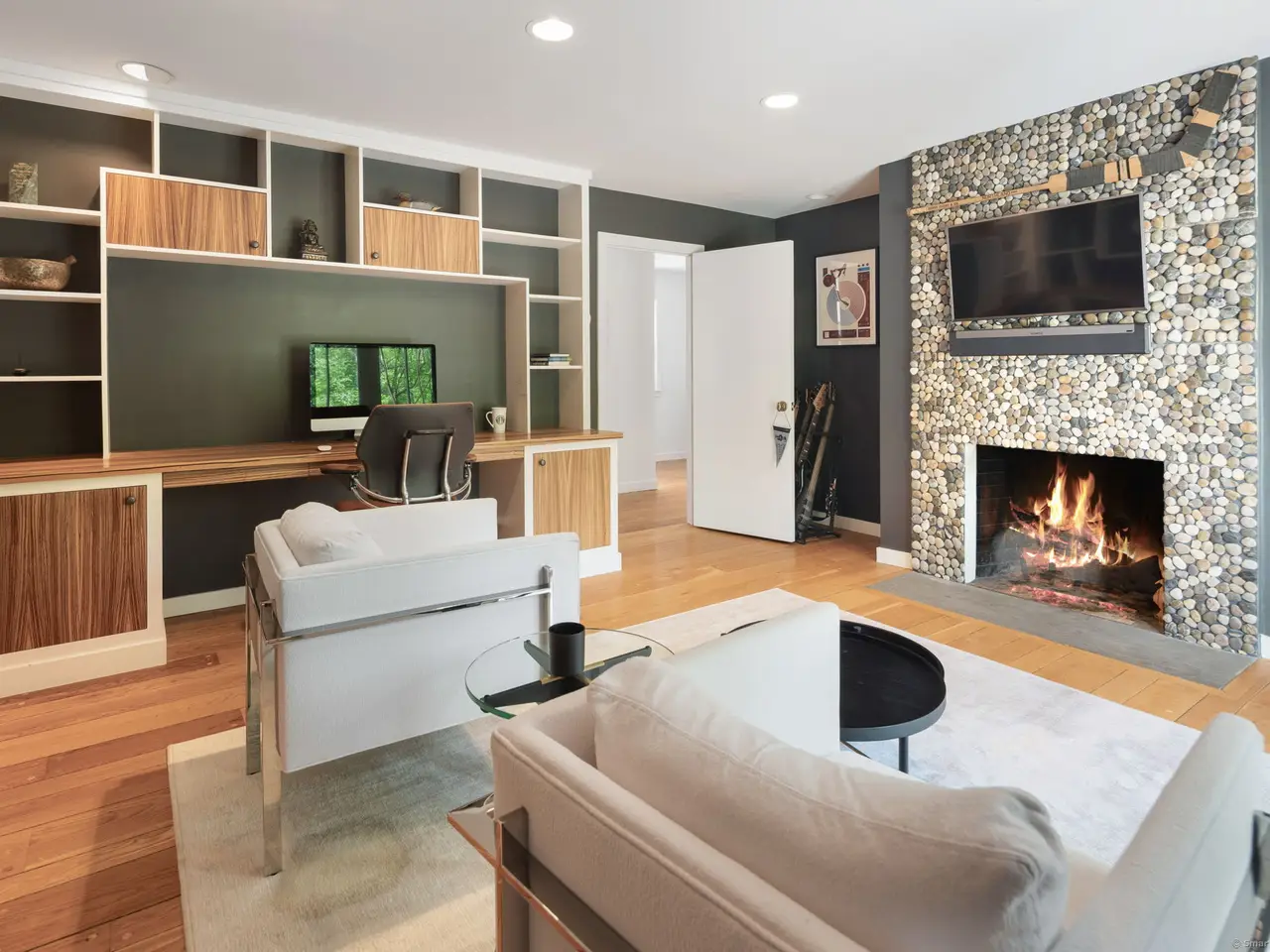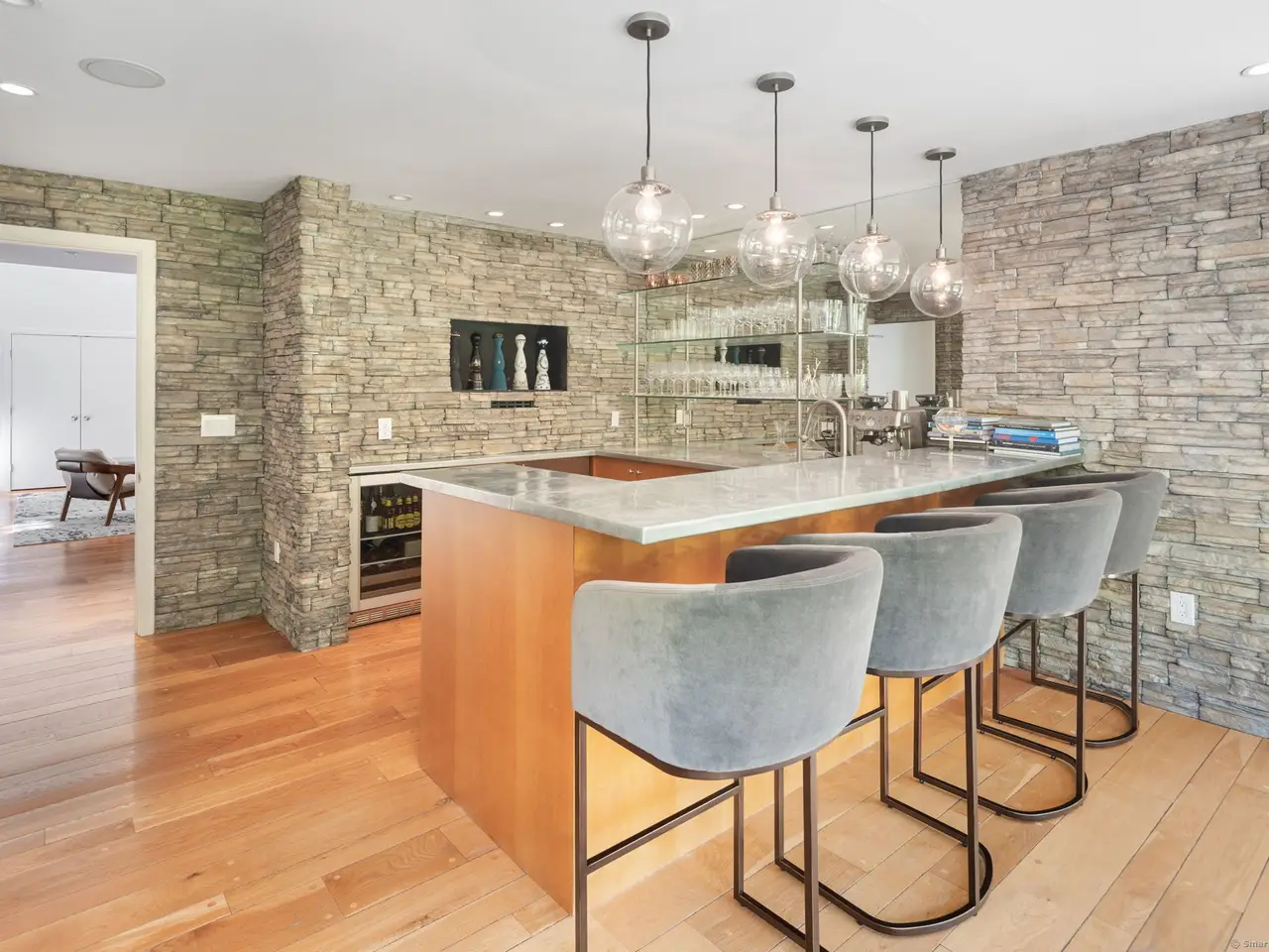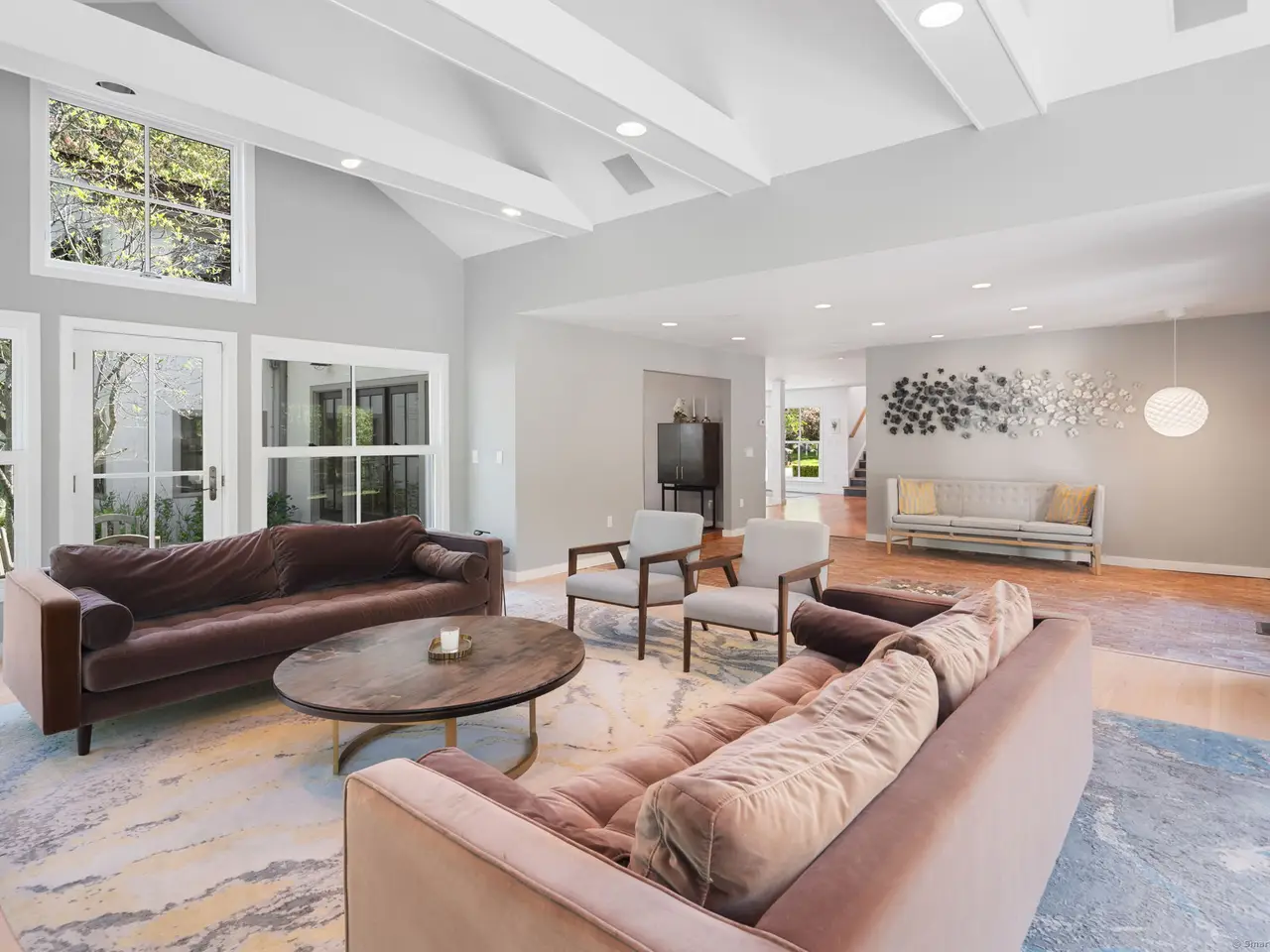 California meets New Canaan in this William Wurster inspired transitional-style masterpiece set on 2.54 private acres on New Canaan's desirable west side that's so convenient to town. This extensively renovated home has over 100 custom windows and 16 doors bringing the outside in from every room. Amazing sun-drenched living space with wonderful views from EVERYWHERE. French doors lead to expansive bluestone terraces, a beautiful gas fire pit for entertaining, meticulously manicured flower gardens, pool, spa and river. Five bedrooms, four-car garages, au pair suite and an exceptionally designed layout make this home a sensational haven with the warmth of a colonial but so fresh!