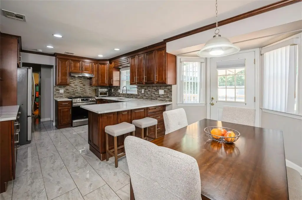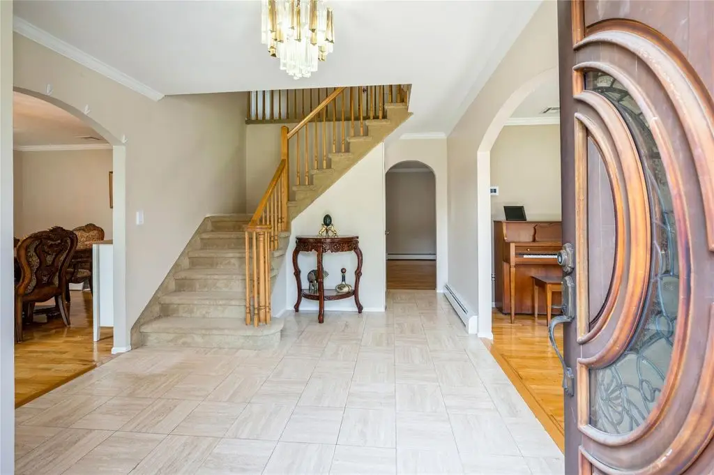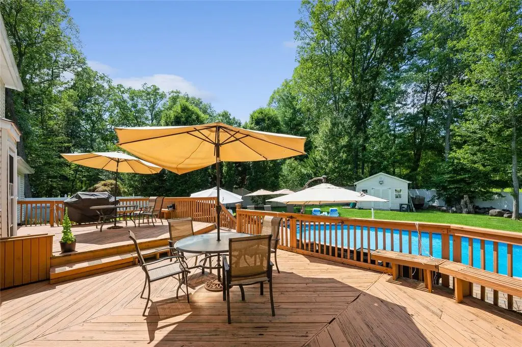 New City, NY - Experience luxury living in this stunning stately, elegant 5 bedroom, 3 bathroom recently renovated center hall colonial, nestled on a half acre fully fenced backyard oasis complete with a heated in-ground salt-water pool, a cul-de-sac location, and backing up to Kennedy Dells Park. This beautiful home in the highly-rated Clarkstown school district has everything you desire. The first level features gleaming hardwood floors and an abundance of natural light. It includes a formal living room with bay window, a banquet-sized formal dining room with a second bay window, and an updated eat-in kitchen with stainless steel appliances, quartz countertops and access to your spacious deck and your private backyard oasis, perfect for entertaining or relaxing. This level also includes a bedroom, a full bath, and convenient laundry. The second level offers a primary bedroom with an en-suite bath, three additional sizable bedrooms, and a full main bath. The lower level provides an additional 950 square feet, offering endless possibilities for customization to suit your needs. So come enjoy all that the pedestrian-friendly town of New City has to offer, with superb restaurants and great shops. Take advantage of the easy commute to NYC, Westchester, and New Jersey, and the outstanding parks, pools, hiking trails, lakes, pickleball courts, and other recreational activities in beautiful Rockland County, where one-third of the land is parkland. Additional Information: Amenities:Storage,ParkingFeatures:2 Car Attached,