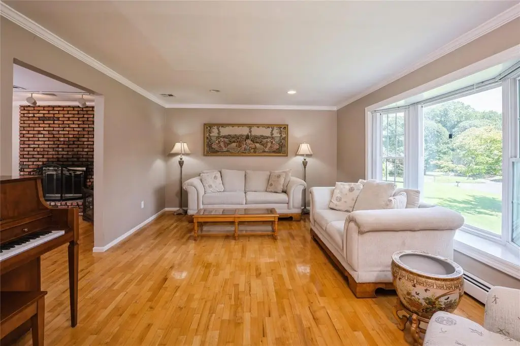 Formal living room with bay window