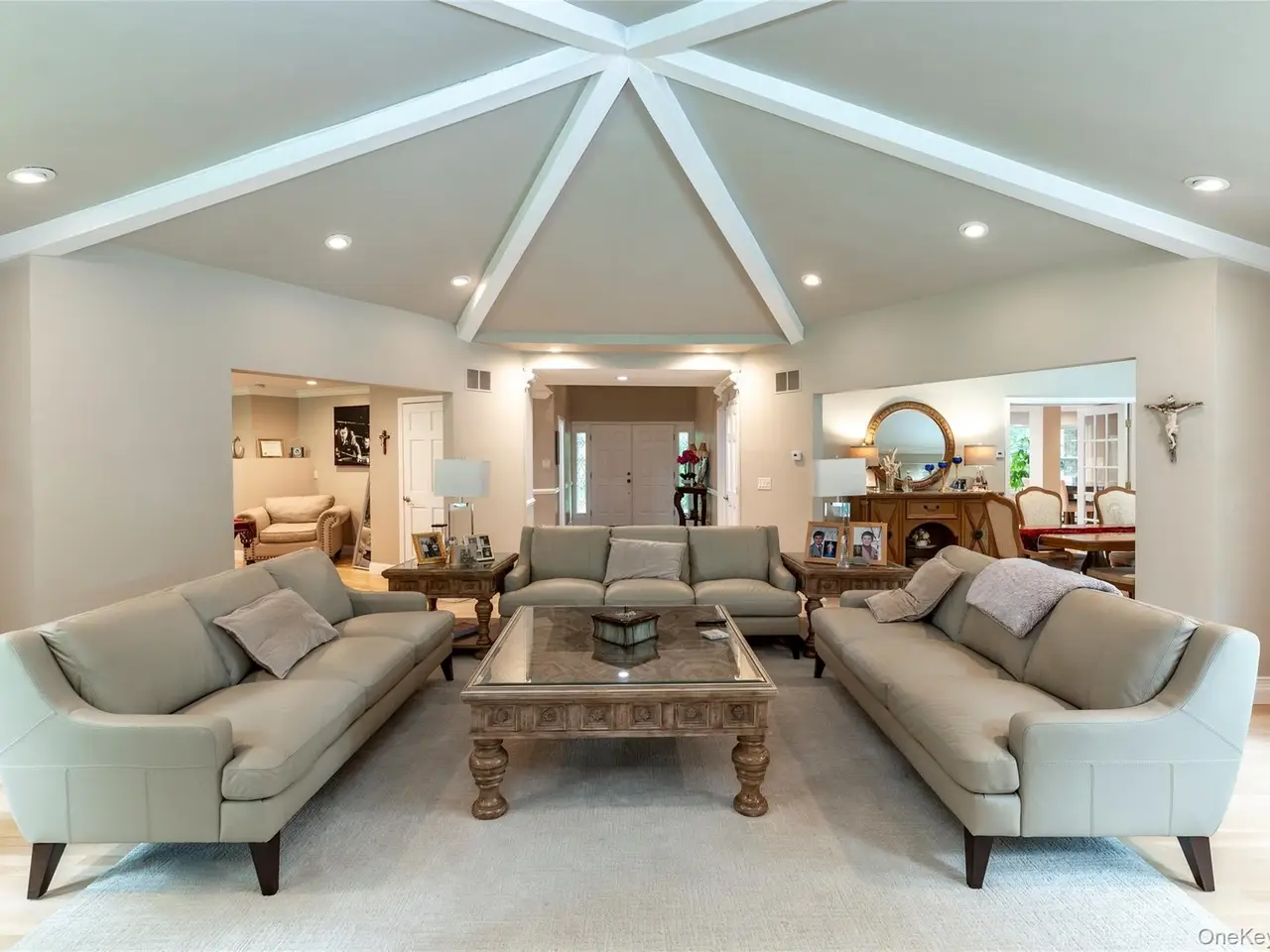 The owner is offering private financing to qualified purchasers with good credit and a normal down payment and may also consider a lease-purchase arrangement—an uncommon opportunity for buyers who might not fit conventional lending programs. Set on a gently winding country road in the heart of New City, this stately all-brick and stucco residence offers over 4,300 square feet of versatile living space on a beautifully landscaped acre. A legal two-family home, it’s ideal for multi-generational living, extended guests, or flexible use. Inside, the dramatic living room with cathedral ceilings anchors an open-concept layout filled with light and volume. The thoughtfully designed kitchen provides abundant cabinetry and workspace, while the second-floor living area functions perfectly as private guest quarters or an independent suite. Solid construction and classic design details ensure timeless appeal. Additional highlights include a full unfinished basement with expansion potential, an oversized two-car garage plus driveway parking for 10+, and a private, tree-lined yard with in-ground pool—perfect for summer relaxation and entertaining. Conveniently located just minutes from Exit 11 of the Palisades Parkway and close to the shops, dining, and parks of revitalized New City, this property is also served by the Clarkstown North School District. A compelling combination of size, substance, location, and rare financing flexibility for well-qualified buyers makes this a truly standout opportunity in Rockland County.