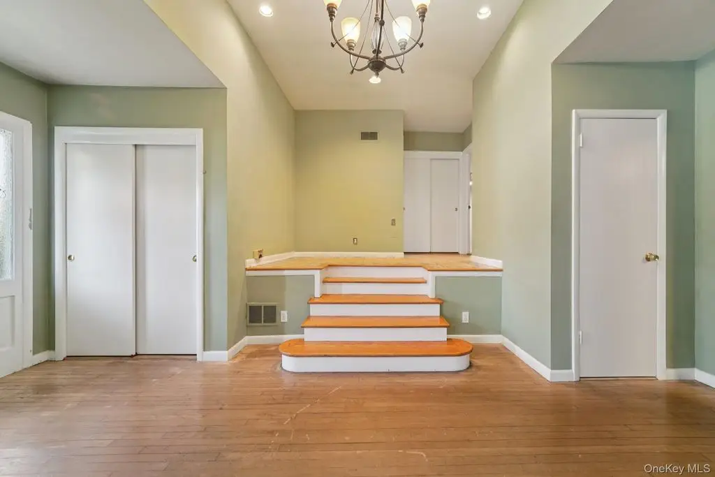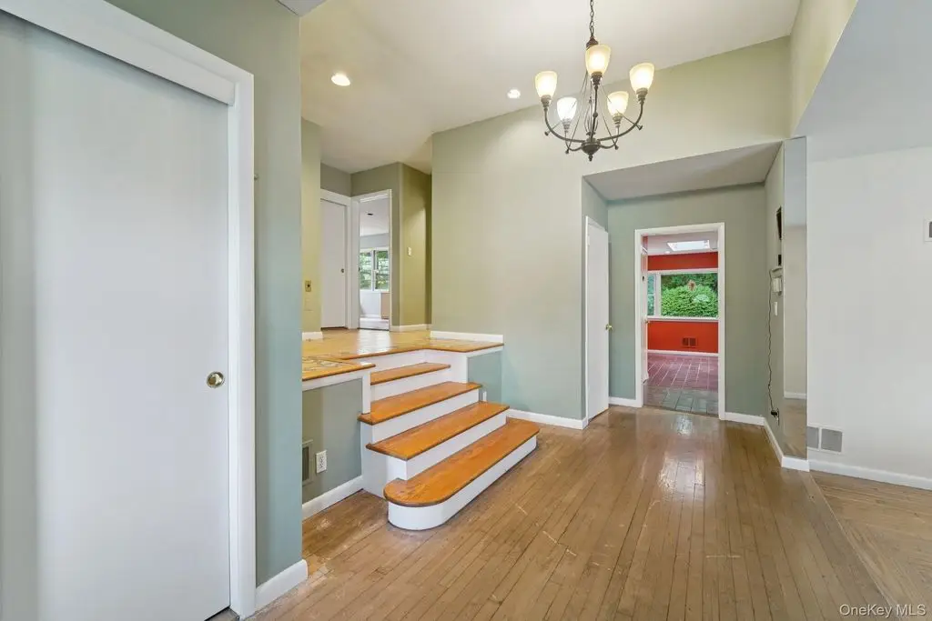 Welcome home to this sprawling five-level, three-bedroom ensuite split-level residence, ideally situated in a quiet enclave off Quaker Ridge Road in New Rochelle. This property offers an abundance of space and significant potential for customization, making it perfect for a discerning buyer seeking room to grow. The spacious entry foyer introduces the main level, which features a large, sunken living room anchored by a wood-burning fireplace. This flows seamlessly into the dining room, which connects to an expansive three-season room with skylights. The sunroom wraps around to the eat-in kitchen (also featuring a skylight), presenting an exceptional opportunity to integrate this substantial space into an open-concept living area. For guest convenience, a half bath is located on this level. This home utilizes an extra-wide staircase leading to the upper levels. The first landing provides access to two generously sized ensuite bedrooms. A short flight of steps then ascends to the top level, which is dedicated entirely to the primary suite, complete with a private primary bathroom and a large walk-in closet. Hardwood floors are present throughout the visible areas. The Lower Level contains utilities, storage, and the two-car garage. The garage was previously utilized as a medical office and will be professionally converted back to its original configuration by the seller prior to closing. The Sub Basement currently offers ample storage space and alcoves and encompasses 915 square feet that is not included in the main square footage. This home boasts a private, lush backyard that offers tranquility and outdoor enjoyment. The home is conveniently located with easy access to schools, shops, and transportation.