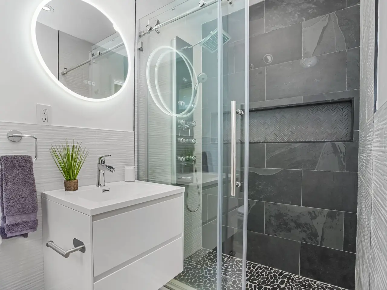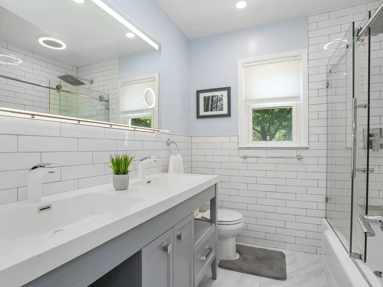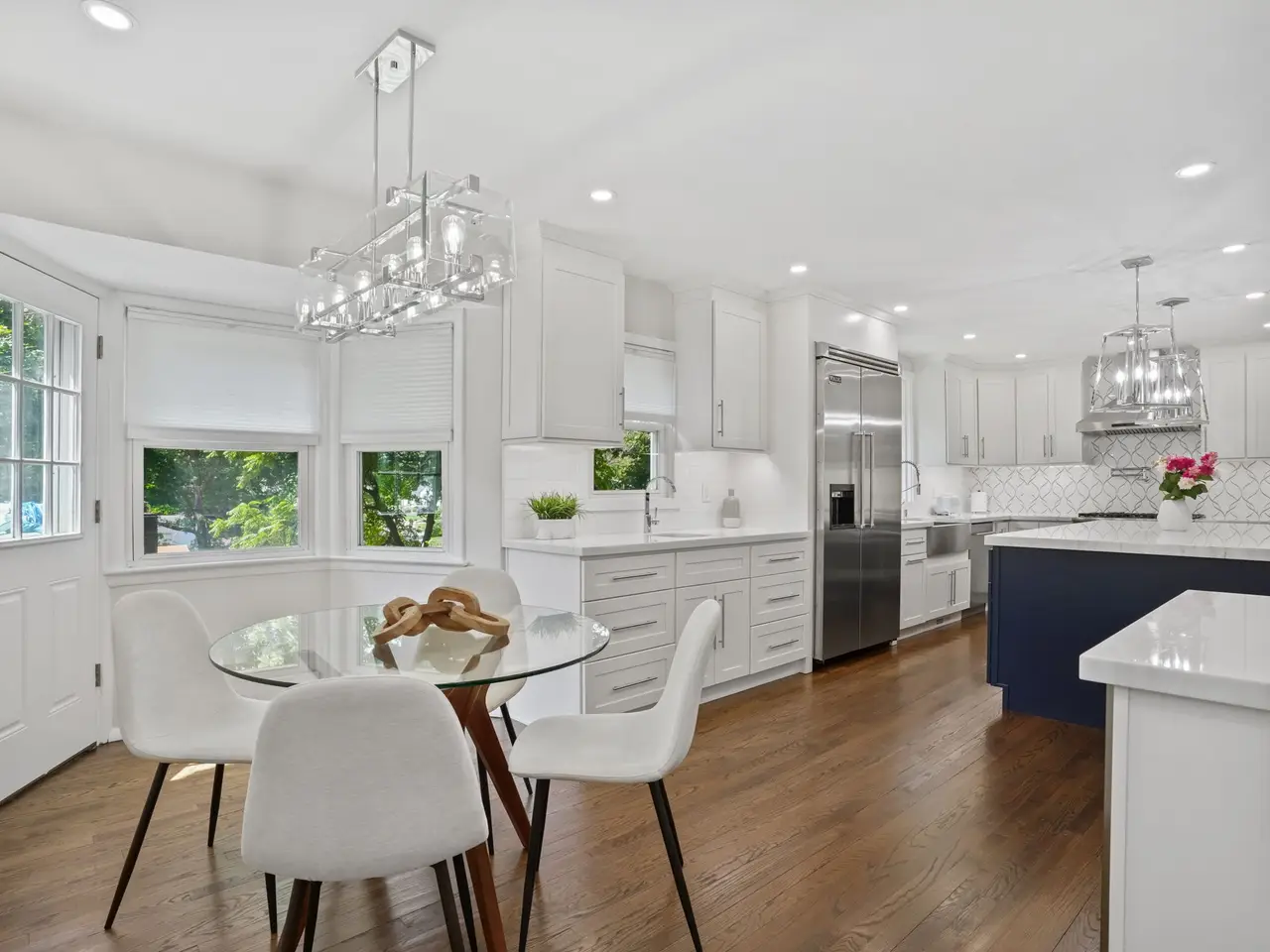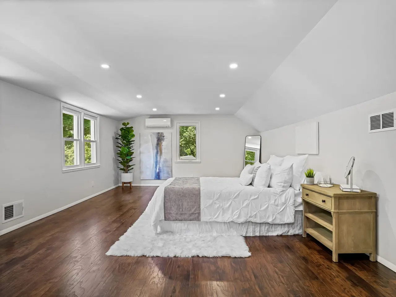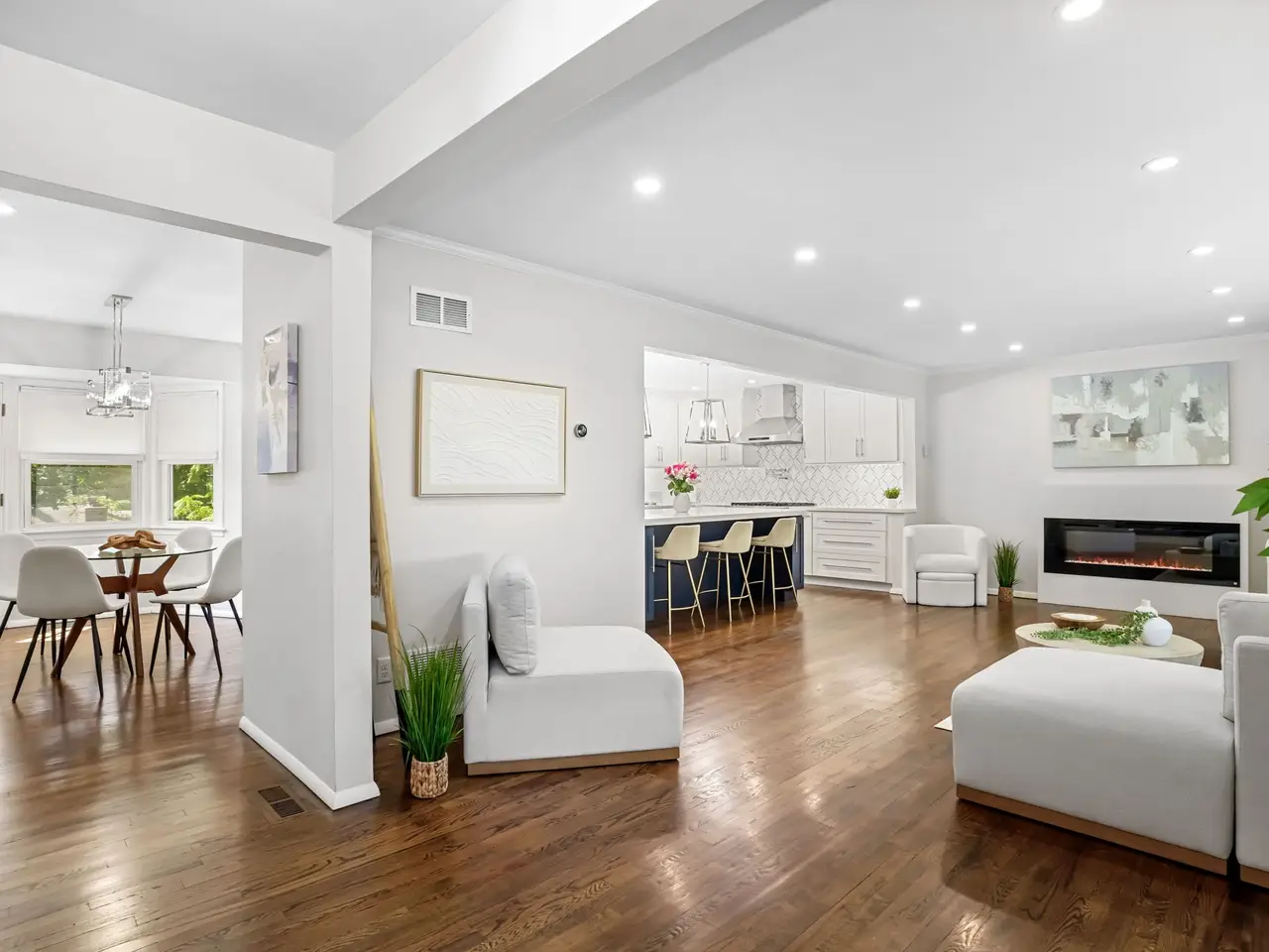 Pretty in Pinebrook Estates! Luxuriously updated throughout--this multilevel beauty will not disappoint! Pass through the decorative stone entranceway and charming Wendover blue front door, and you'll be captivated by the open layout and thoughtful details that make this home truly special. The beautiful hardwood floors are illuminated with natural sunlight pouring in from every window. Bright white shaker cabinets, dolomite marble and ceramic designer backsplashes and 2 Pentelikon white marble counters adorn the elegant chef's kitchen. All stainless steel, professional-grade Viking, Wolf and Sub-Zero/Asko appliances including an Avallon dual-zone wine cooler, two sinks and an open dining area are sure to satisfy. A grand, 8-foot blue accent island with seating completes the experience and perfectly transitions the space into the living room where you will enjoy relaxing by the 60 custom-built electric fireplace and large bay windows. Only a few steps away is a modern full bathroom complete with a 60 double vanity, enormous LED mirror and shower/tub with glass enclosure. Three, sun-filled bedrooms share the second level of the home. The primary bedroom features a spa shower system, basalt stone tilework w/niche, a sleek sliding glass shower door and floating vanity with LED mirror. Ascend up a few more steps to the third level where you will find a spacious bedroom with two walk-in closets and adjacent 362 sq ft partially finished attic--perfect for storage or future expansion. The lower level of the home serves as a flexible space that works great for use as a family room, workout space or office as there is a bathroom conveniently attached. Walk a few more steps down to the clean and sizable basement where you will find laundry and an abundance of storage space (an additional 726 sq ft--not counted in the overall square footage). New central air-conditioning condenser and mini-split system. Fully fenced backyard with a generous patio seating area for peaceful outdoor enjoyment. Professionally designed landscaping and lighting throughout the property. Two car driveway with attached garage. Located just minutes from many restaurants and shops, golf courses, trails, houses of worship and schools. Short 30-minute commute to NYC and close to all major highways.